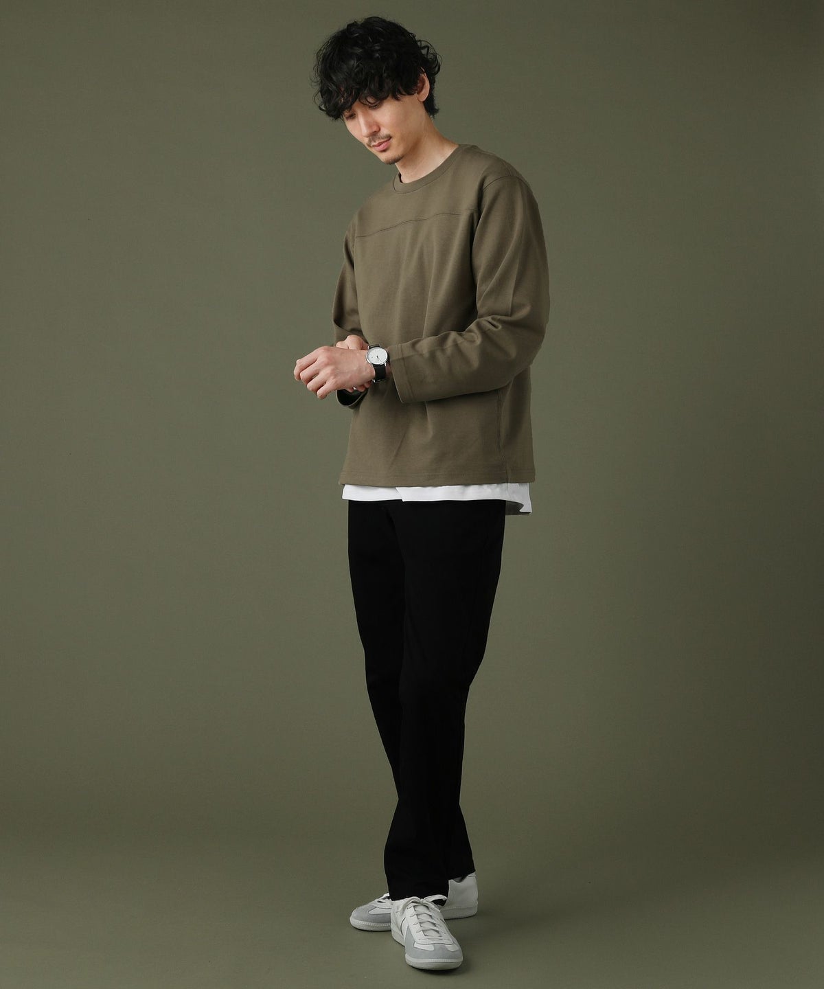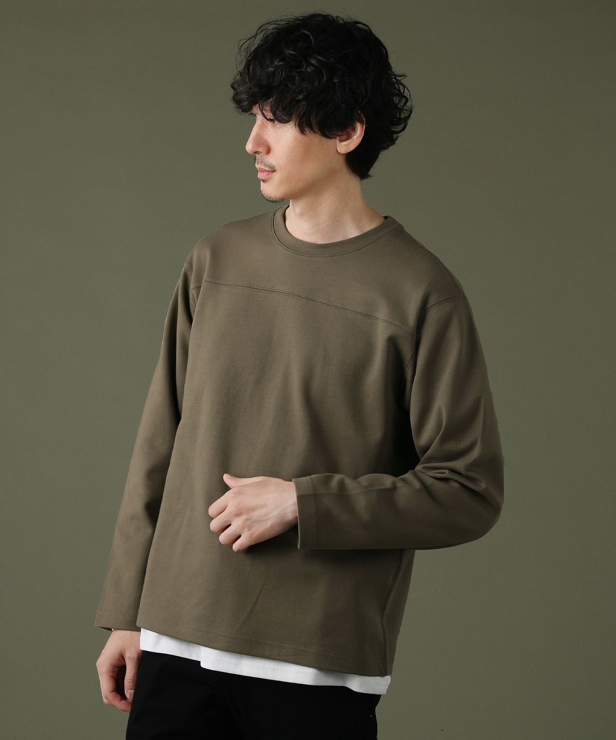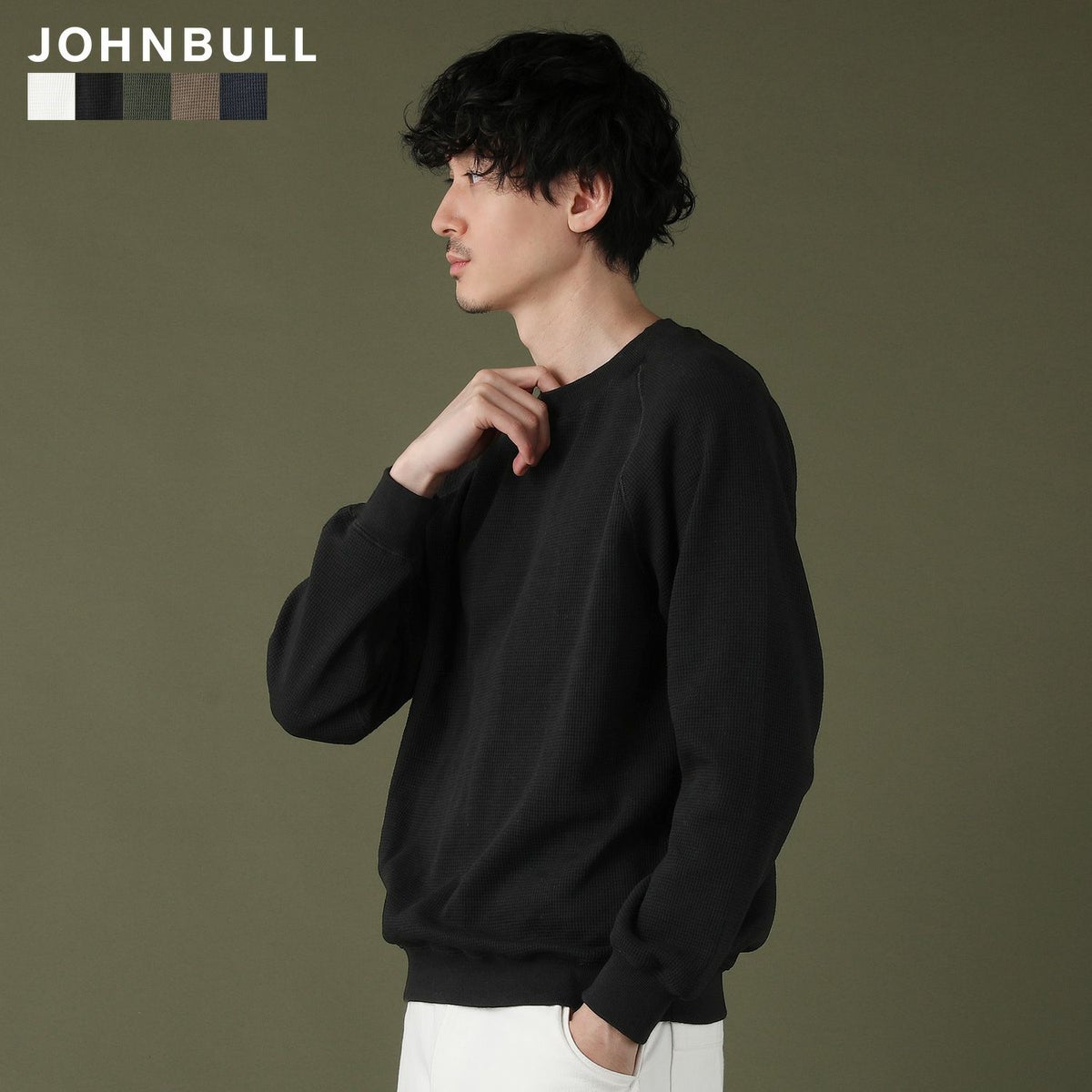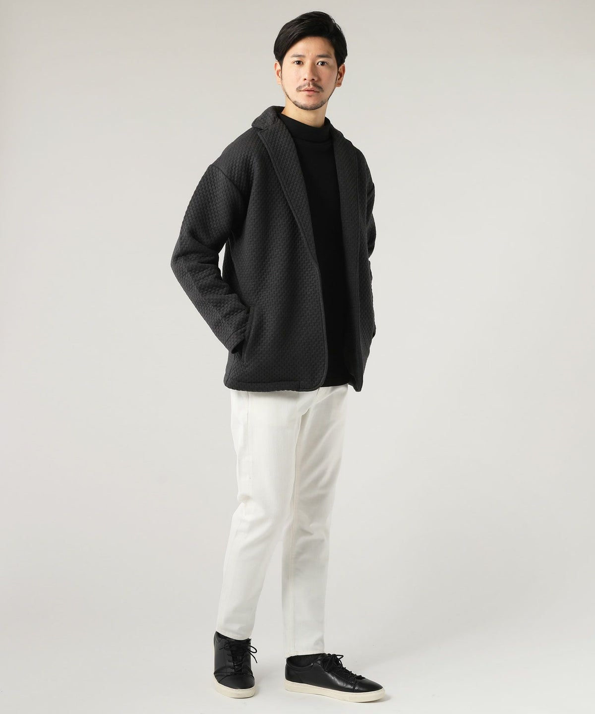 日本製「尾州」コットンキルトクルーネック プルオーバー