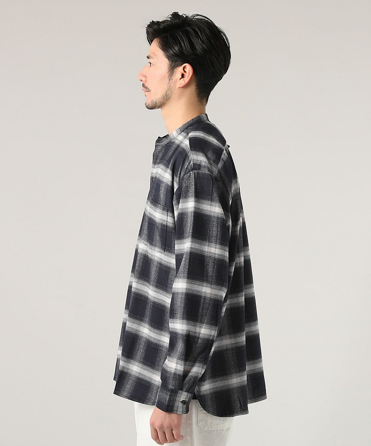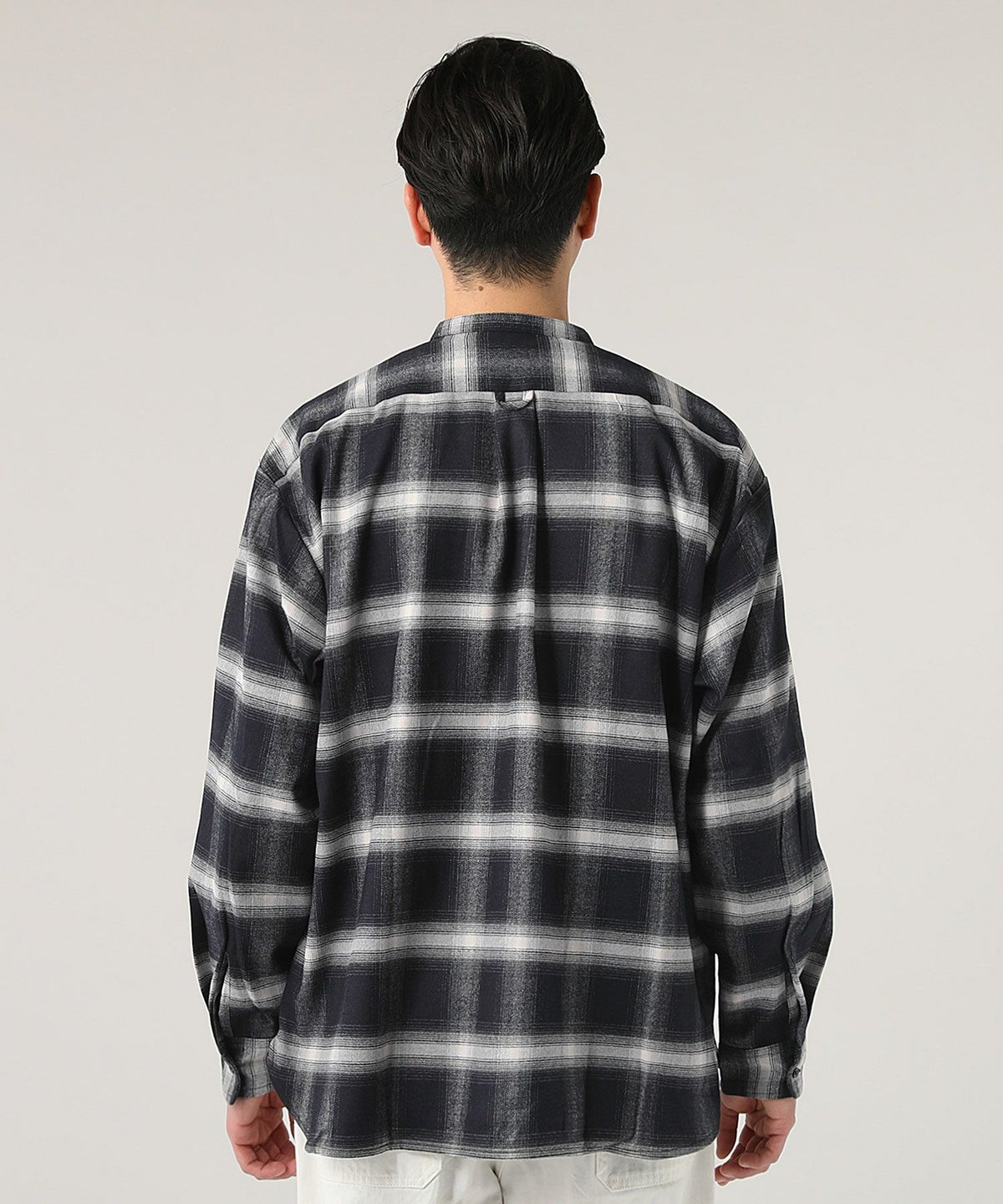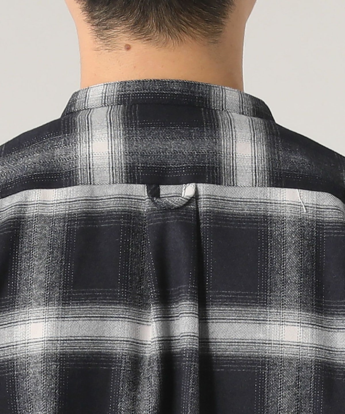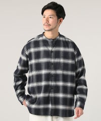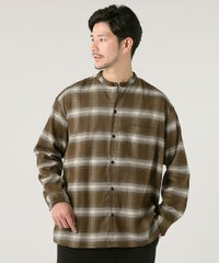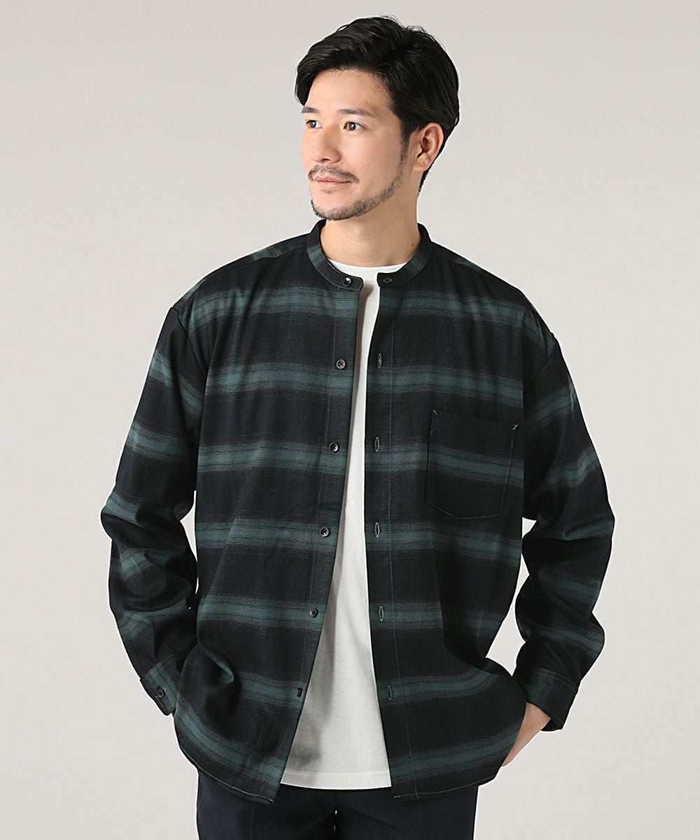 オンブレチェックバンドカラー長袖シャツ