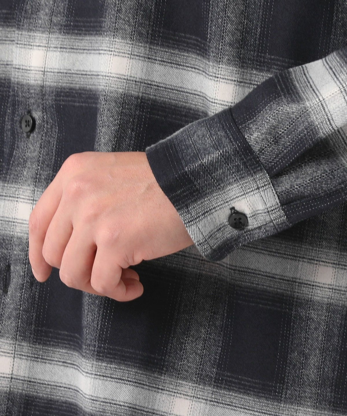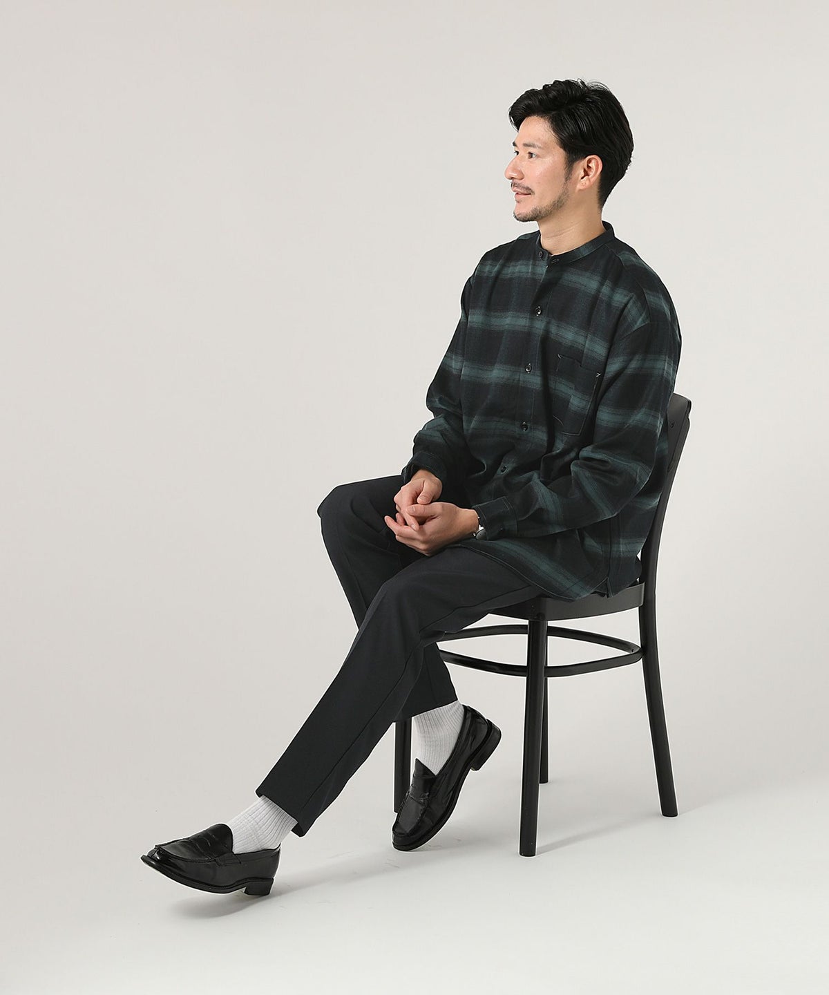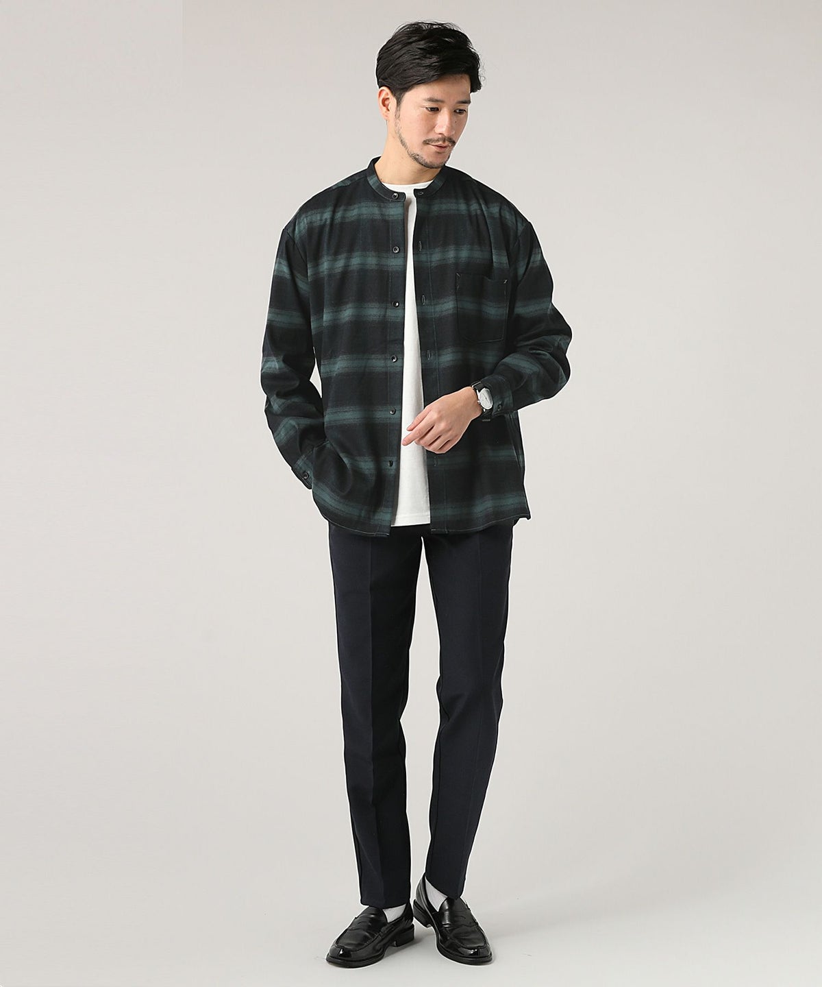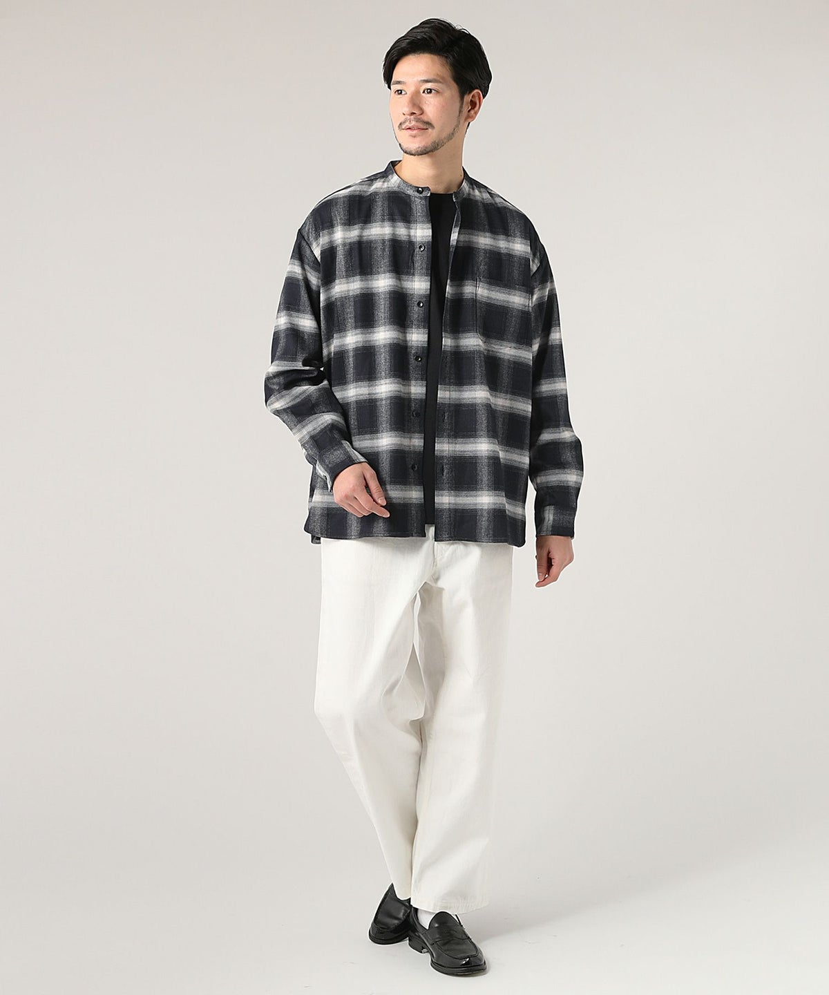 オンブレチェックバンドカラー長袖シャツ