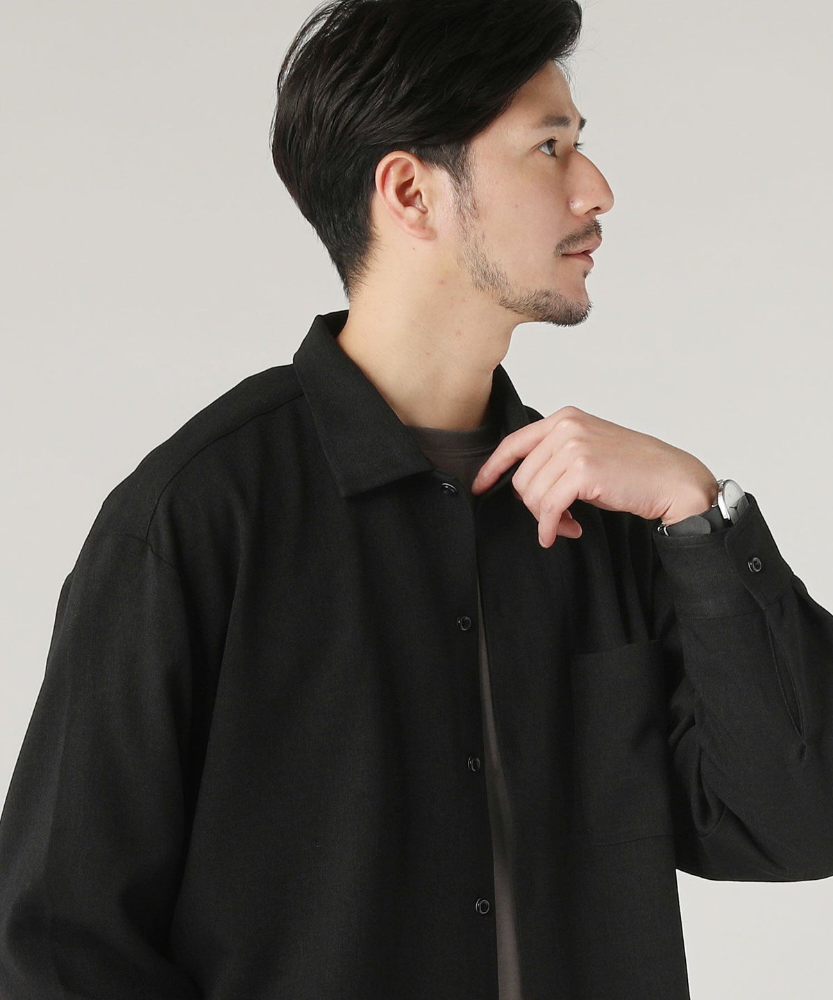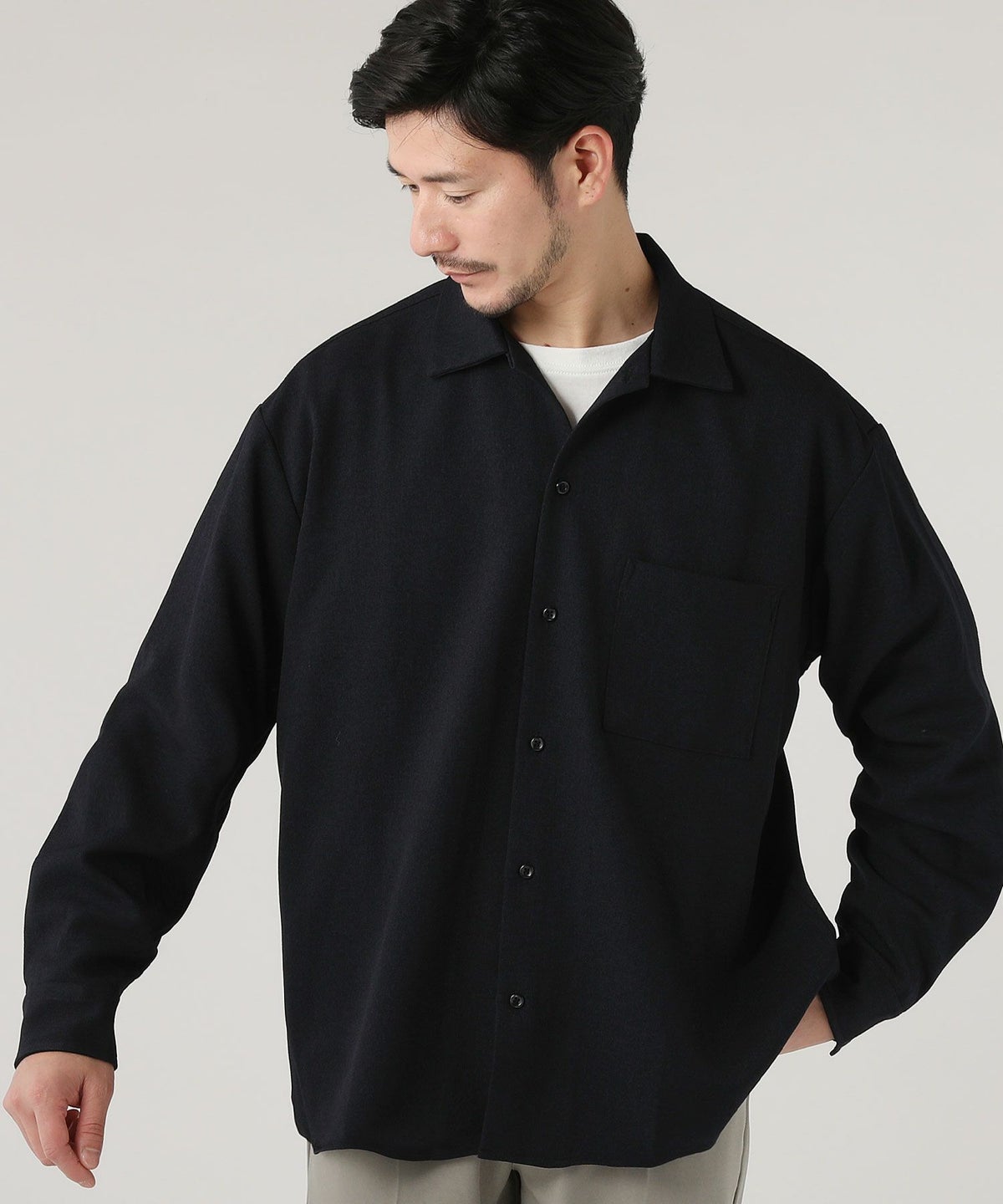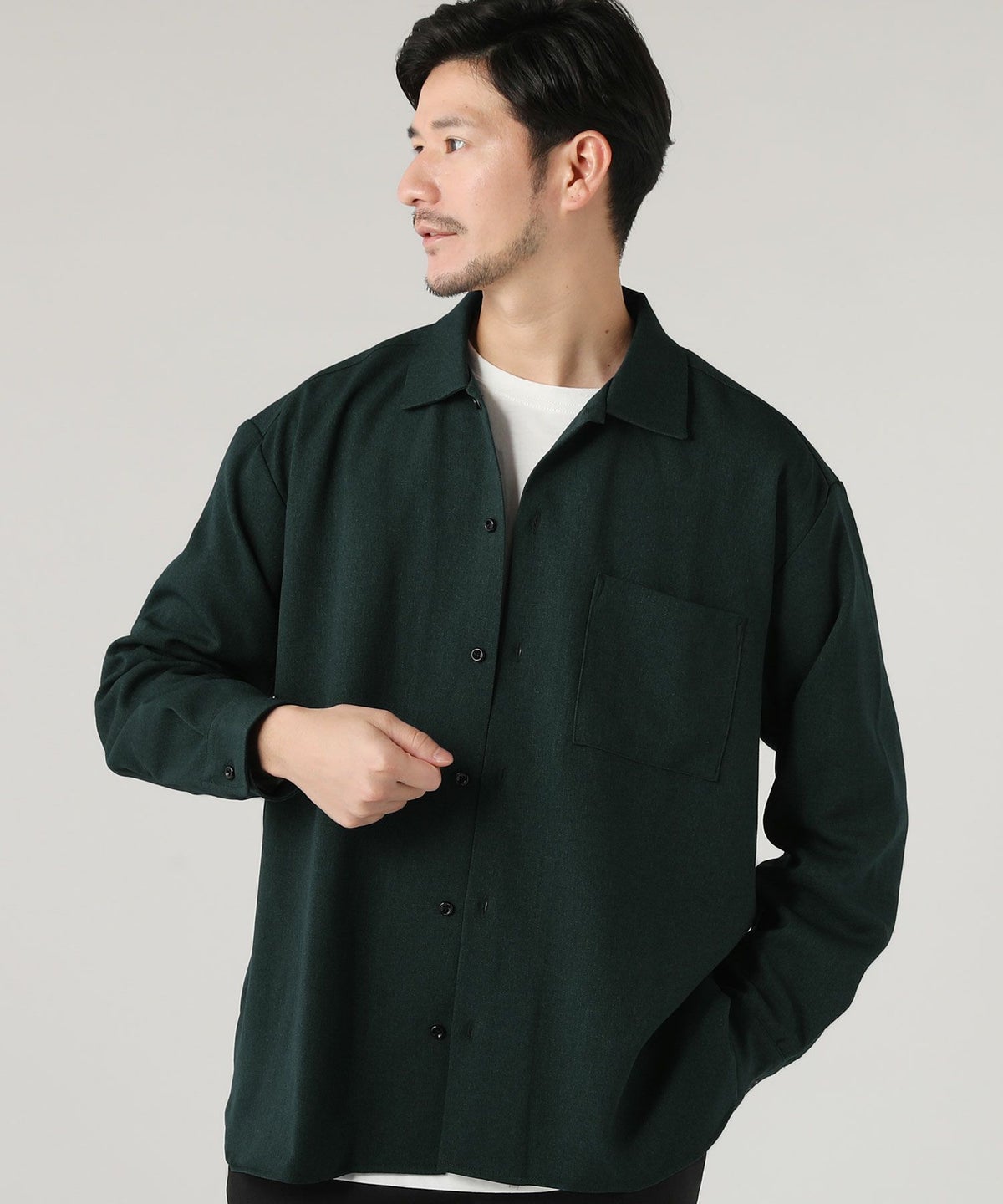 ウォッシャブル ストレッチイージーケア ウールライクラナテックレイRG長袖シャツ