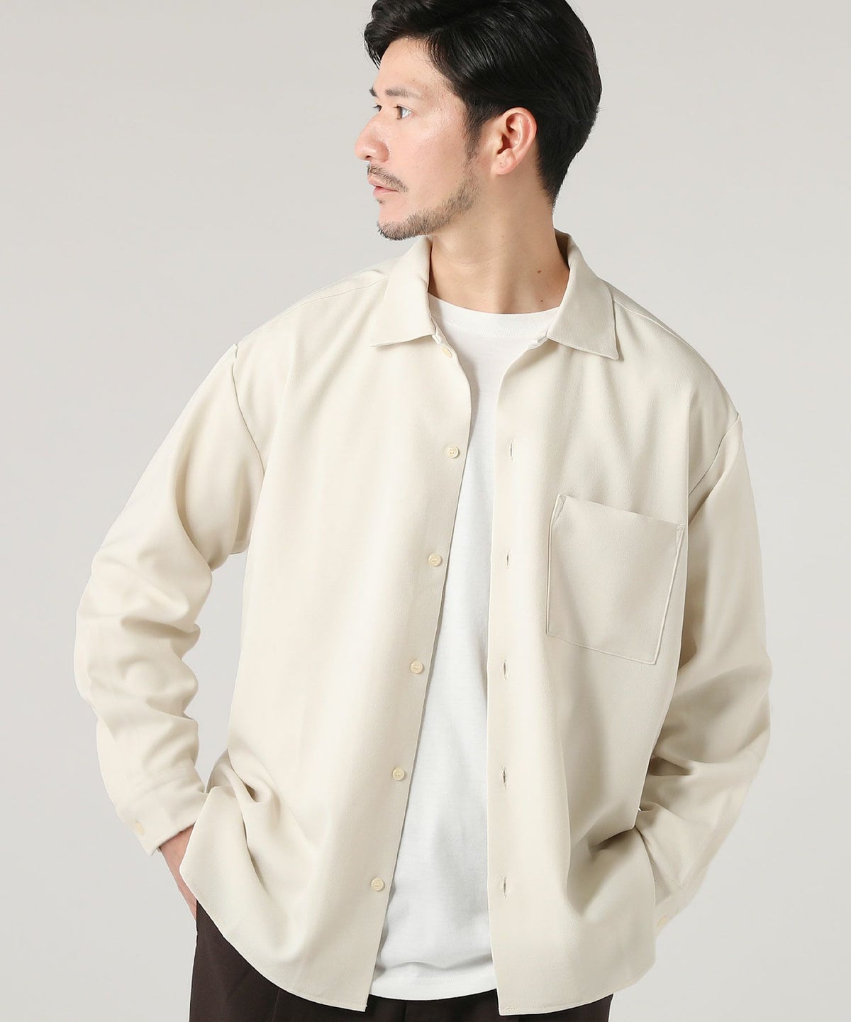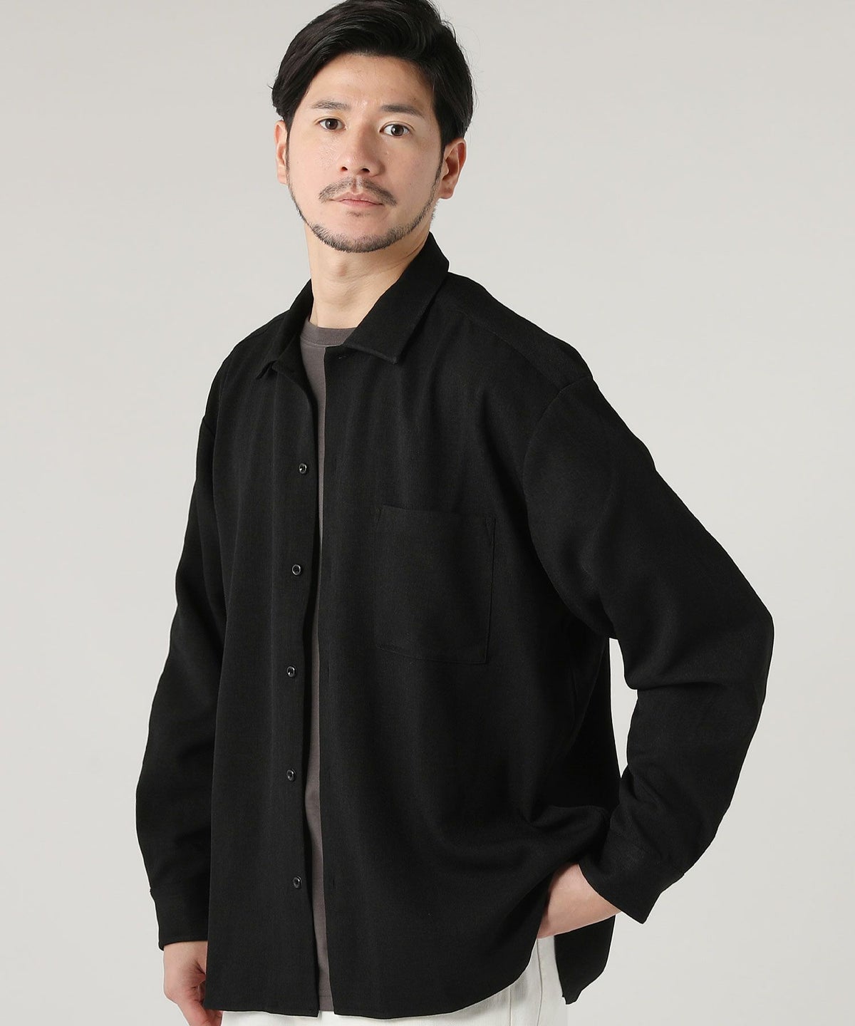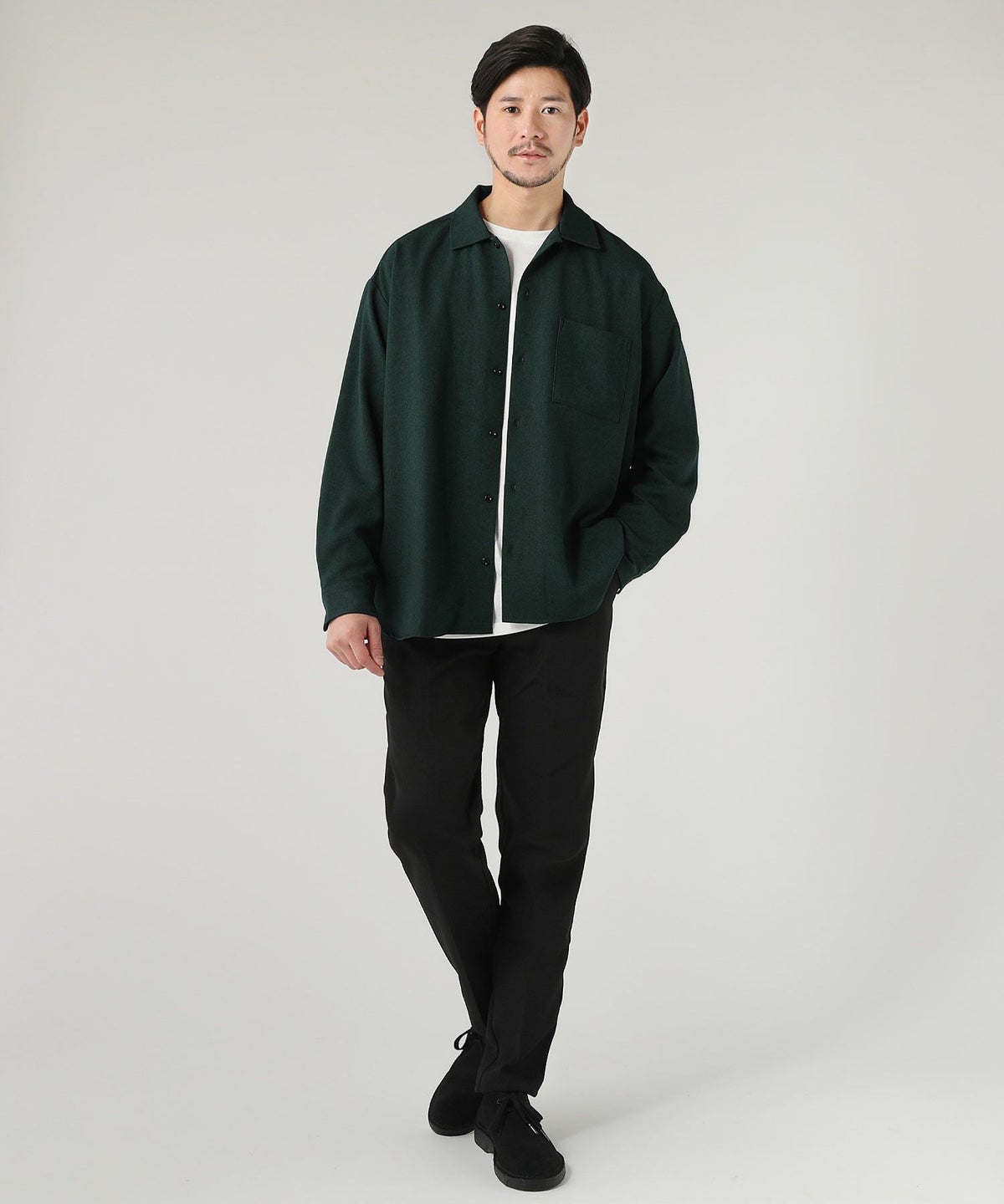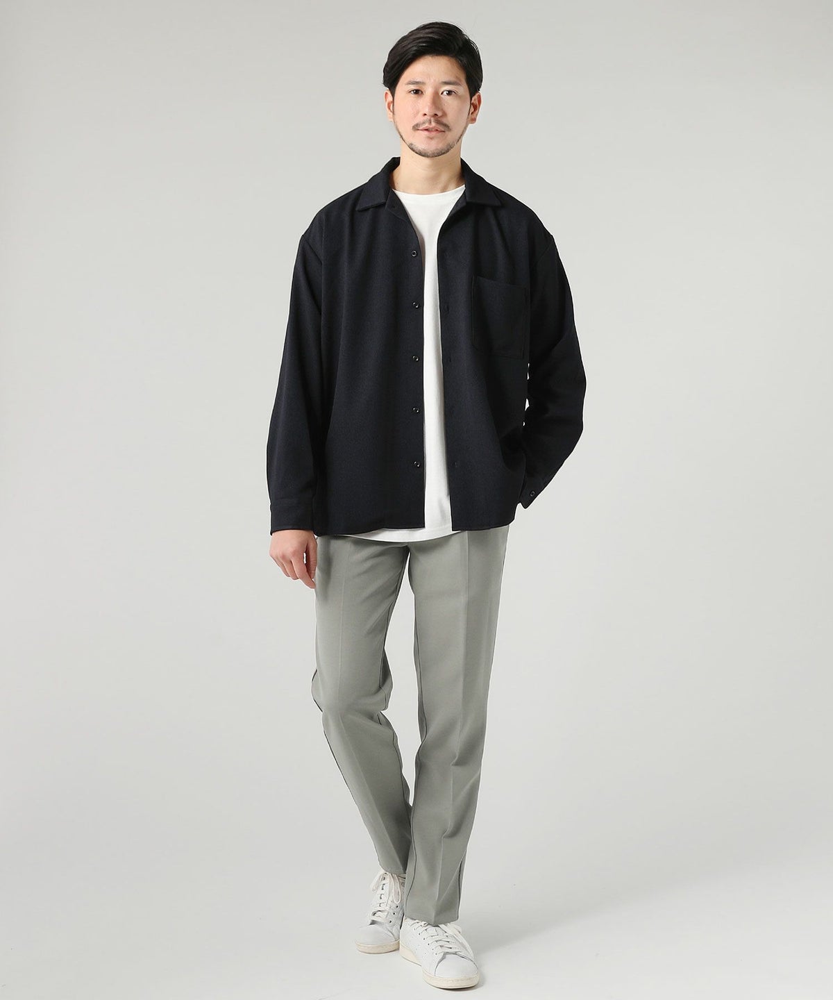 ウォッシャブル ストレッチイージーケア ウールライクラナテックレイRG長袖シャツ
