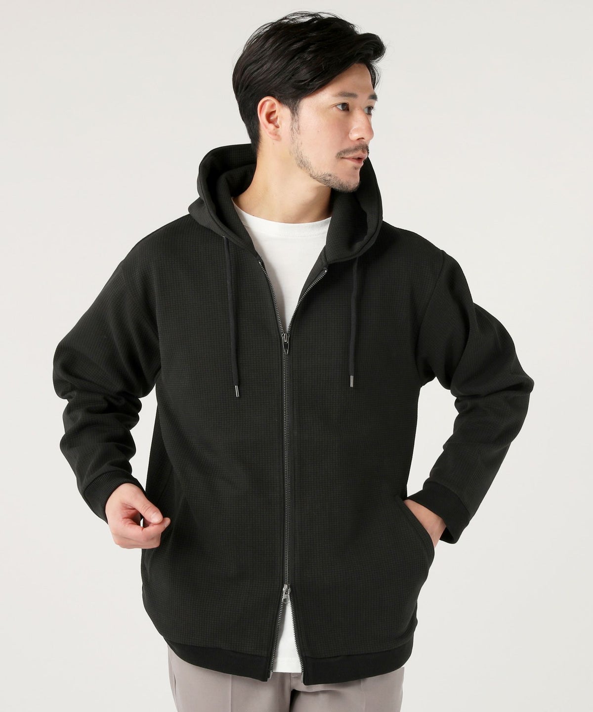 ブロックニットフーディージャケット