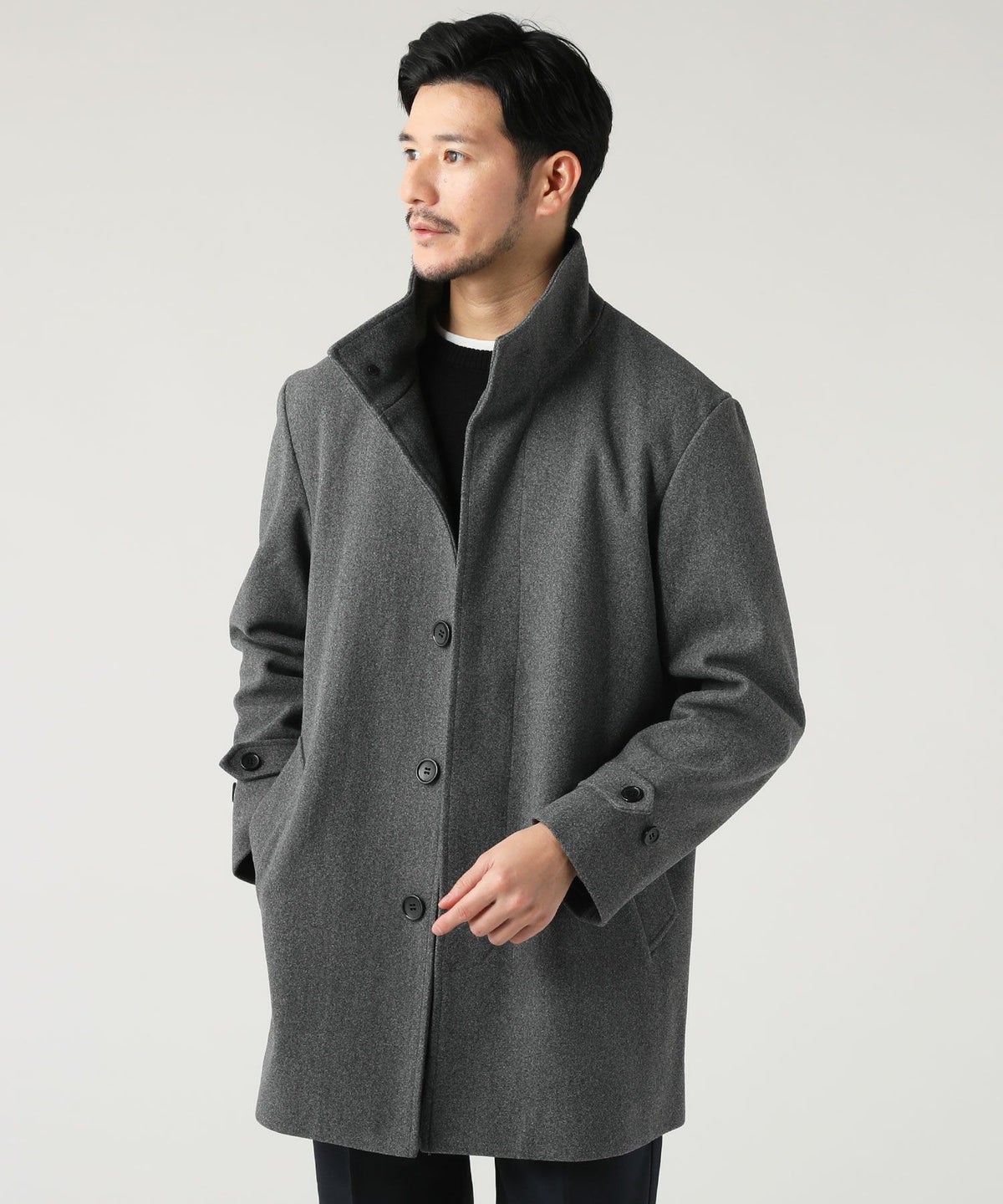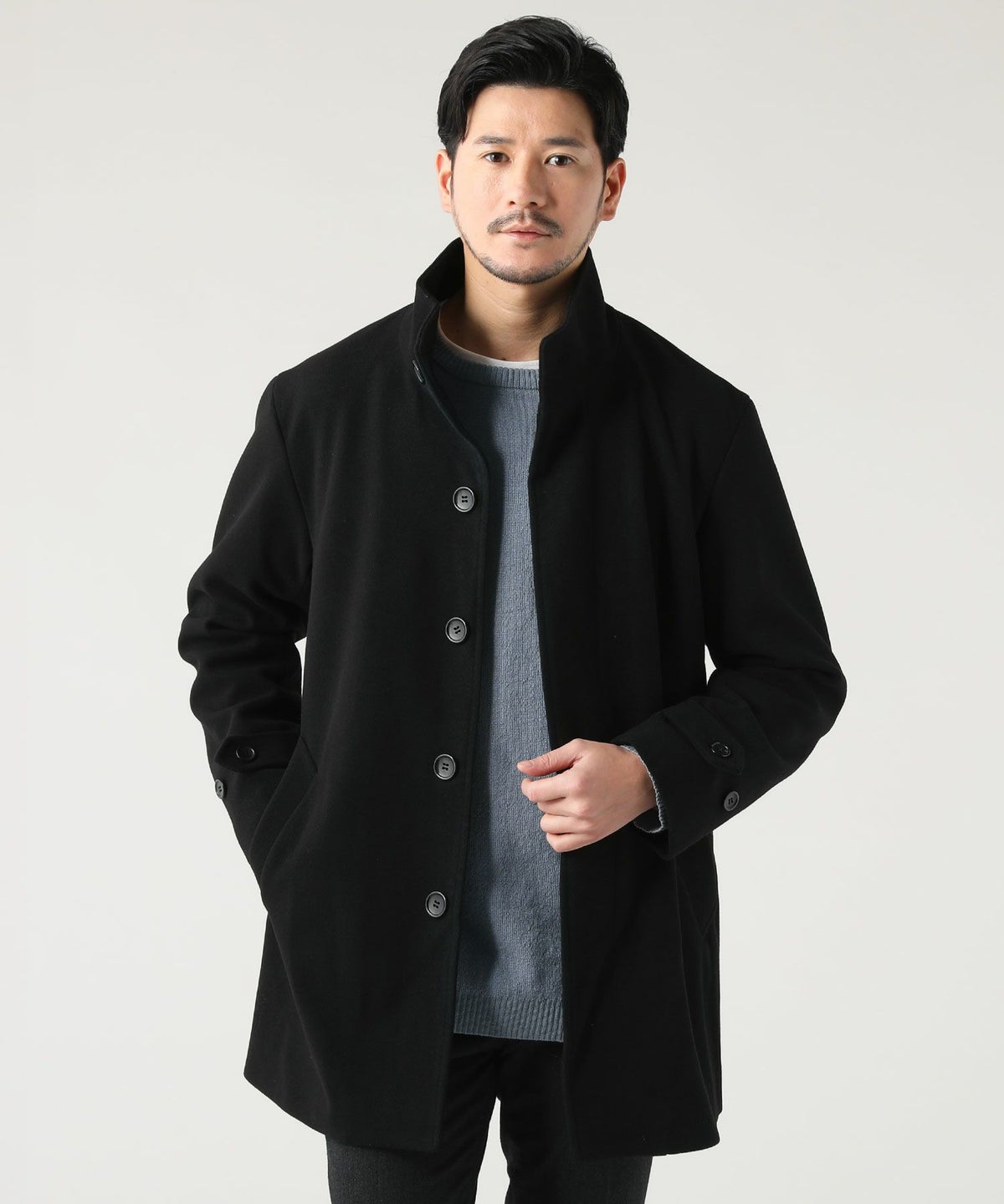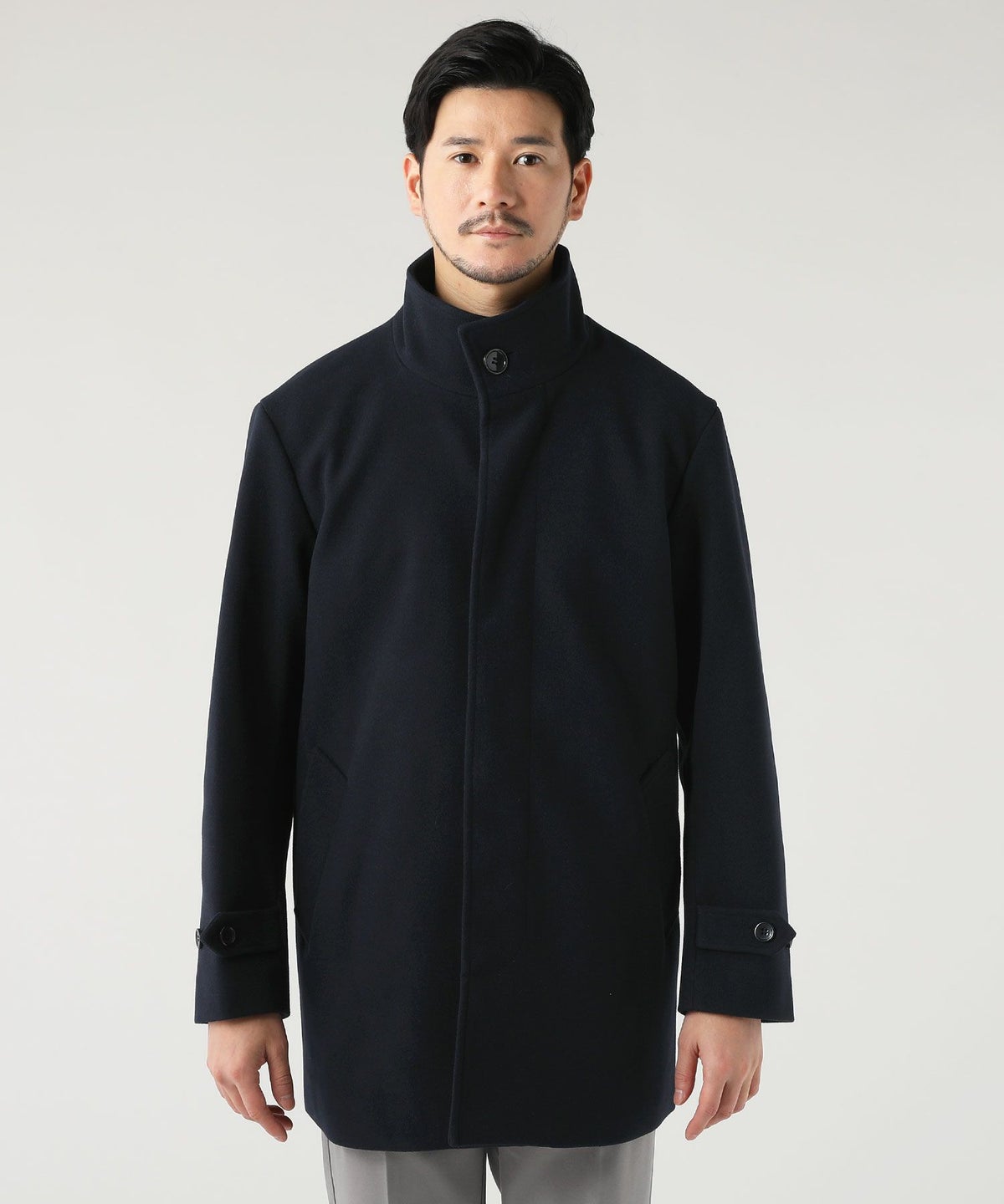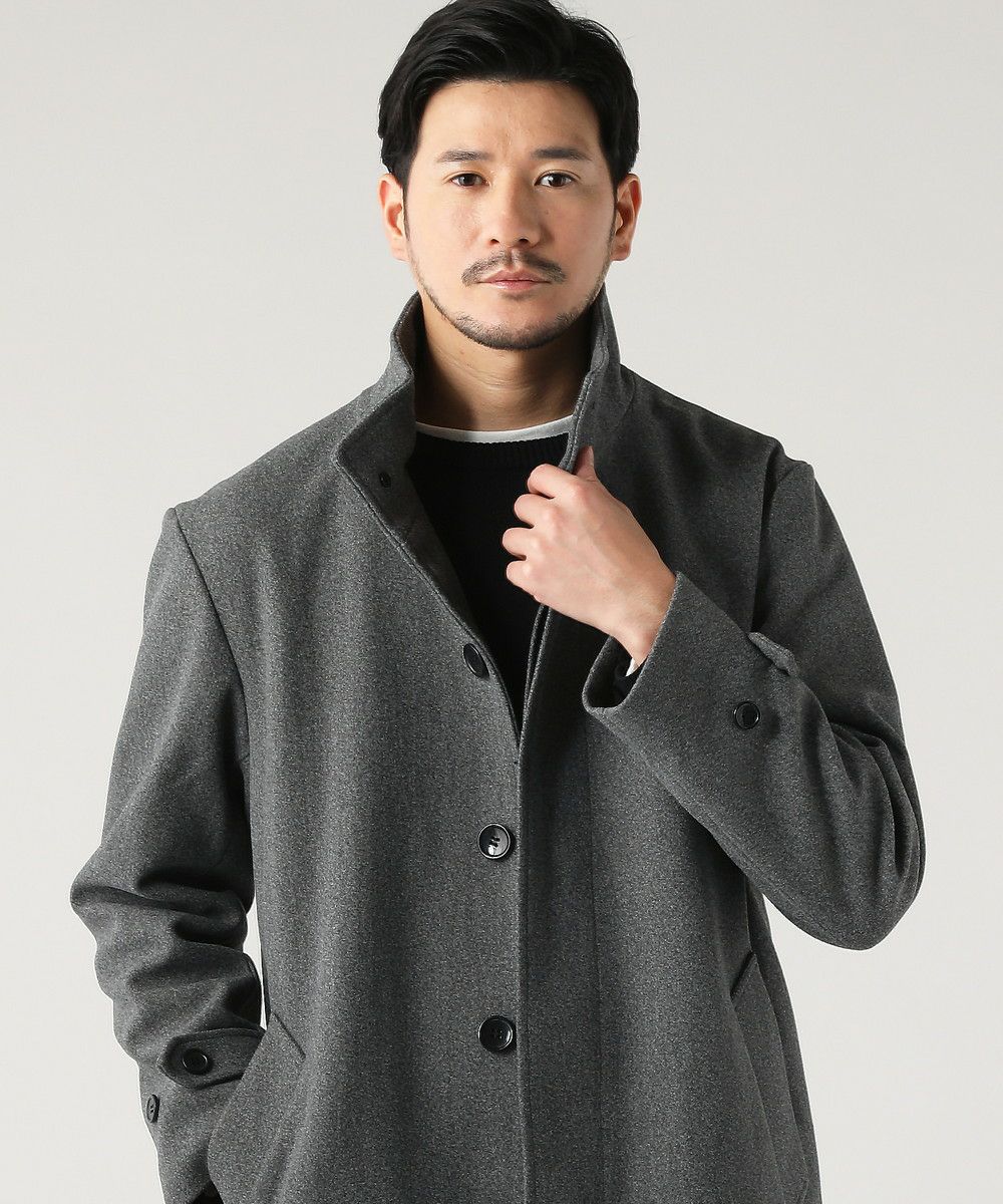 ウォッシャブル ストレッチイージーケア ウールライクラナテックメルトンジャージスタンドネックコート