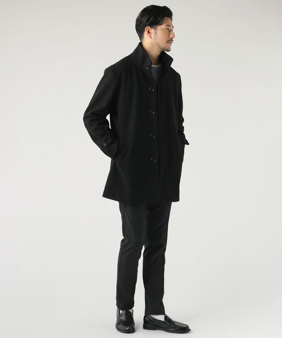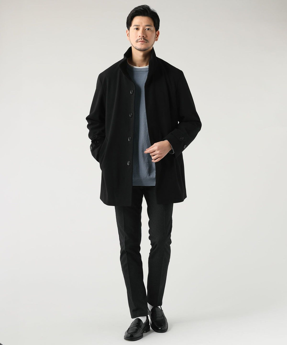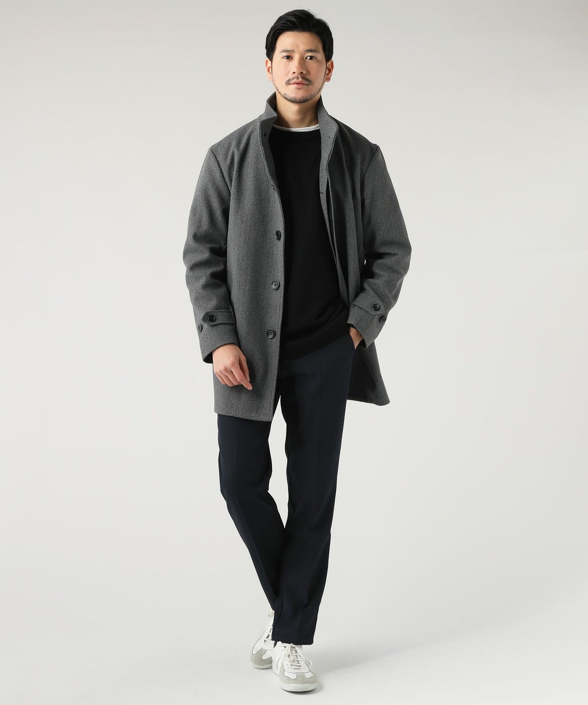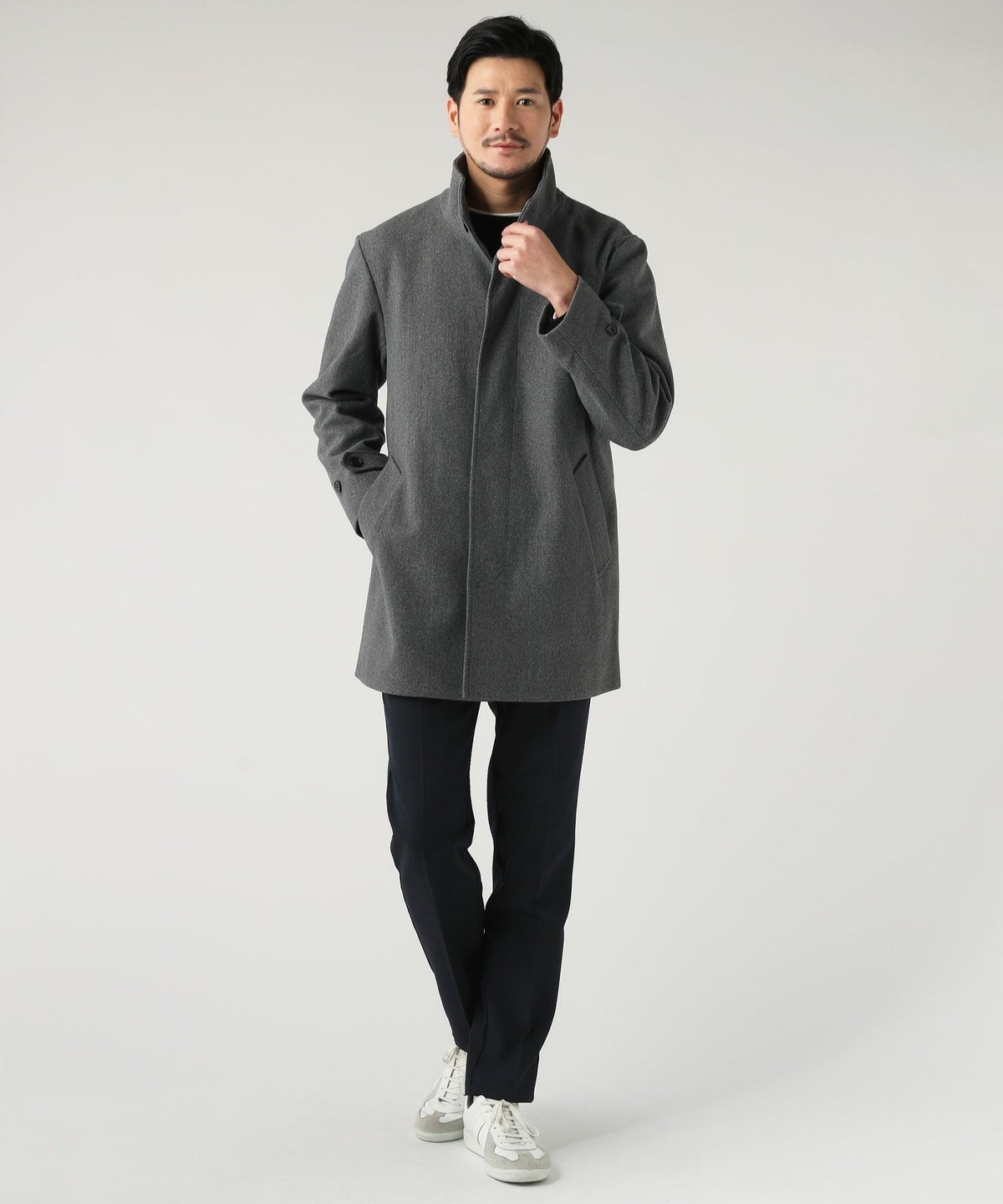 ウォッシャブル ストレッチイージーケア ウールライクラナテックメルトンジャージスタンドネックコート