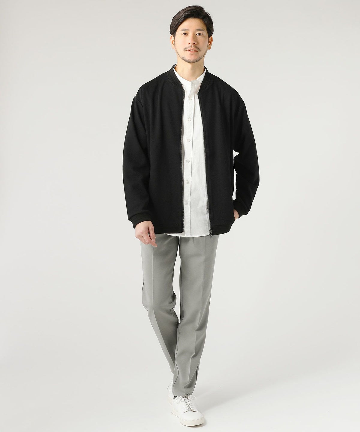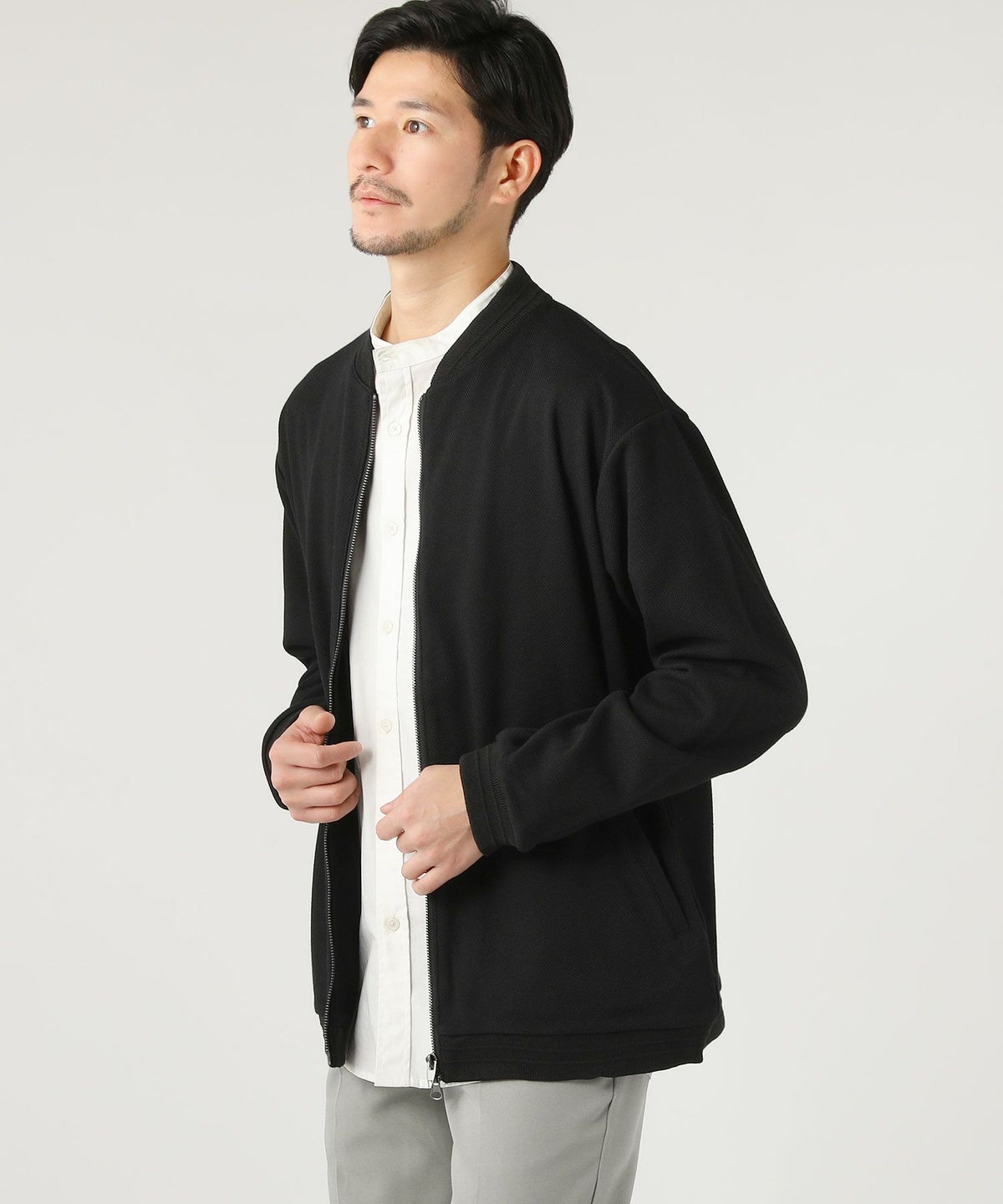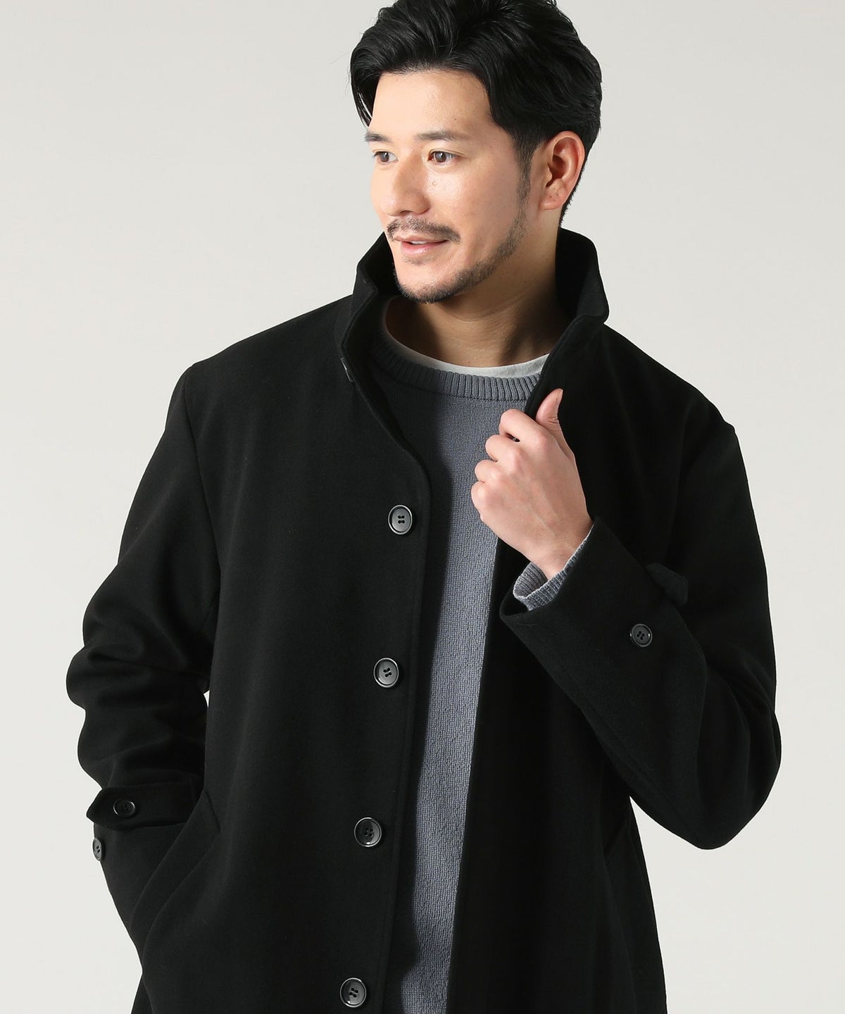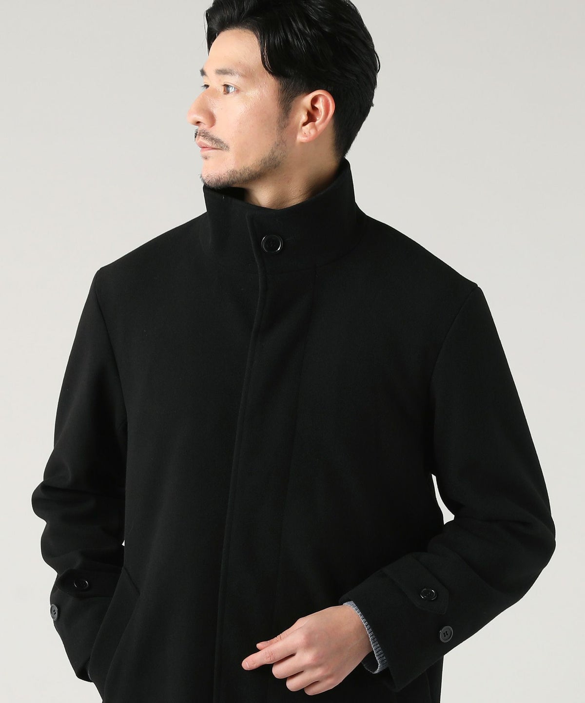 ウォッシャブル ストレッチイージーケア ウールライクラナテックメルトンジャージスタンドネックコート