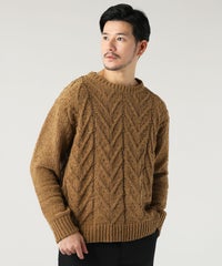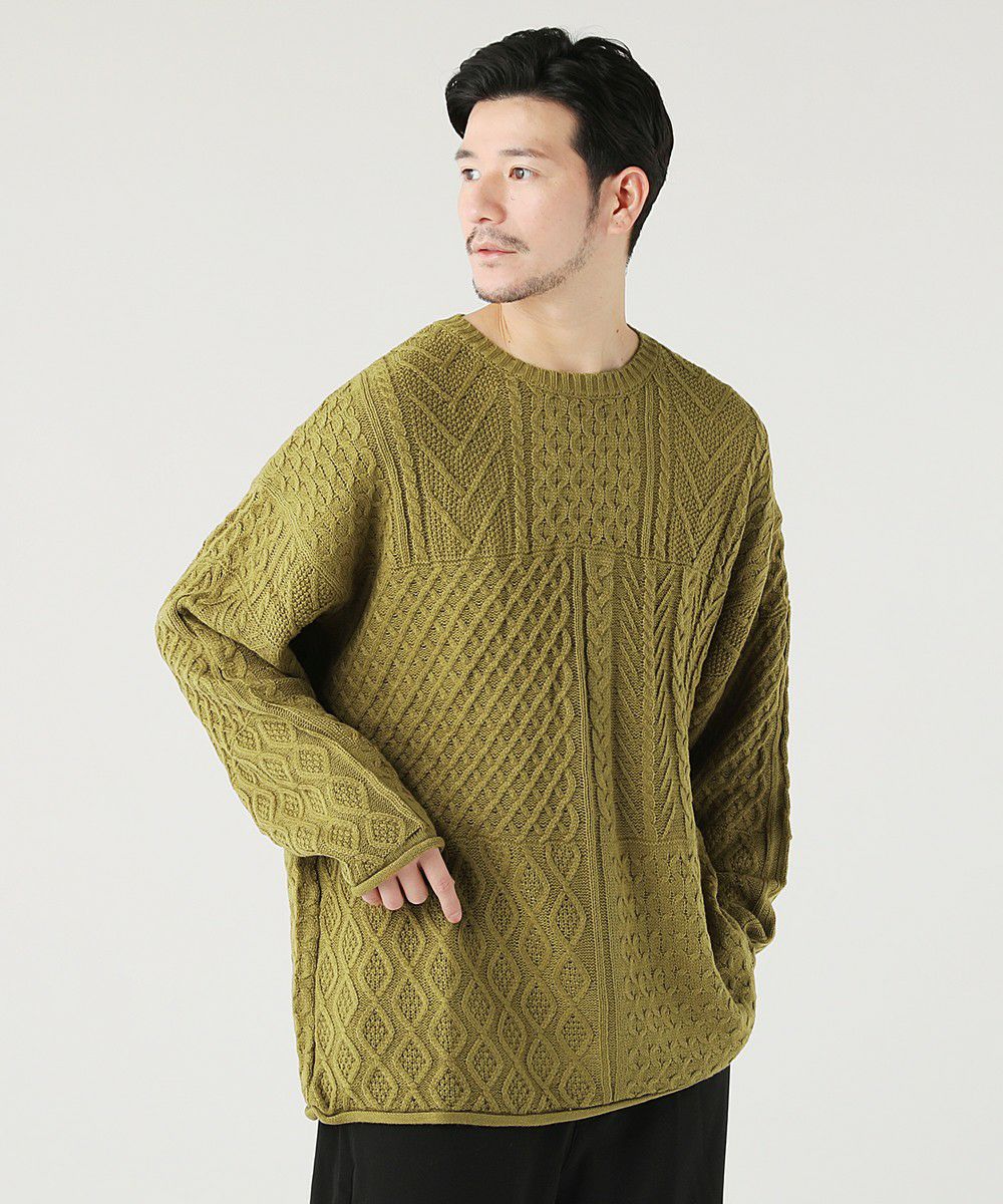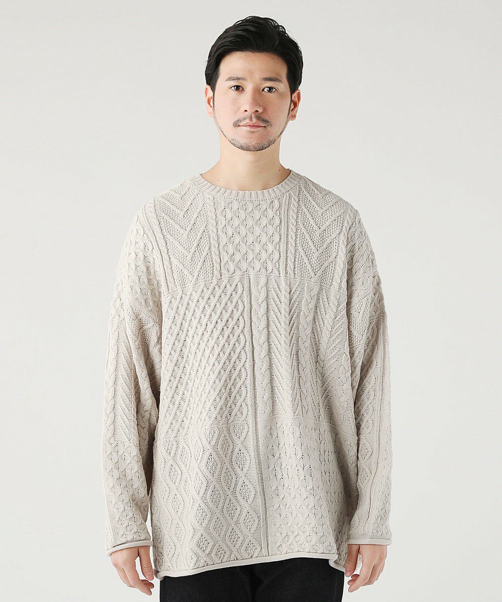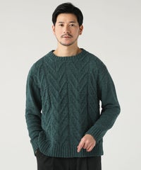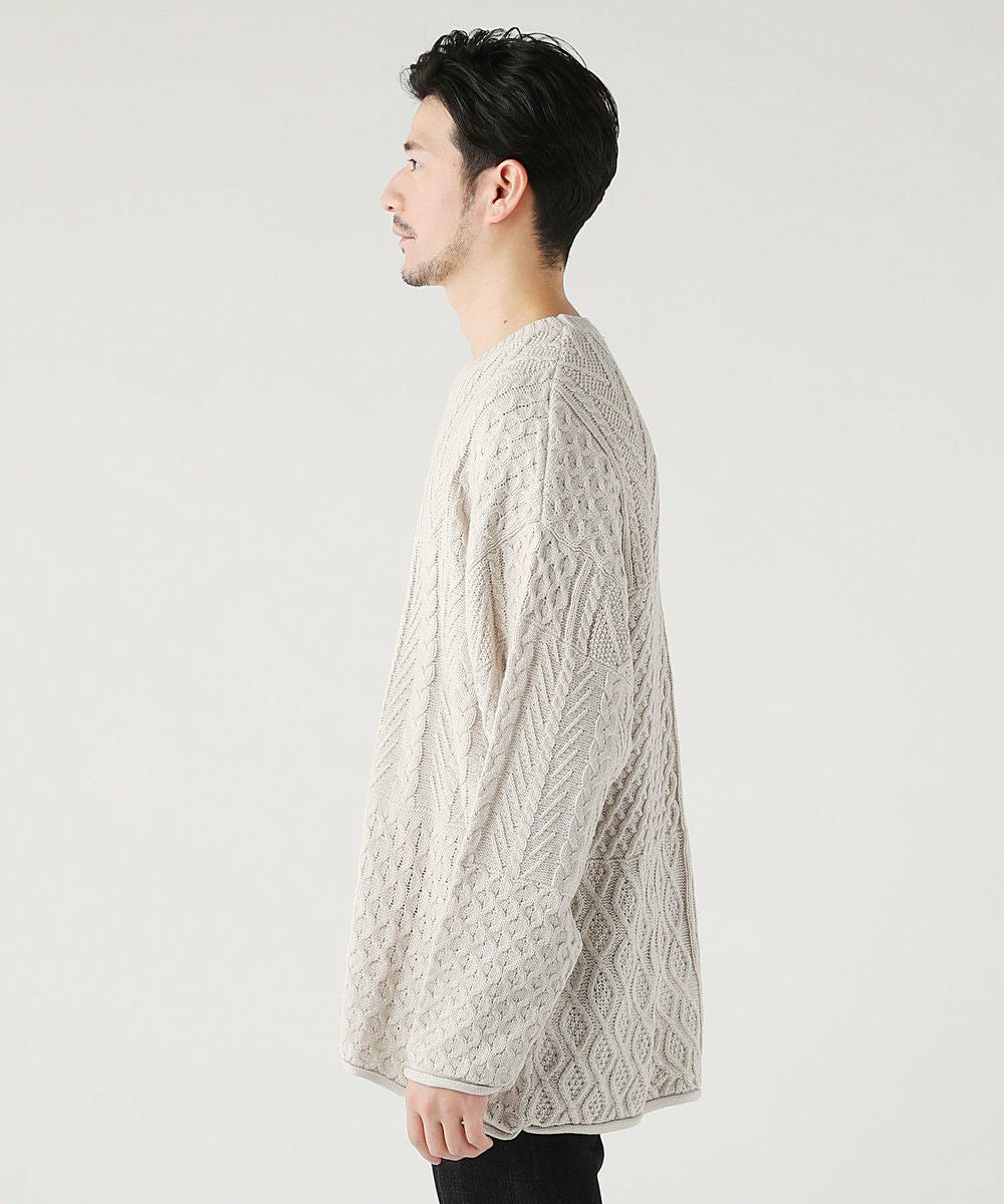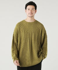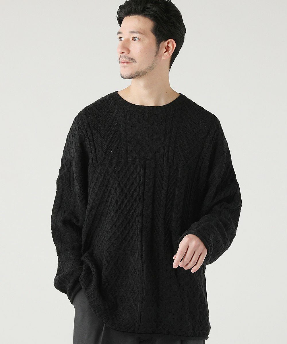 ケーブル編み切り替えクルーネックニット