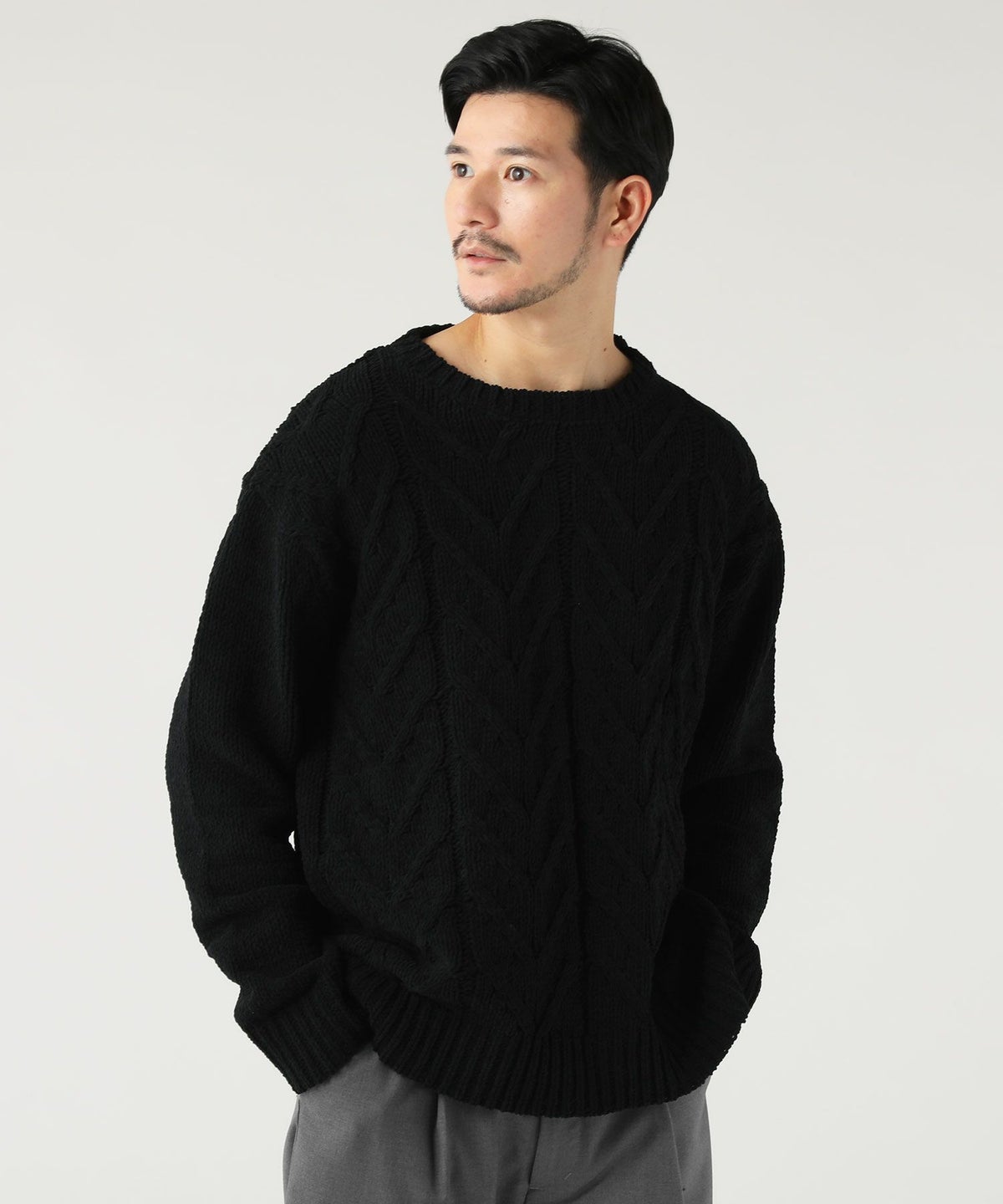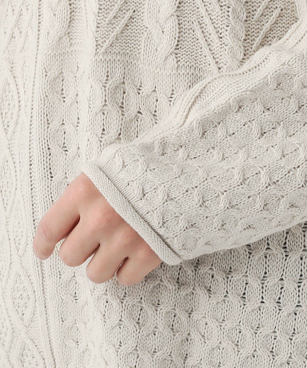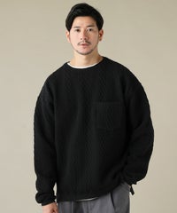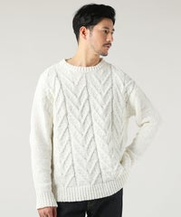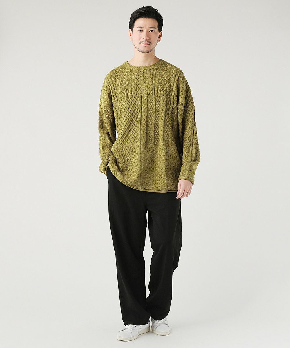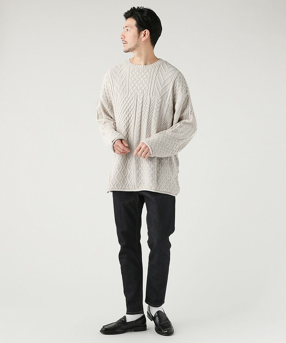 ケーブル編み切り替えクルーネックニット