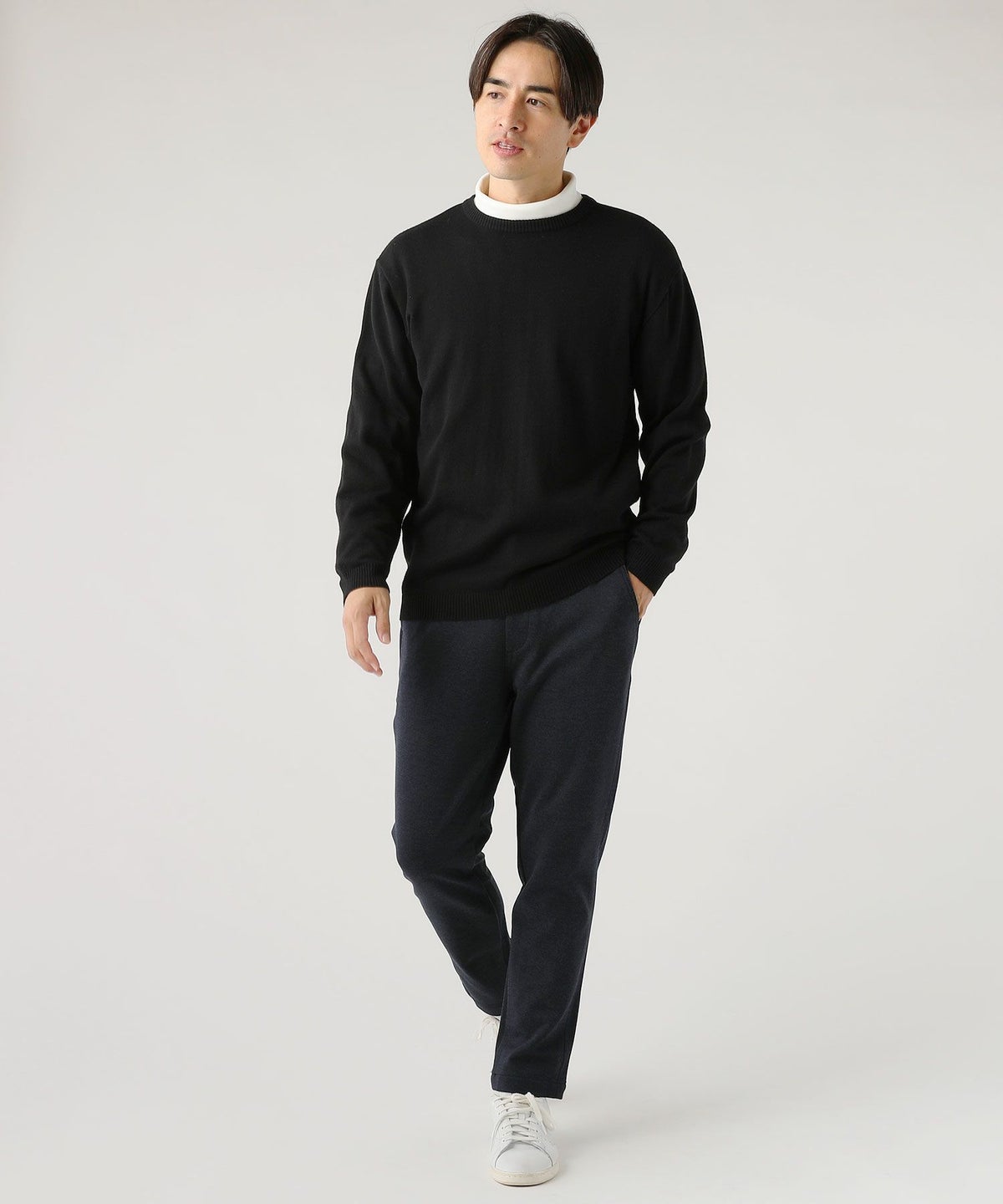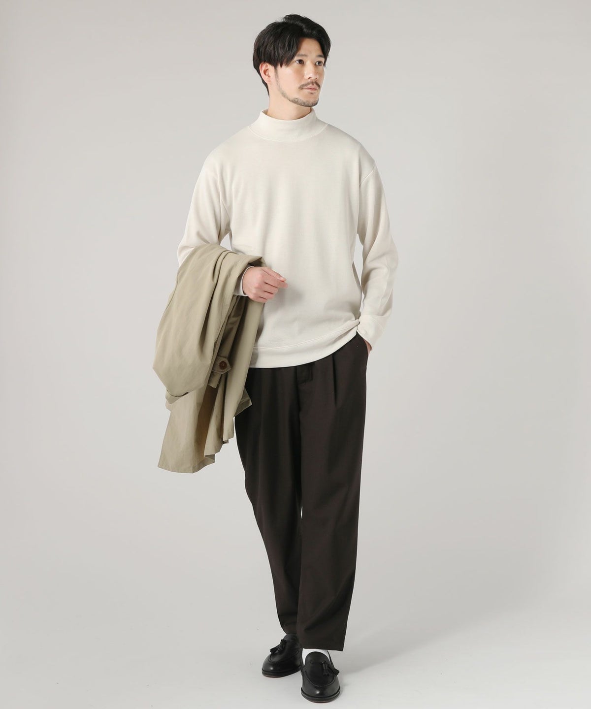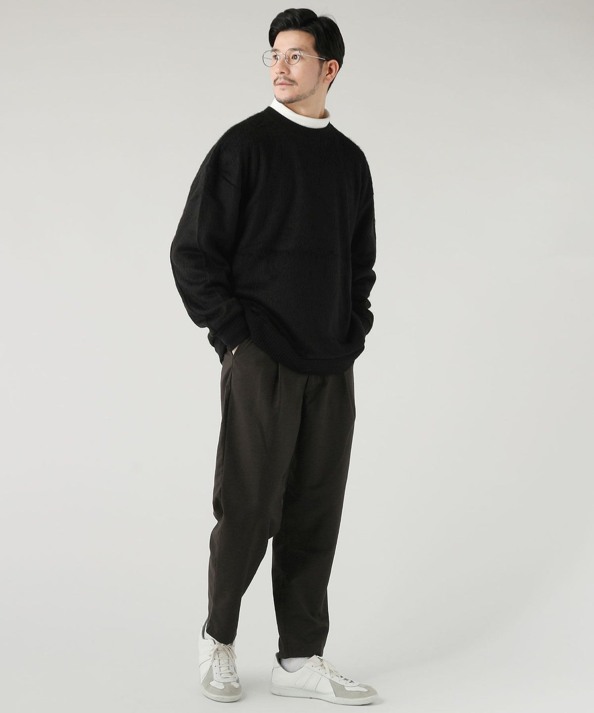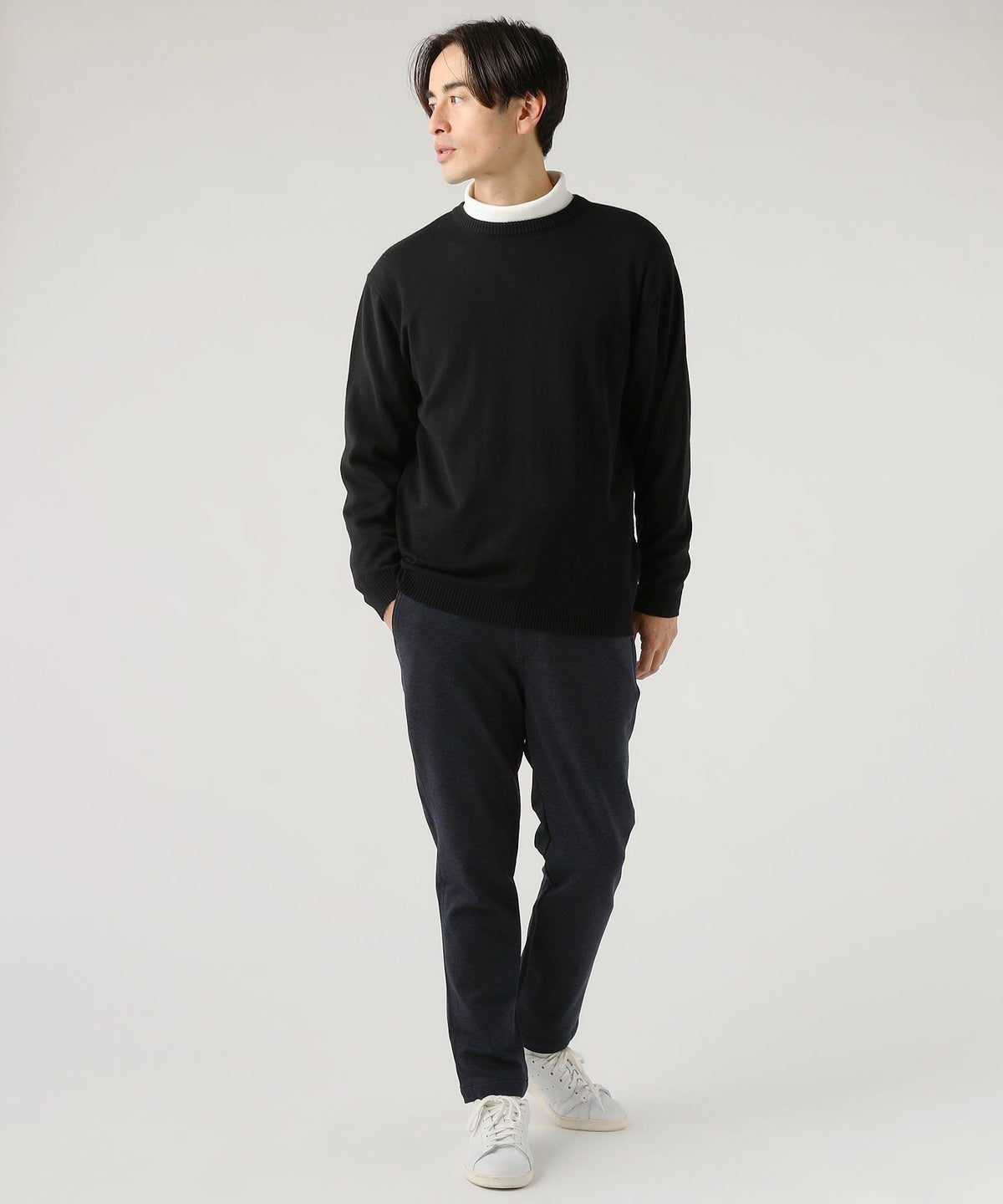 セミルーズシルエットミラノリブモックネックニットソー