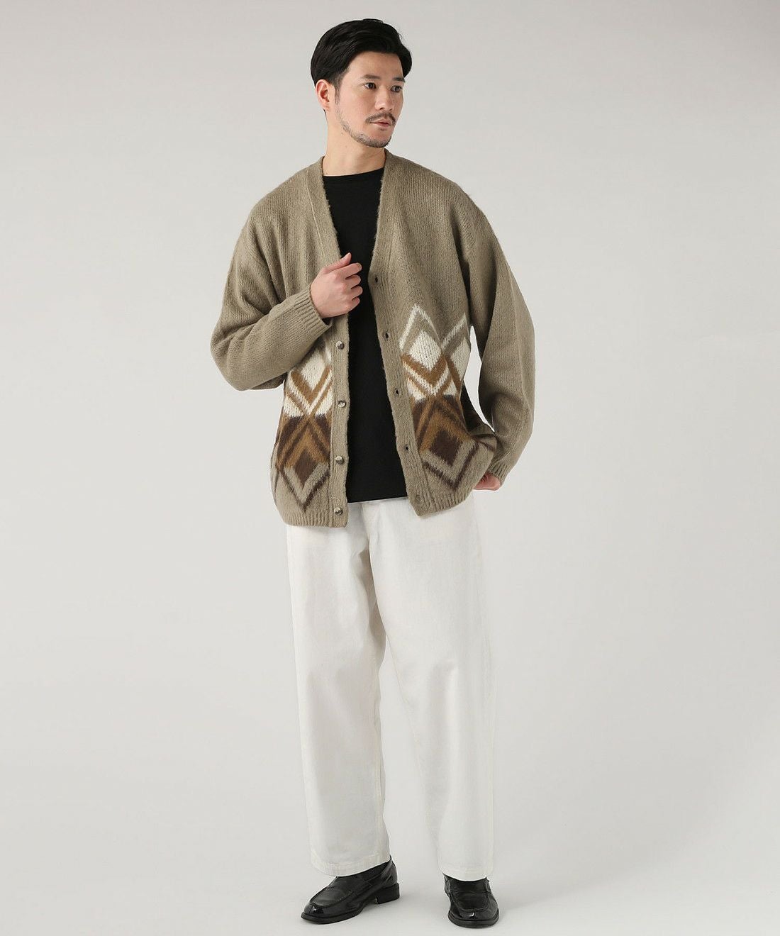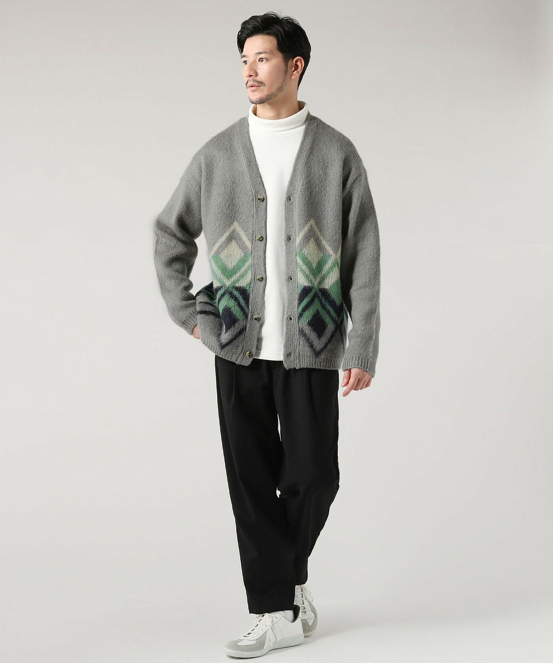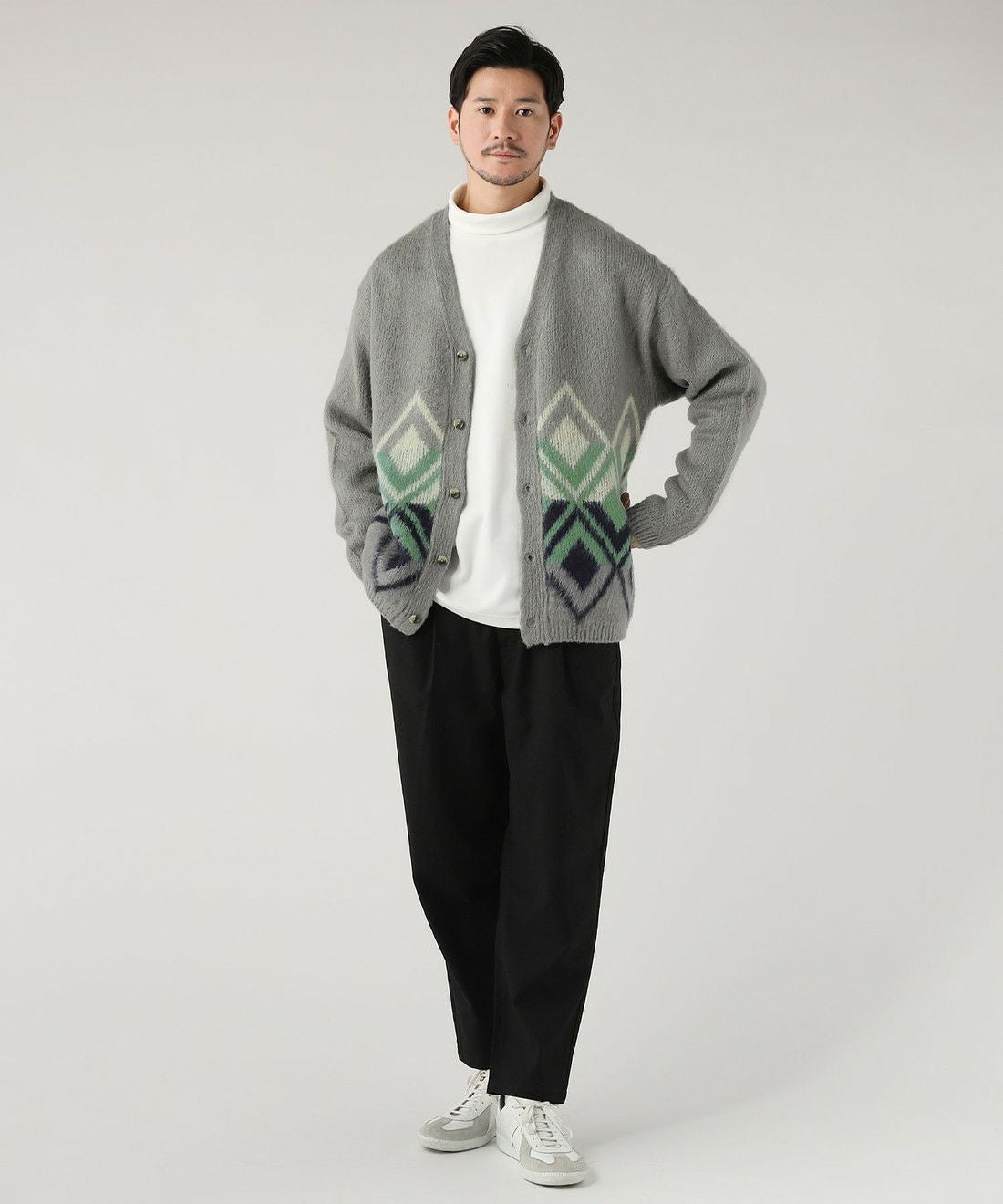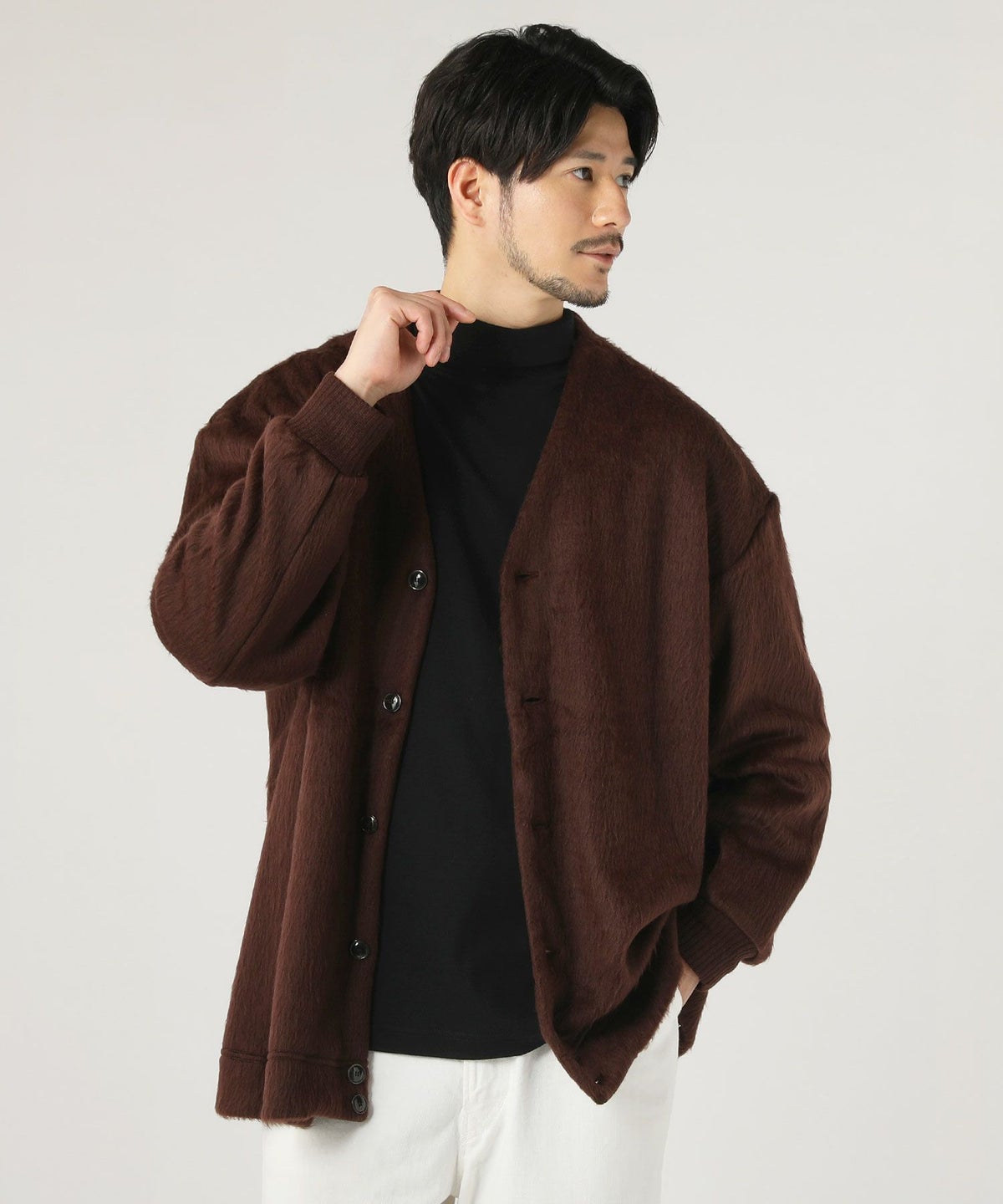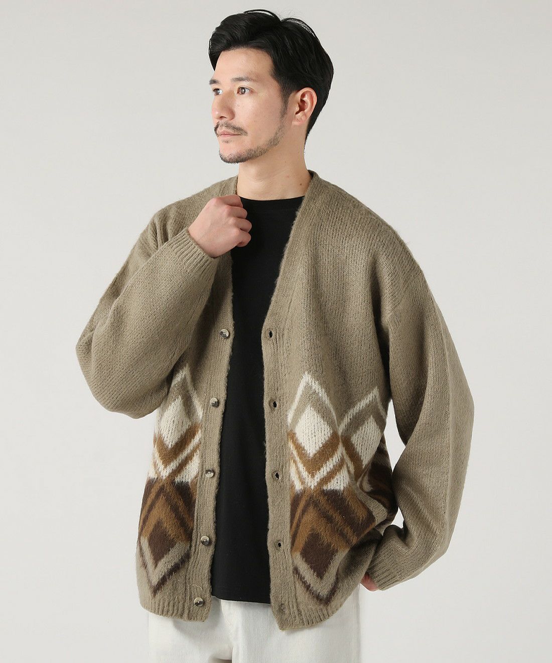 モヘア調シャギージャカード柄カーディガン