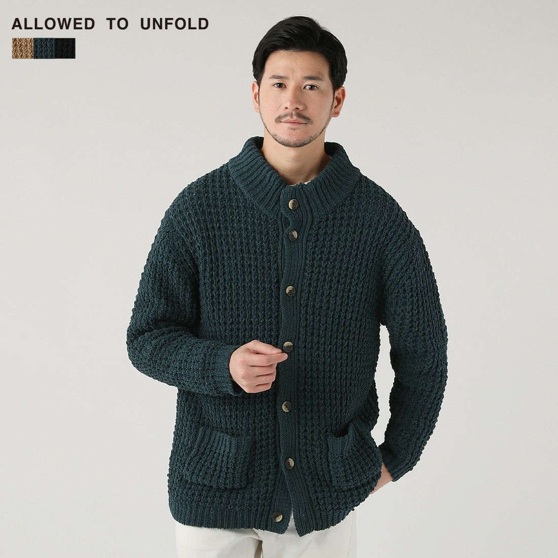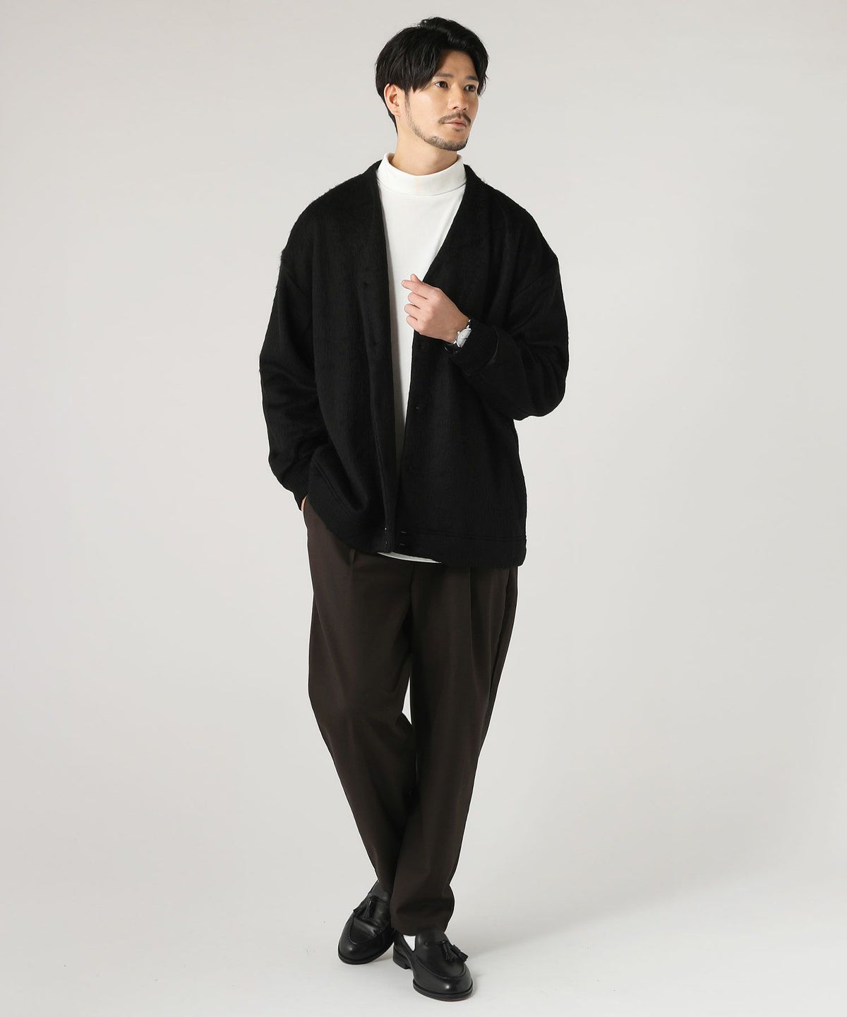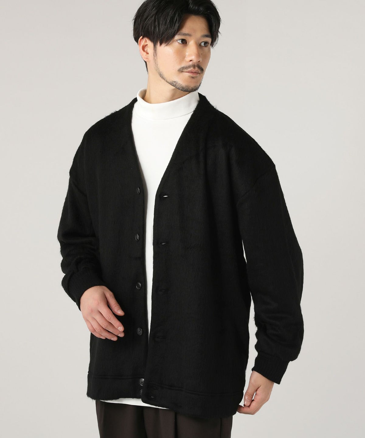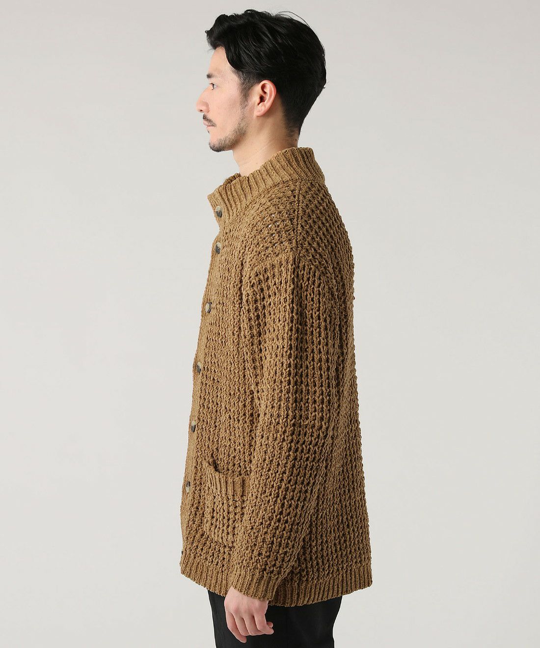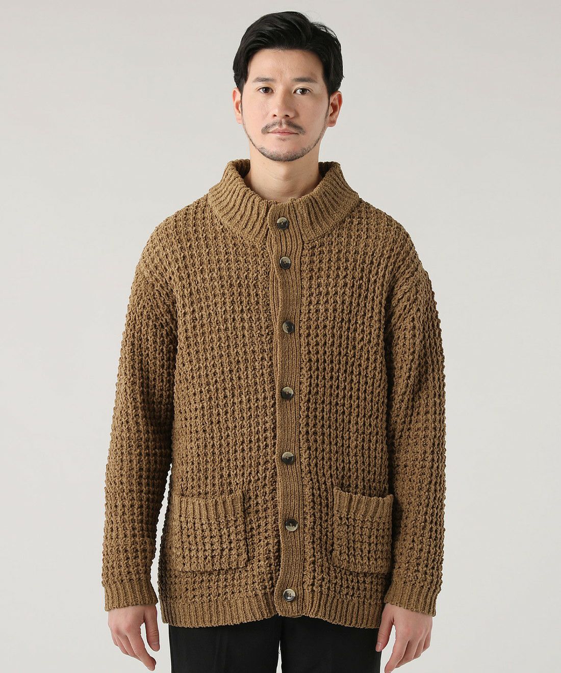 モール畦編みスタンドカーディガン