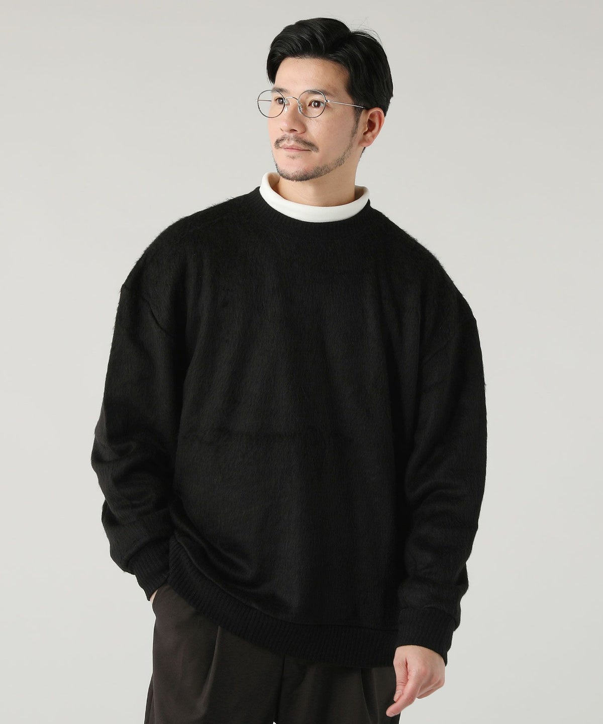日本製EXLANWOOL(エクスランウール)シャギークルーネック ニットソー