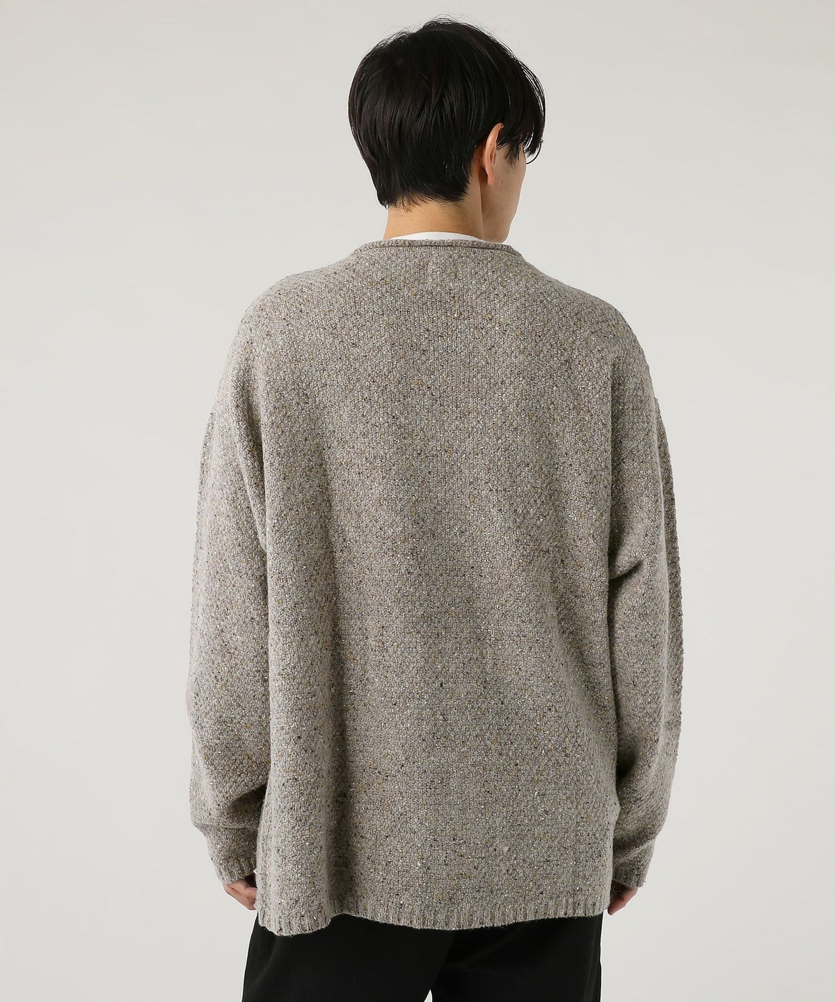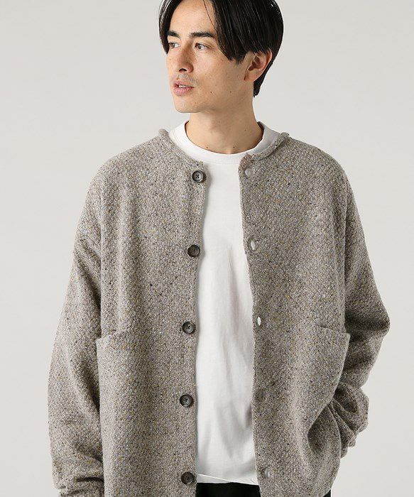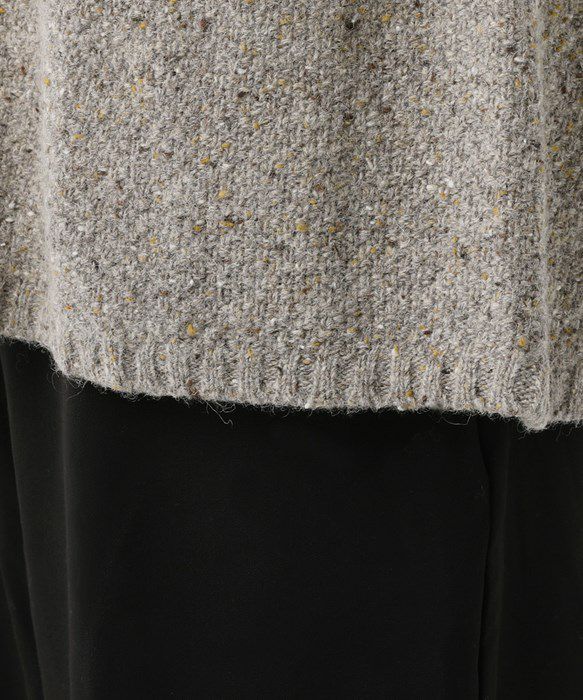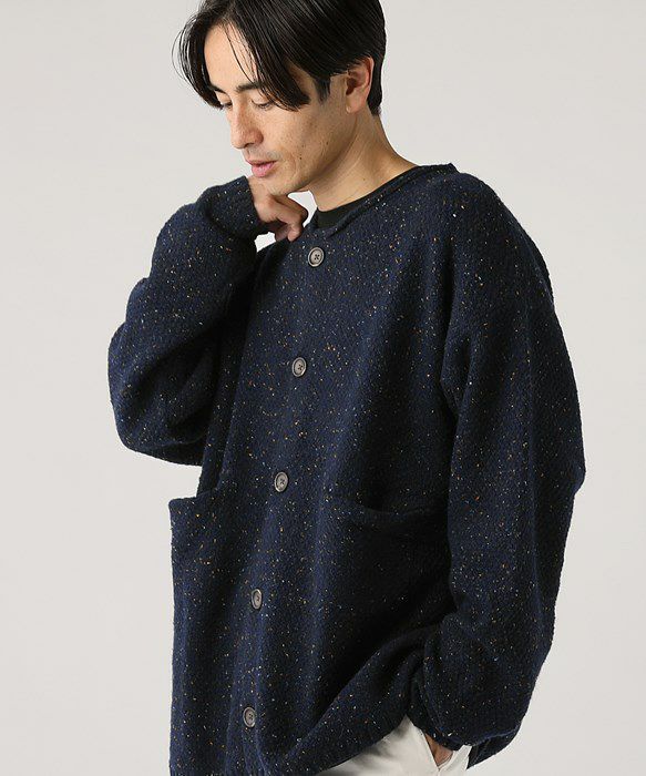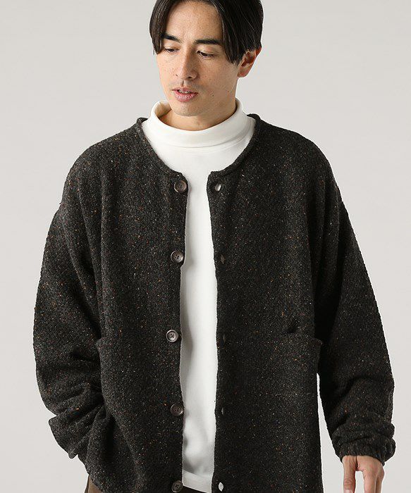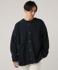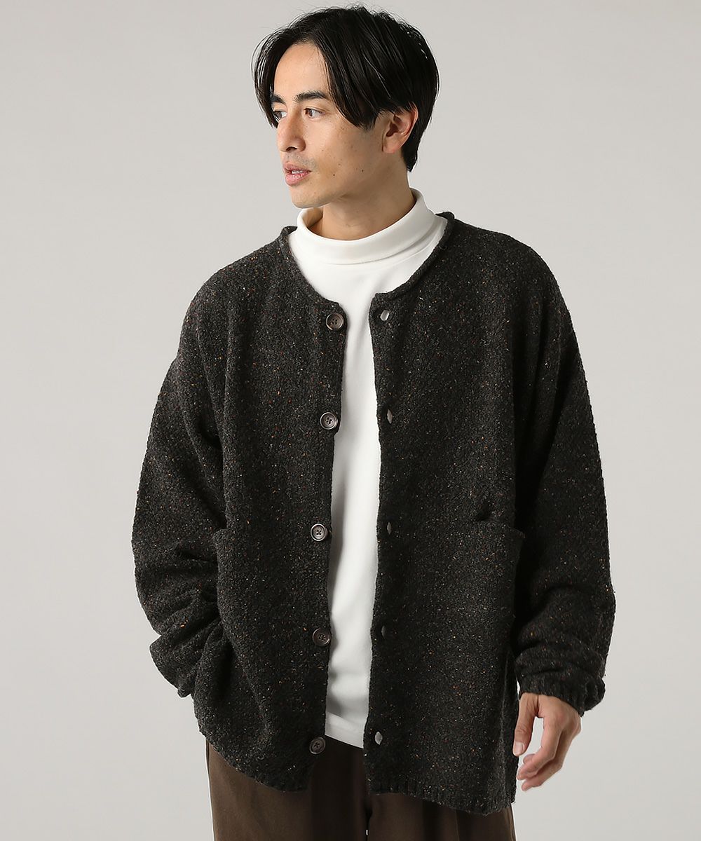 ウール混5G鹿の子編みカラーネップクルーネックカーディガン