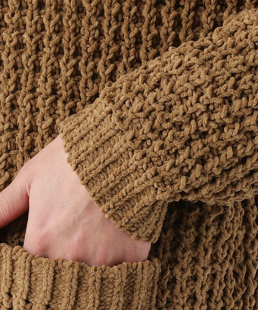 モール畔編みクルーネックニット
