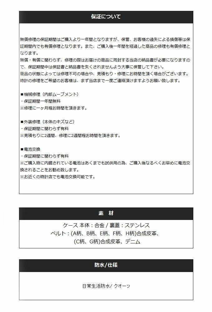 他の画像を見る CHPO HAROLD VINTAGE WORLD JAPANEASE WAVE ROGER METAL CAMO アナログ腕時計 ¥ 7,480 税込 在庫切れ カートに入れる お気に入りに登録する