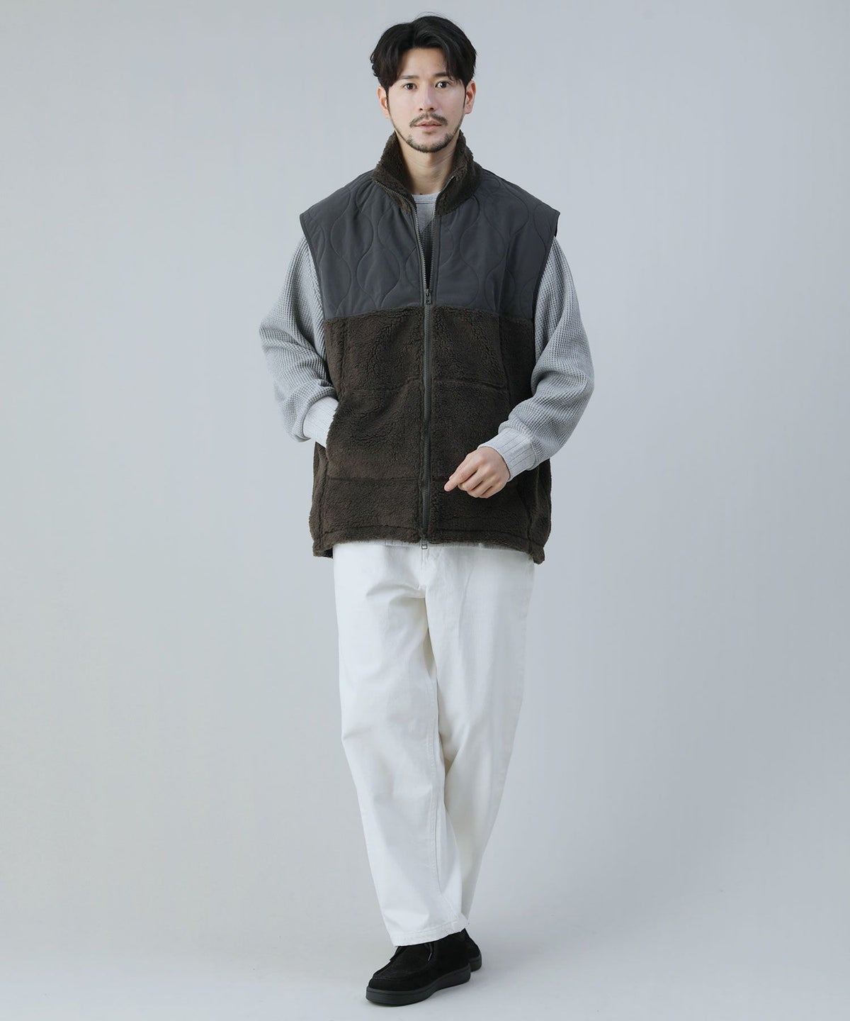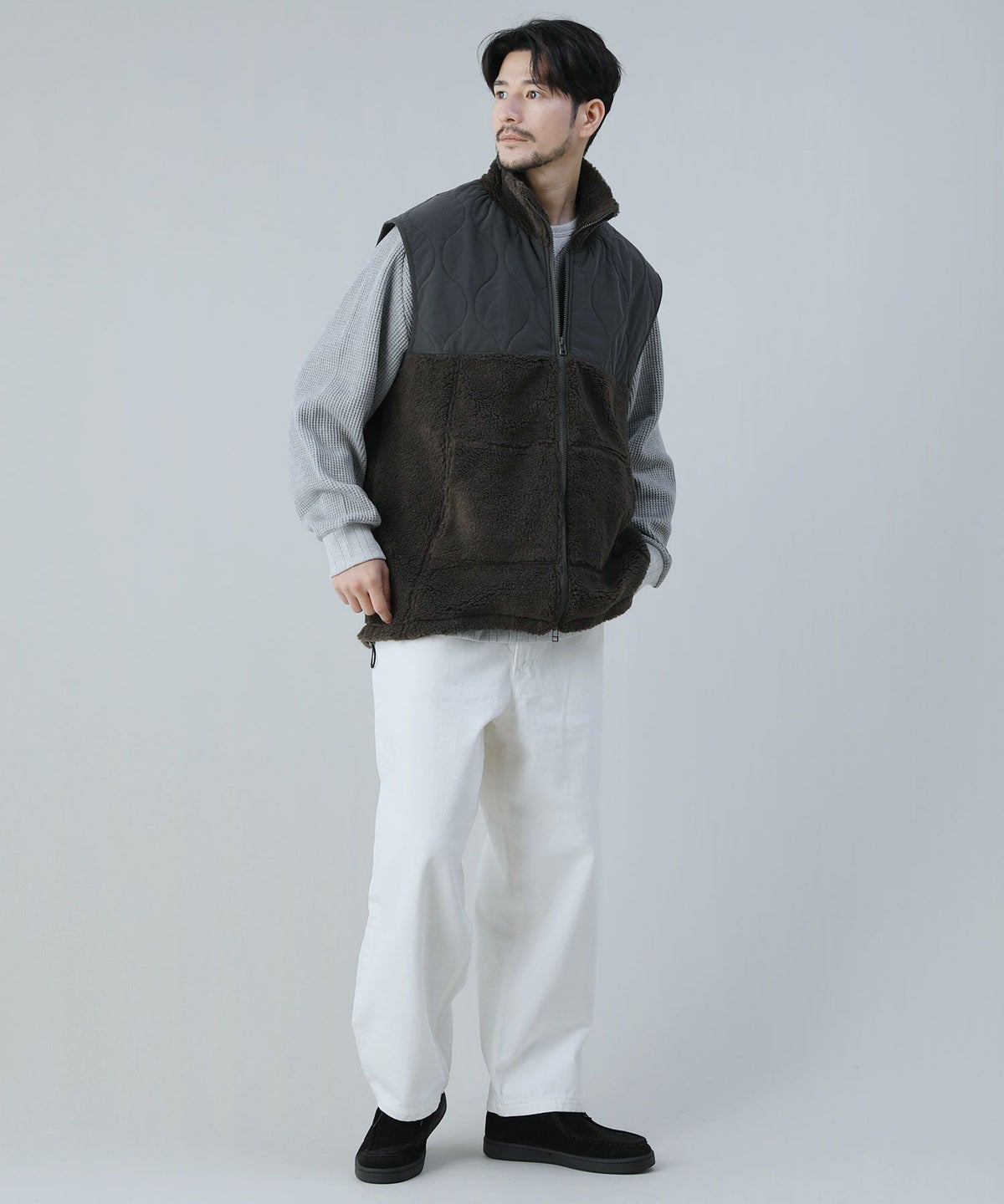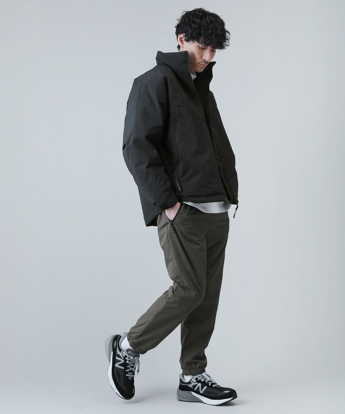 ダウンフェザー切り替え裏ボアシャギーレギュラージョガーパンツ