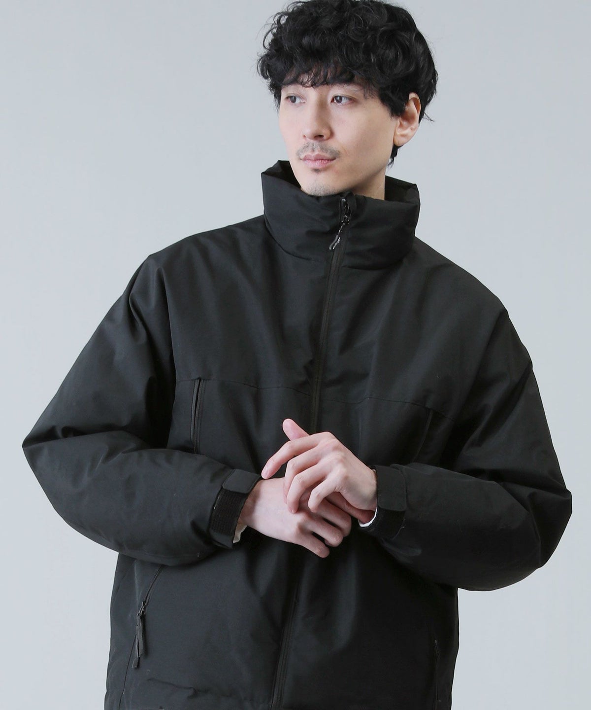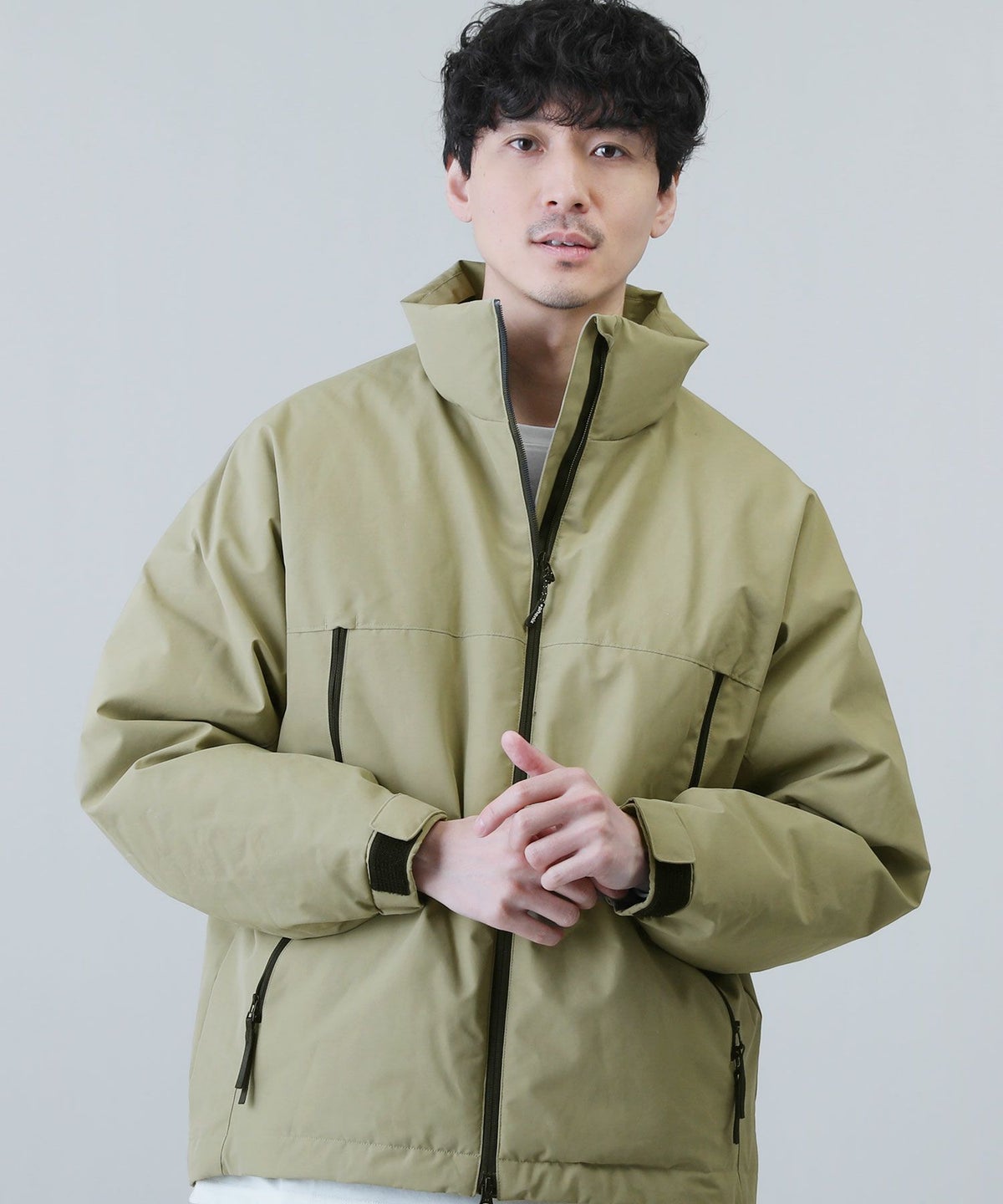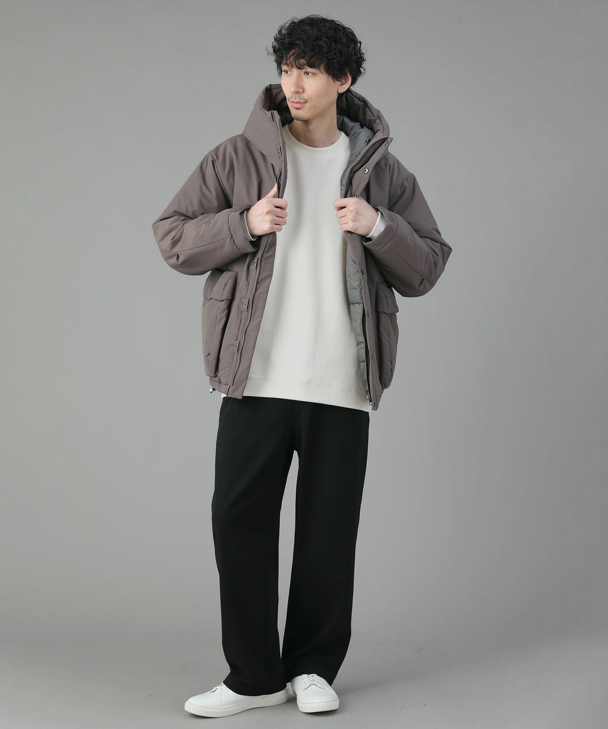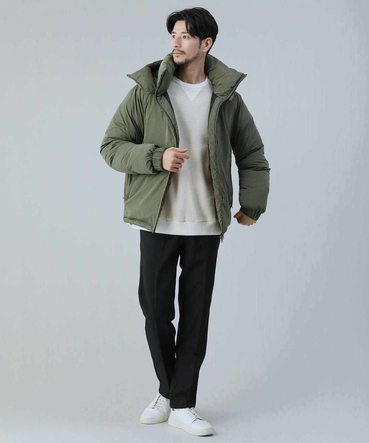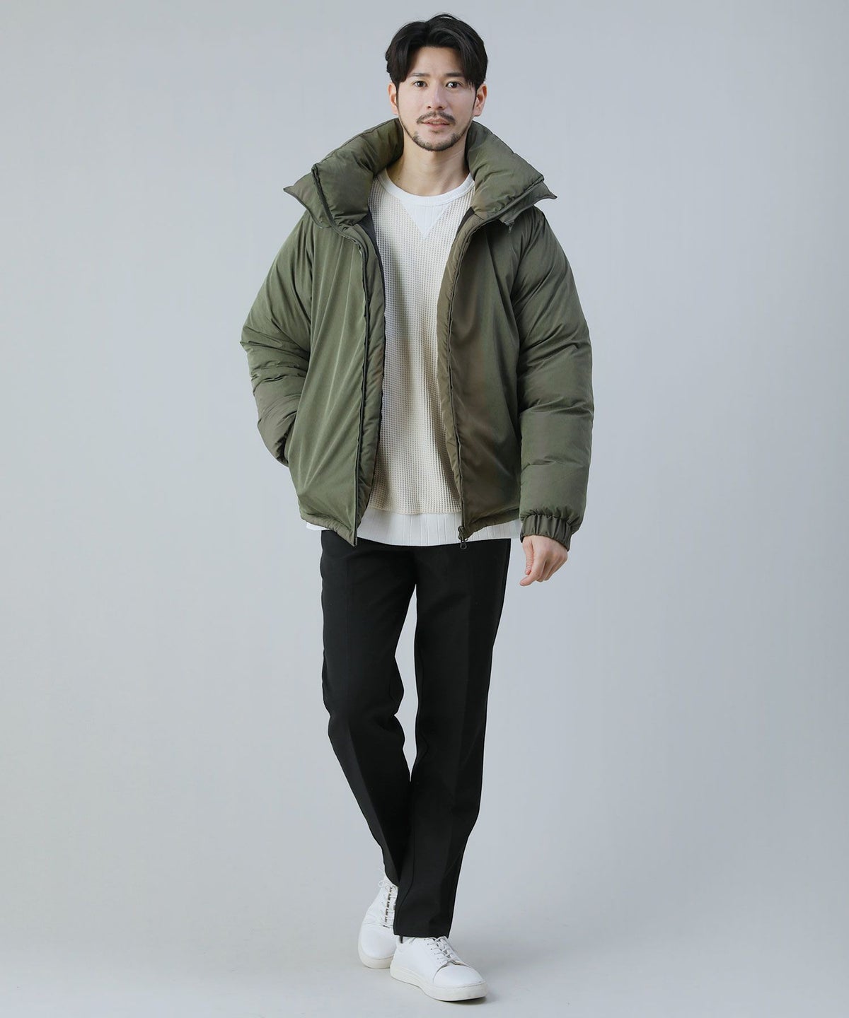 スタンドネックフードボリューム中綿ジャケット