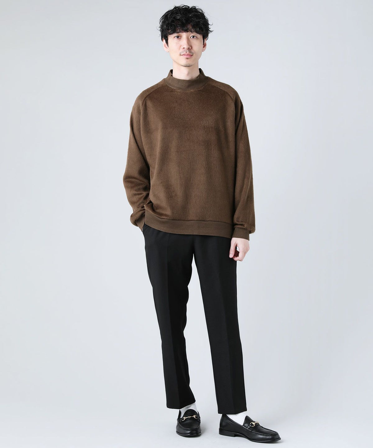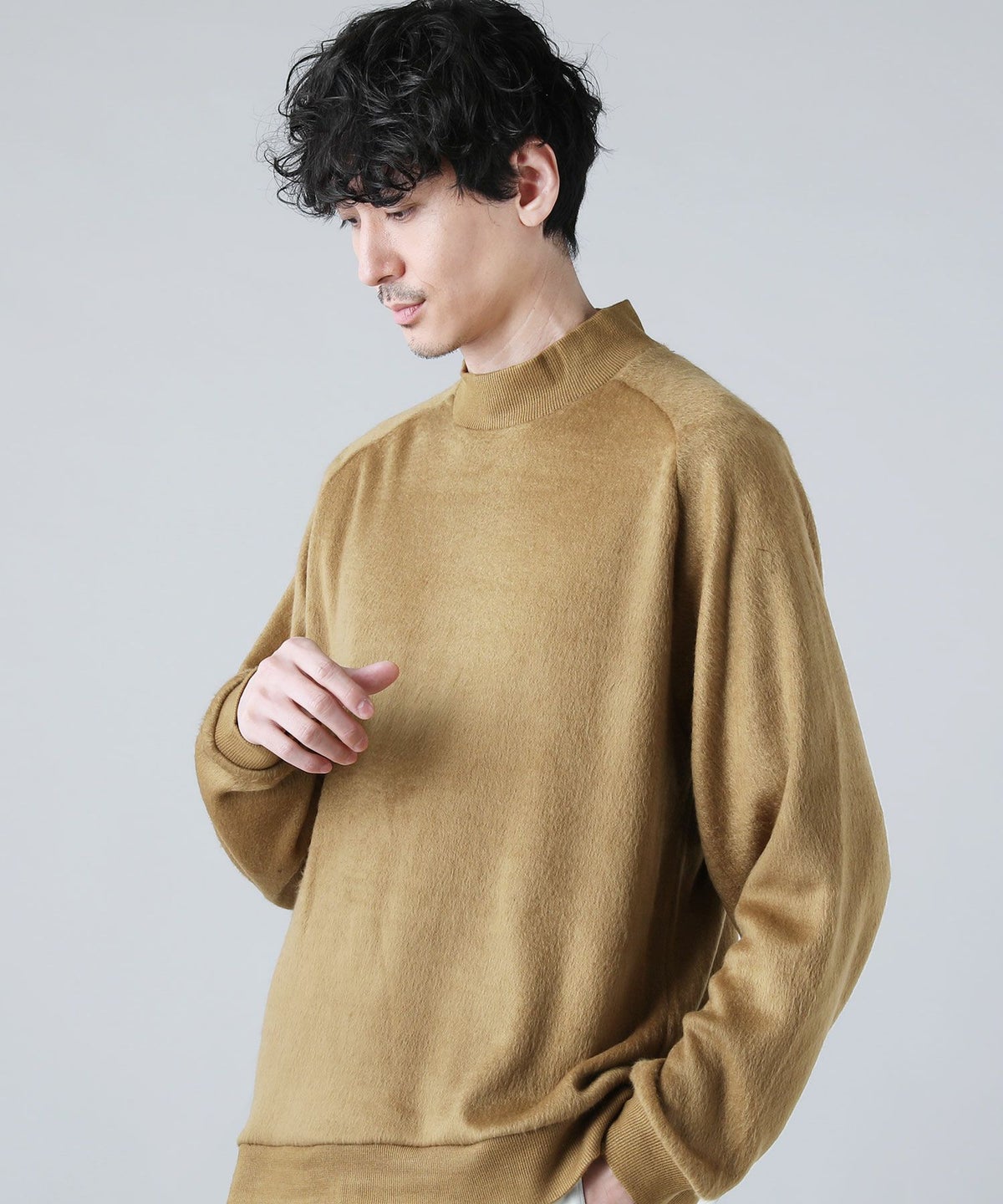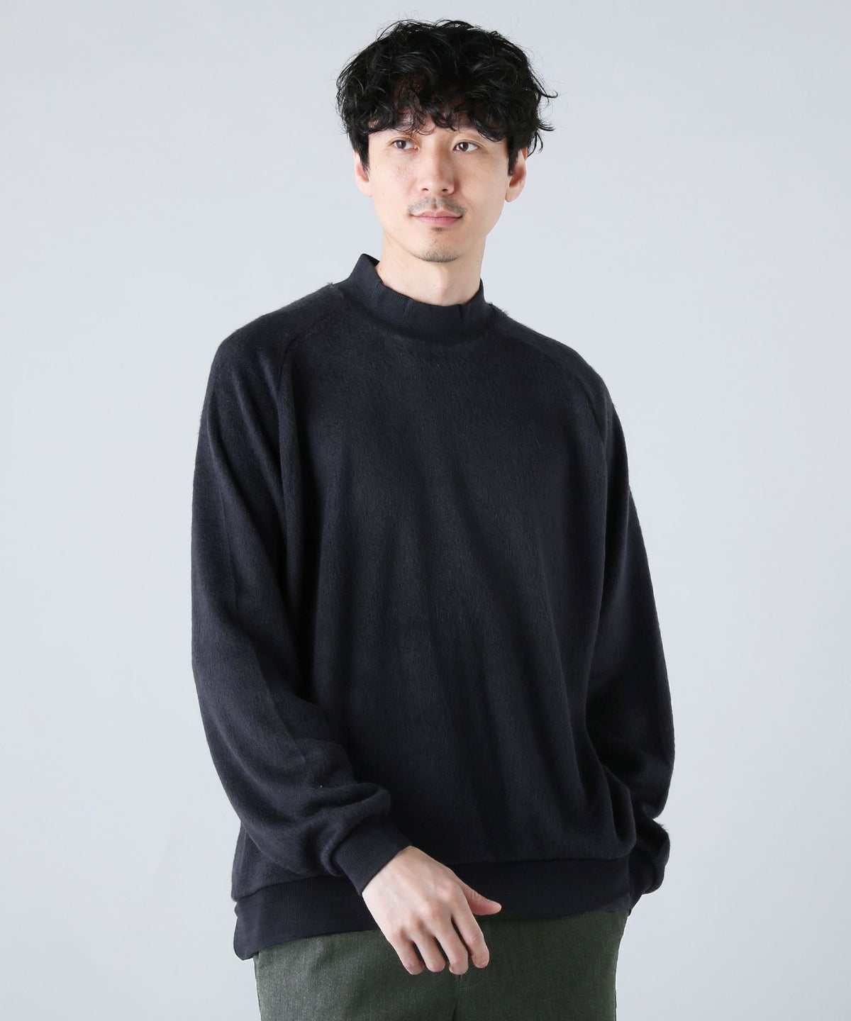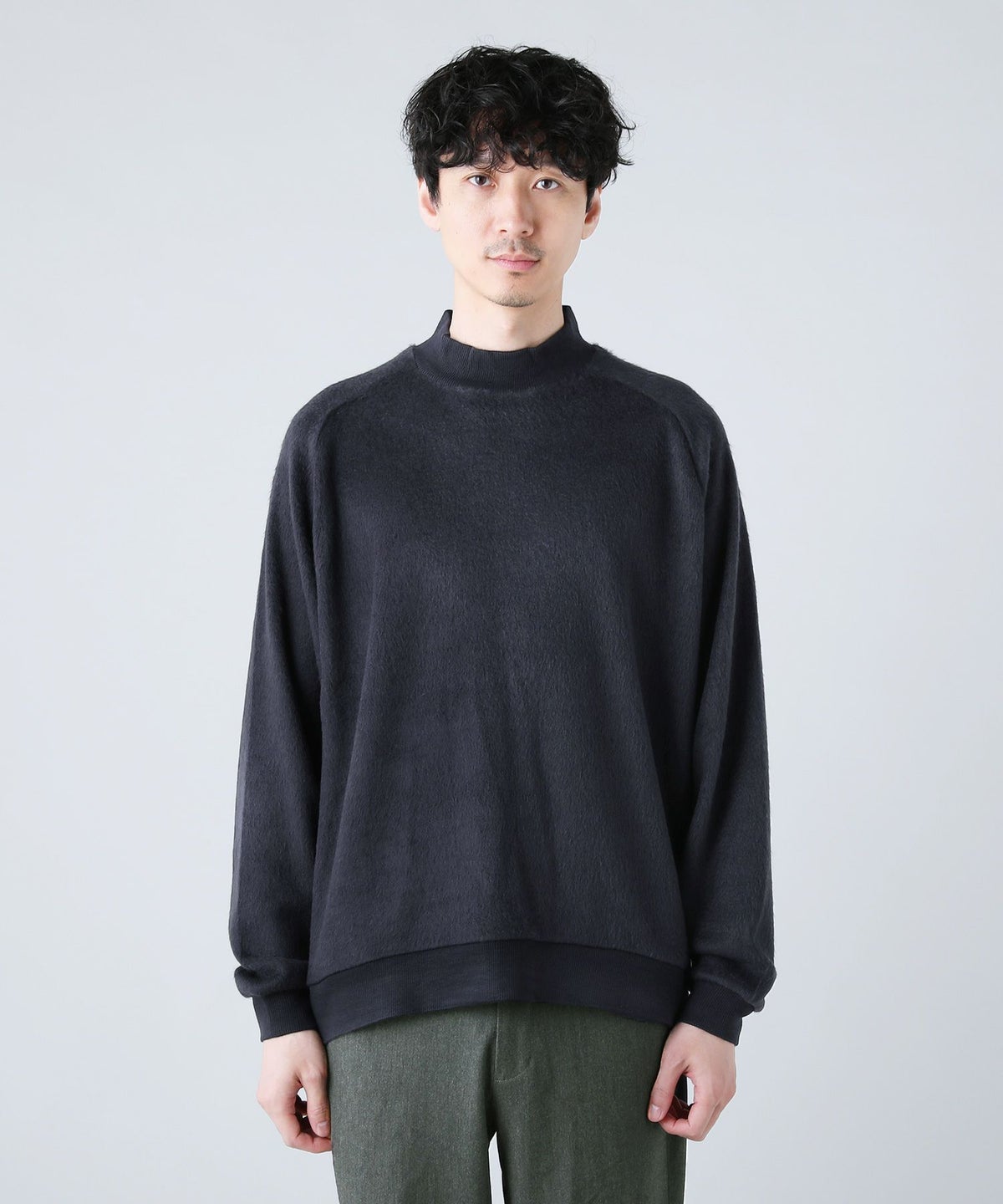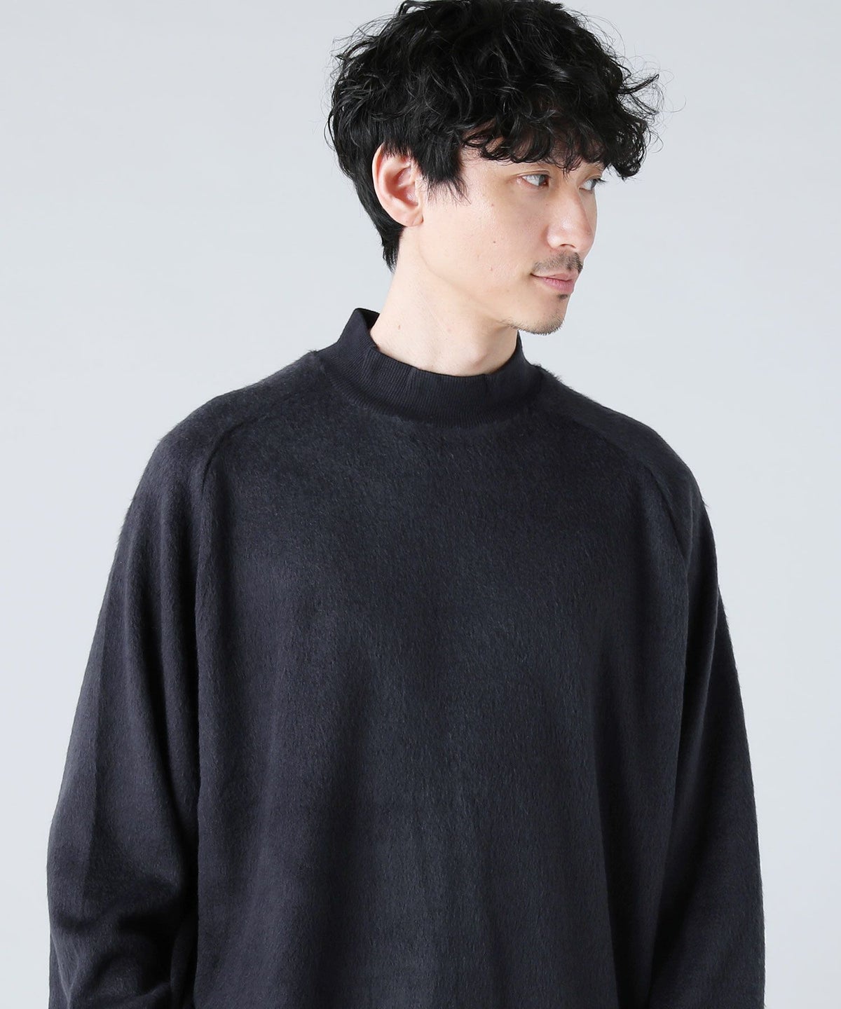 日本製モヘアライクウールシャギーバルーンモックネックニットソー