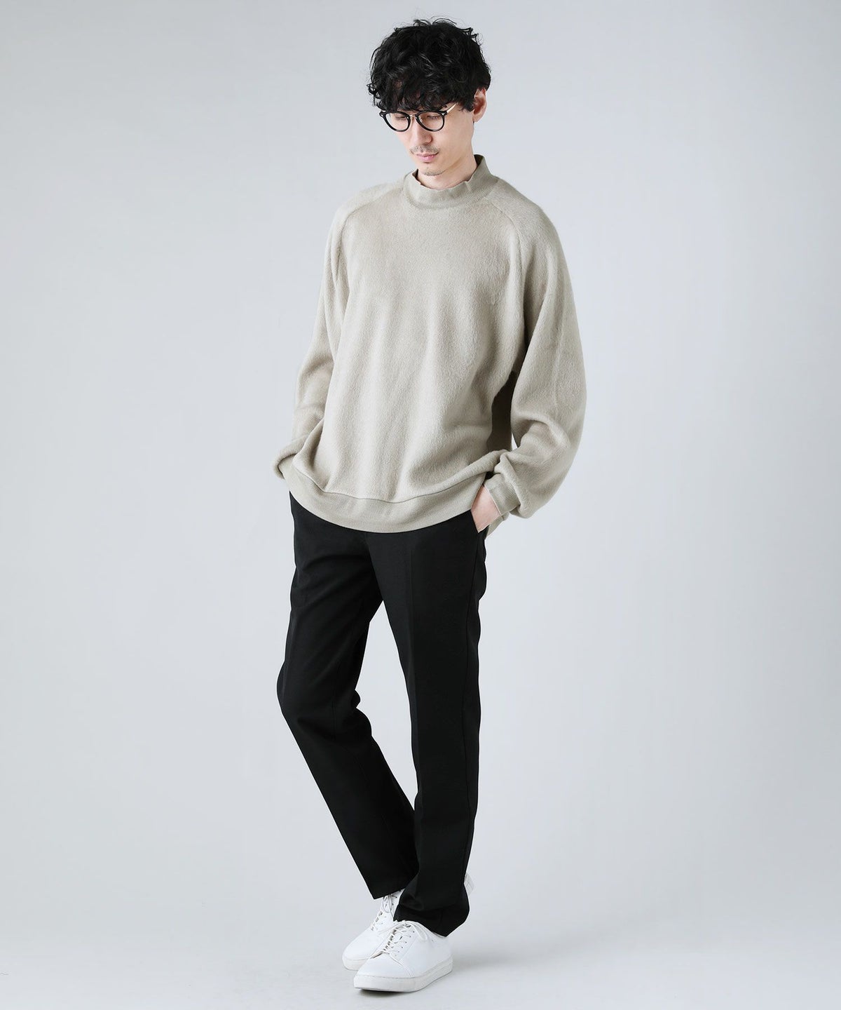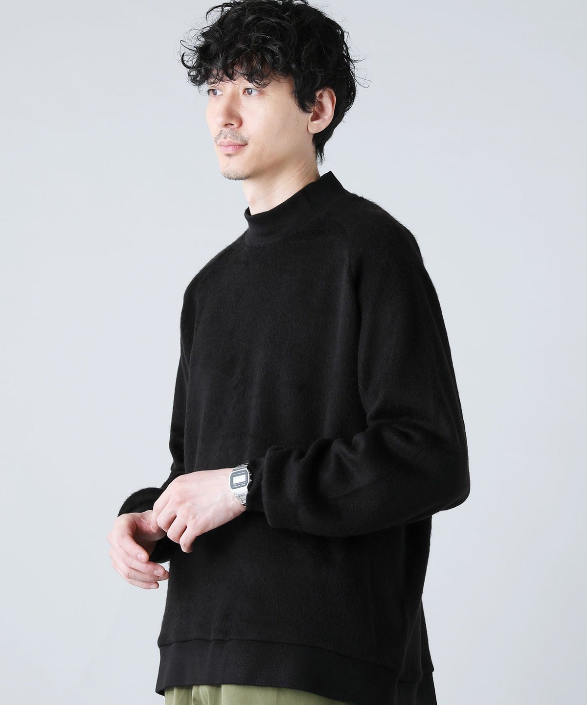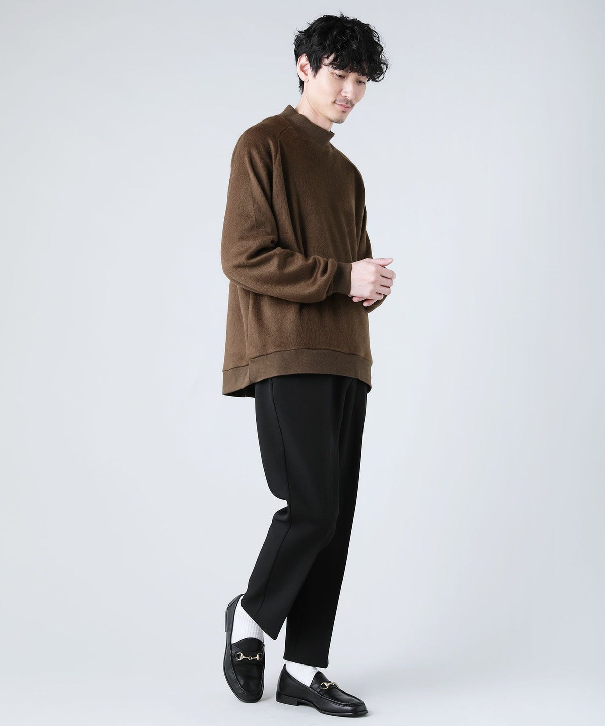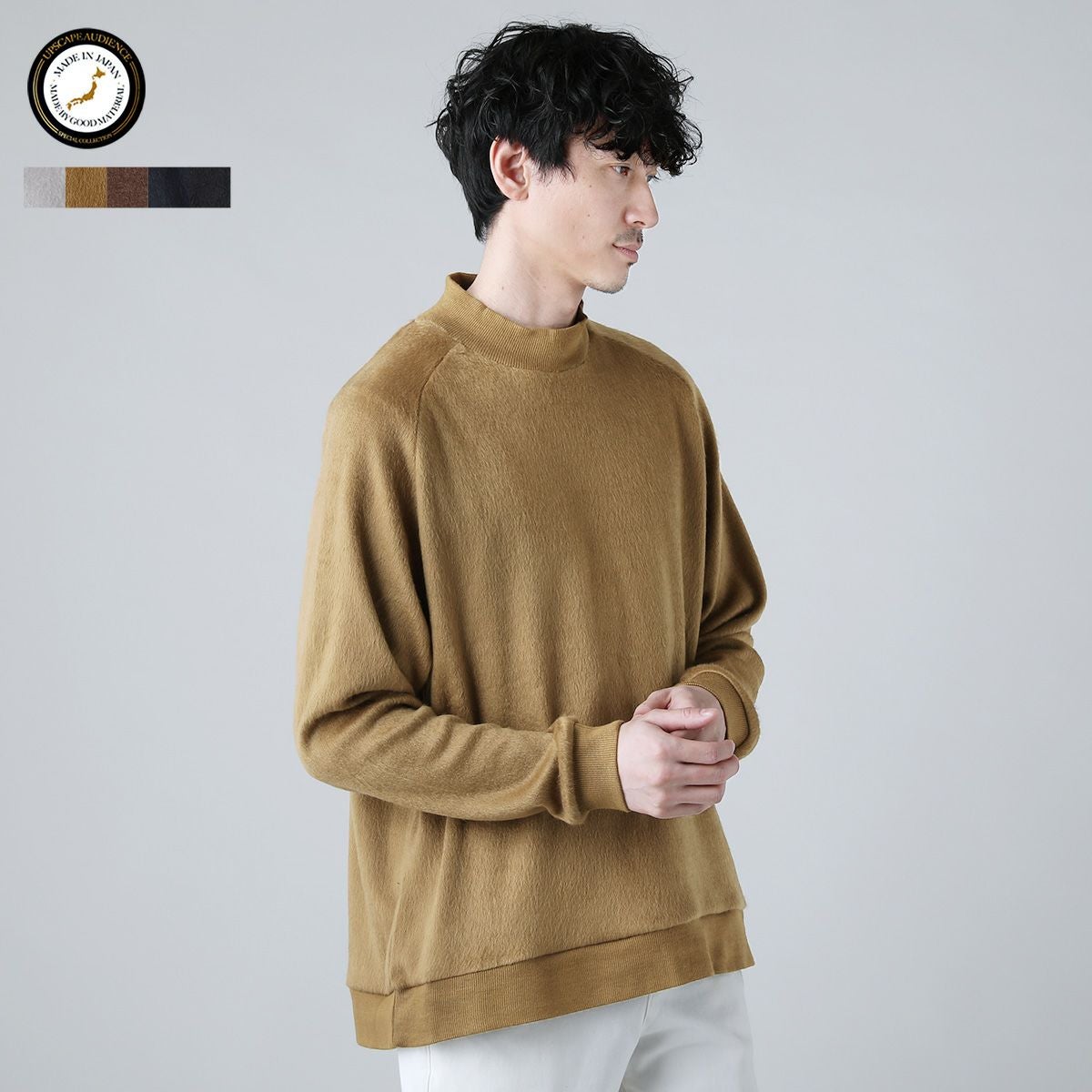 日本製モヘアライクウールシャギーバルーンモックネックニットソー