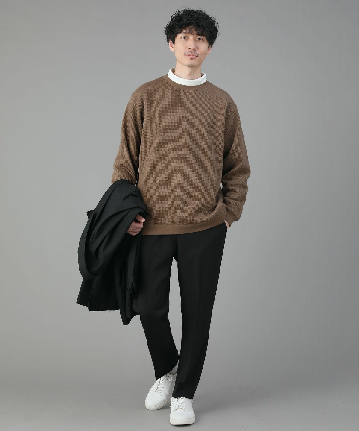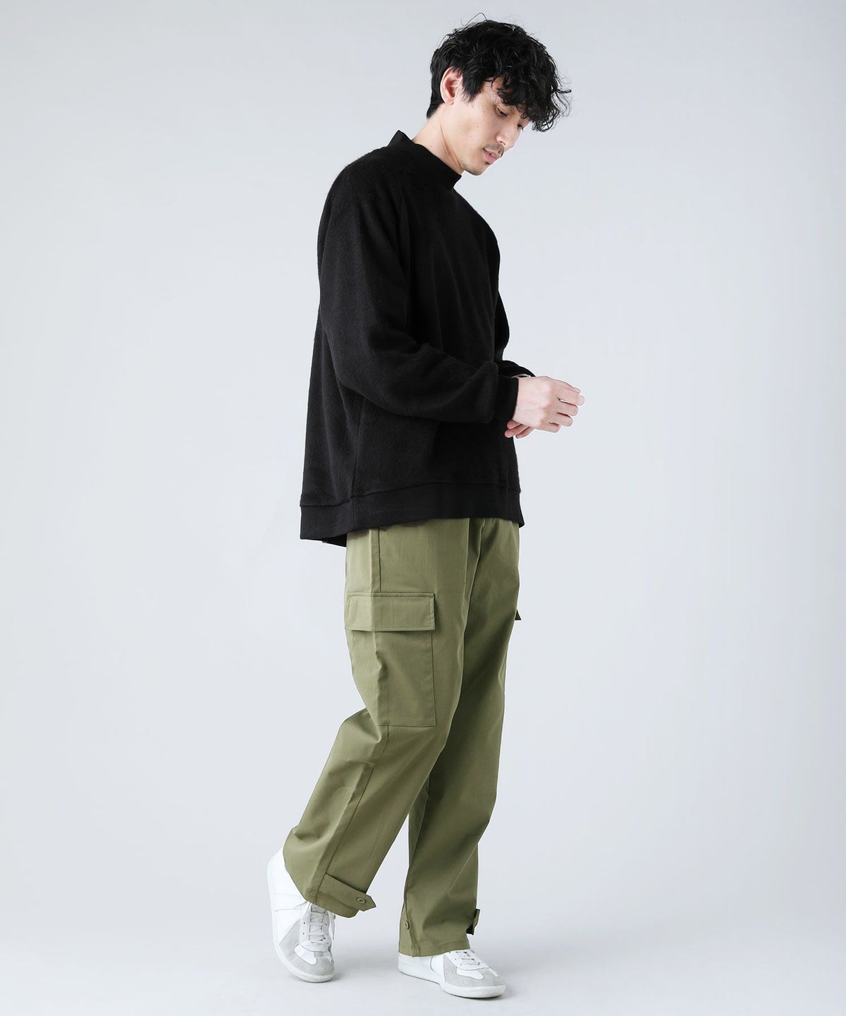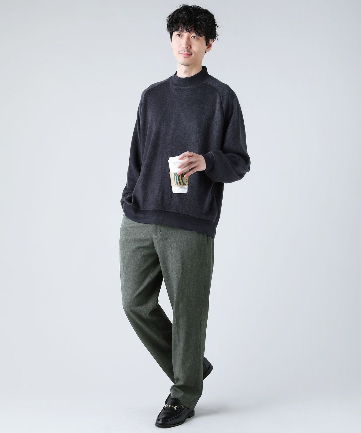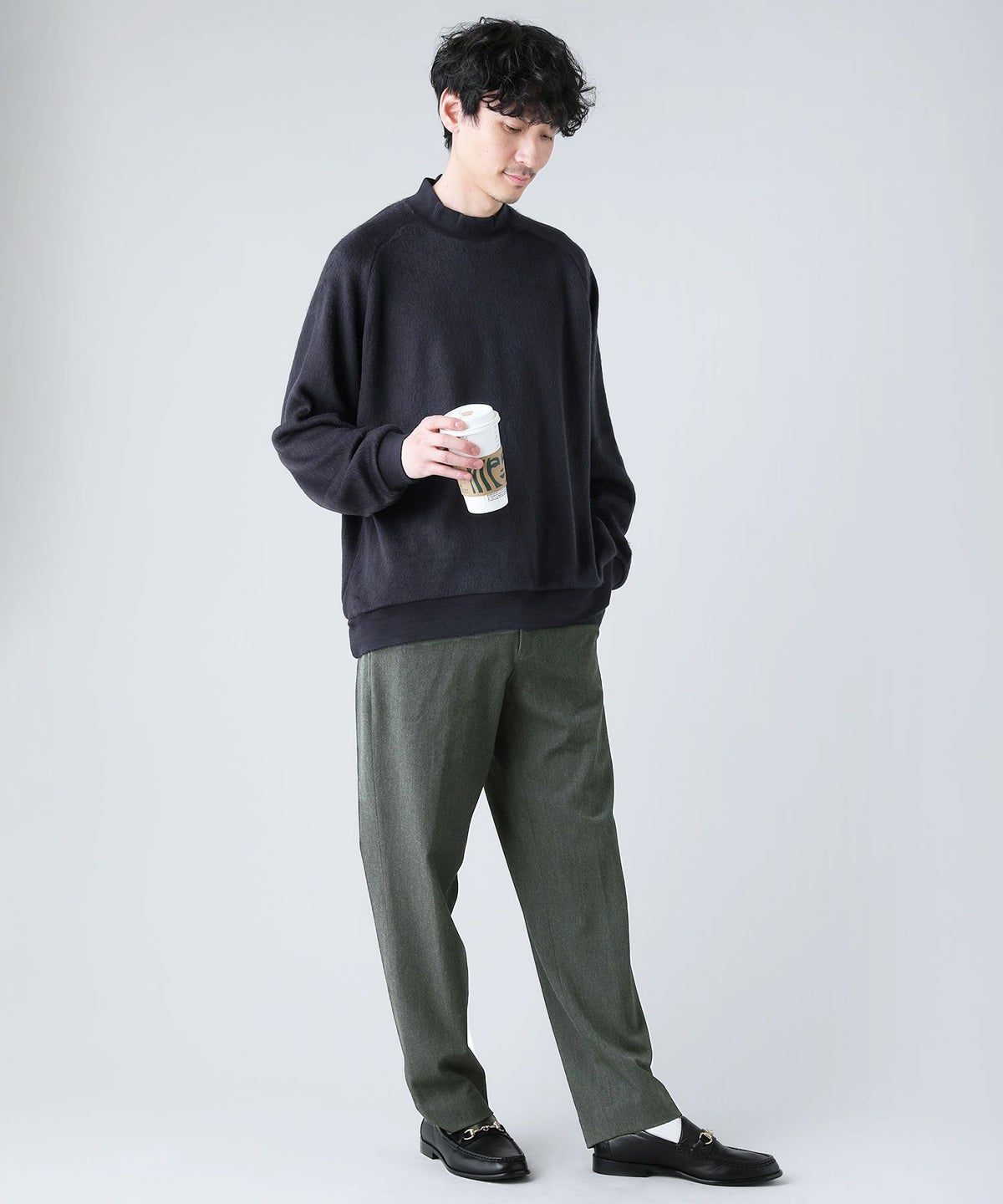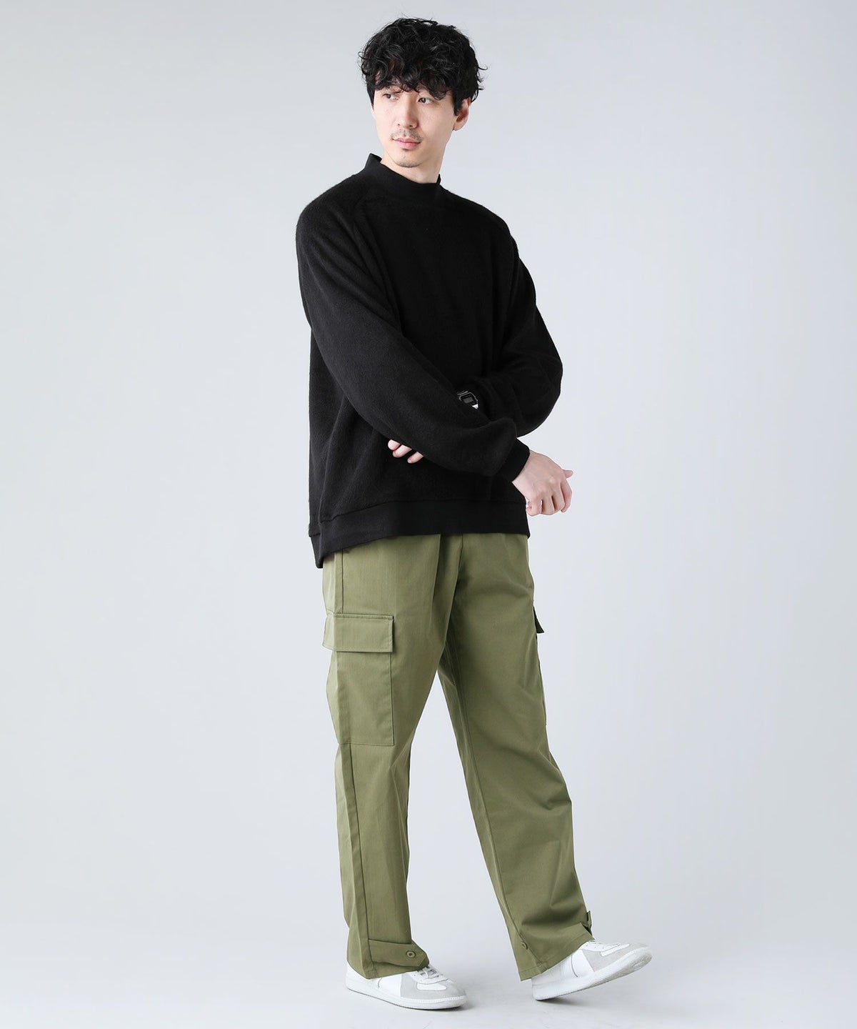 日本製モヘアライクウールシャギーバルーンモックネックニットソー