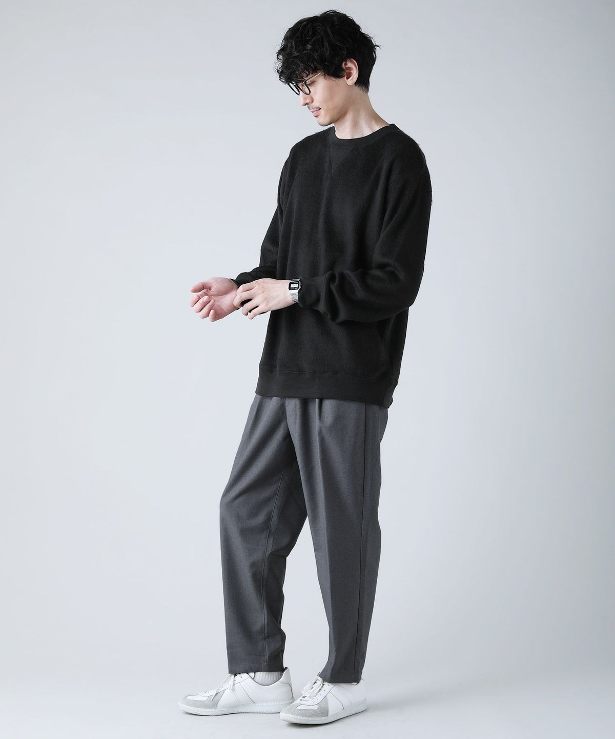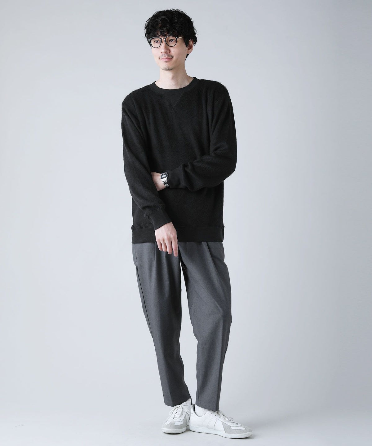 日本製モヘアライクウールシャギーガゼットクルーネックニットソー