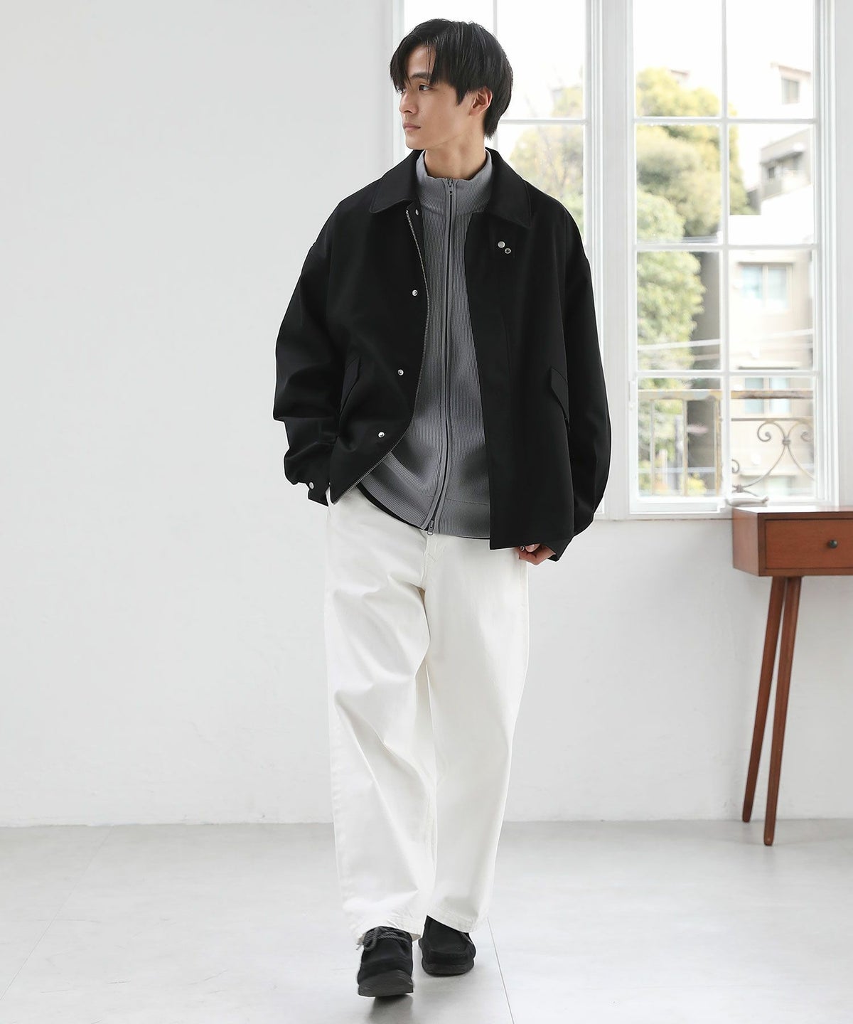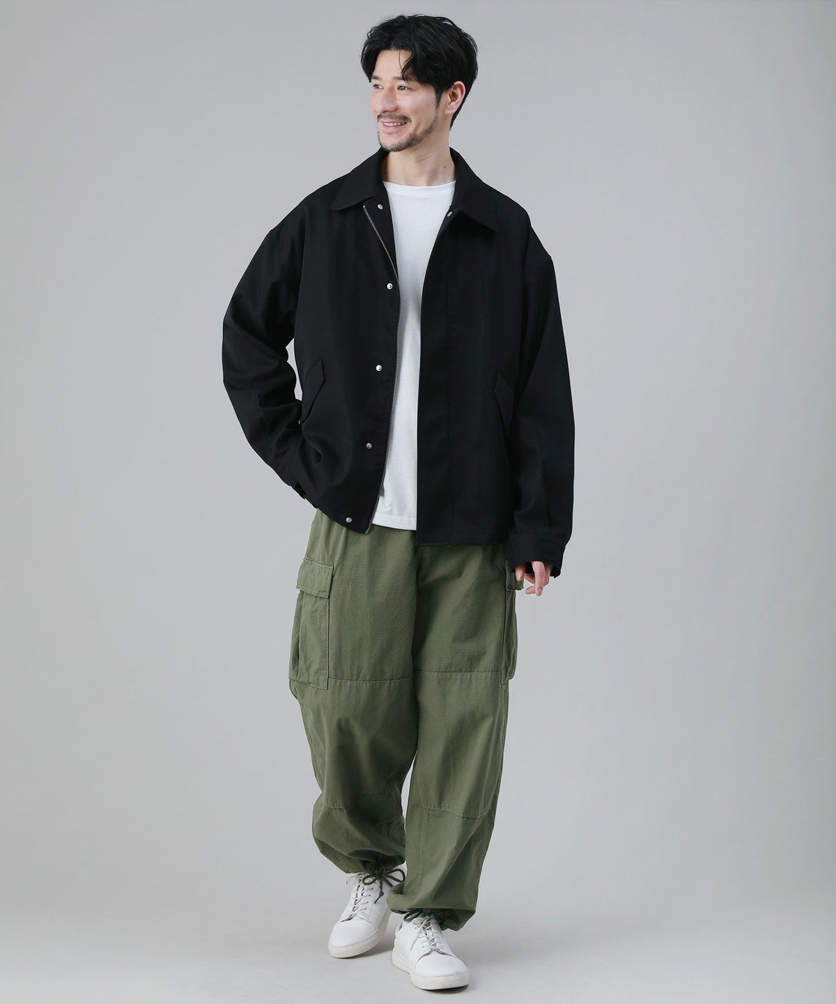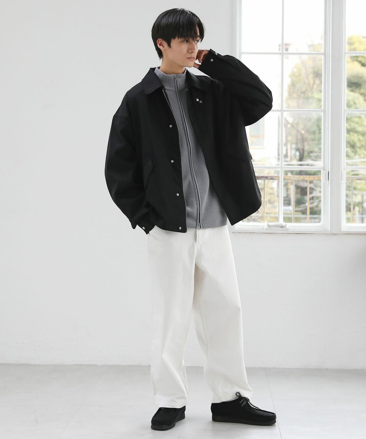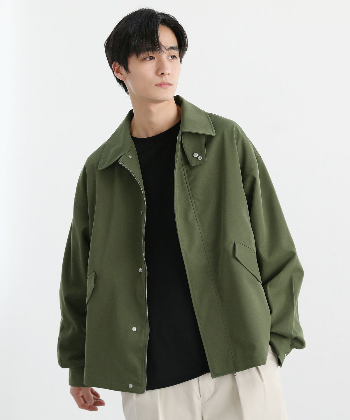 襟コーデュロイ切替ビッグシルエット2wayブルゾン