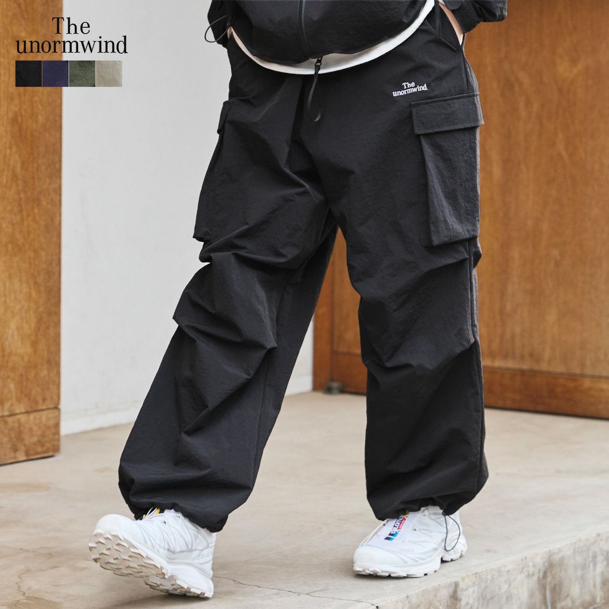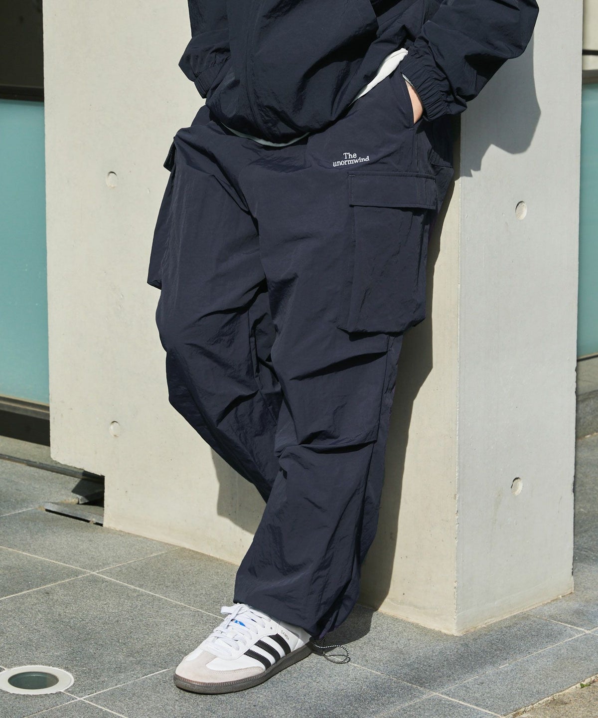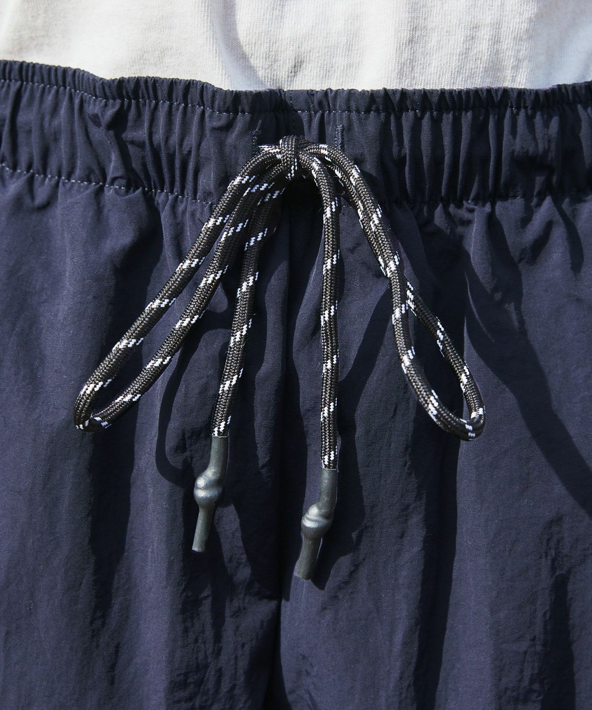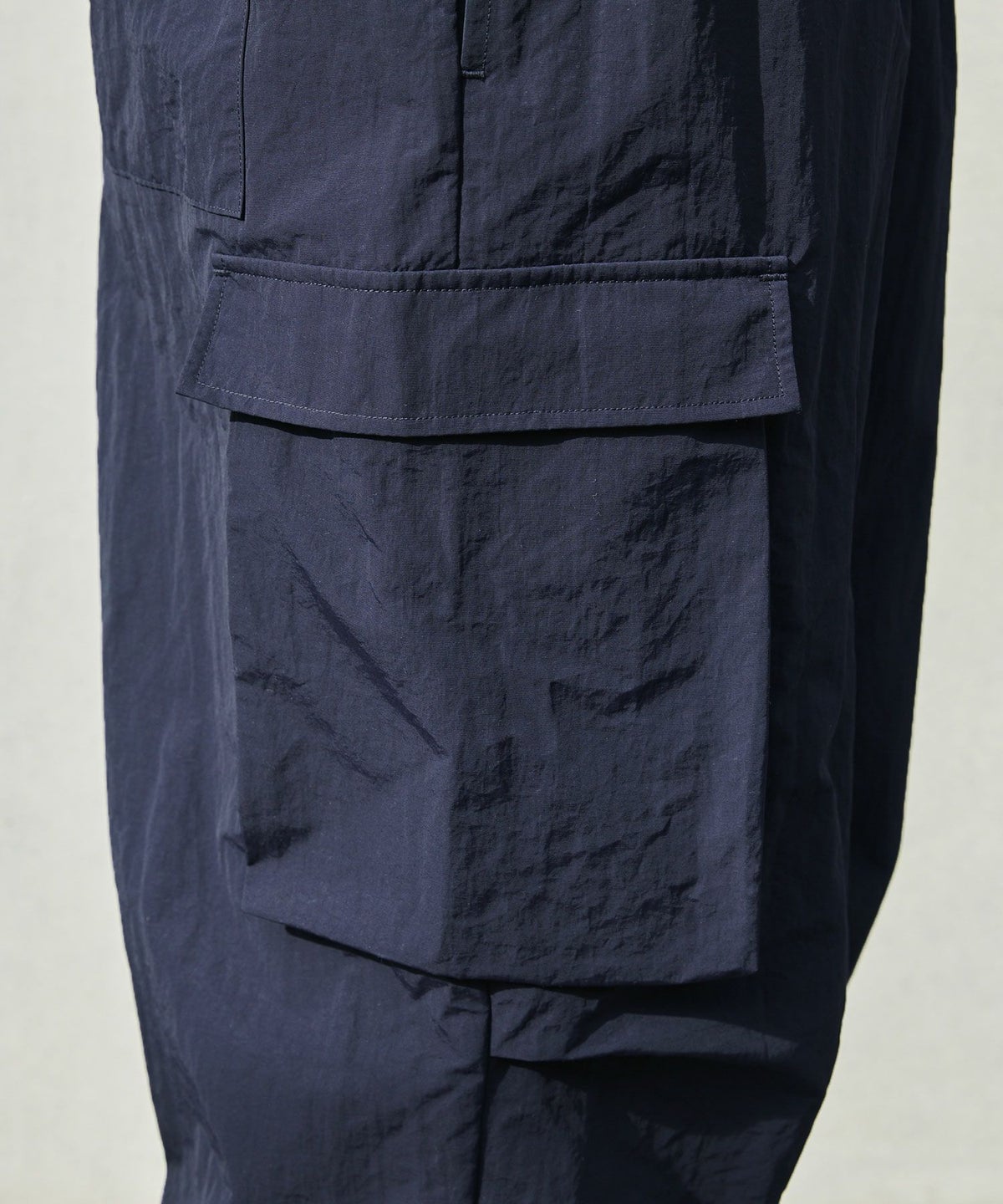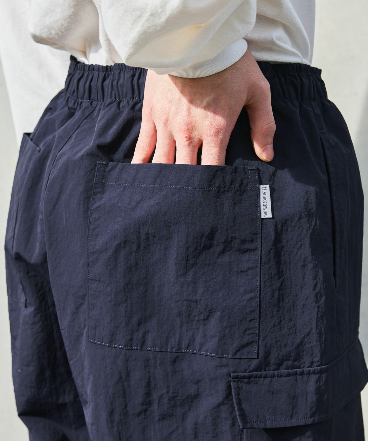 ロゴ刺繍ナイロンワイド裾ドローコードカーゴパンツ