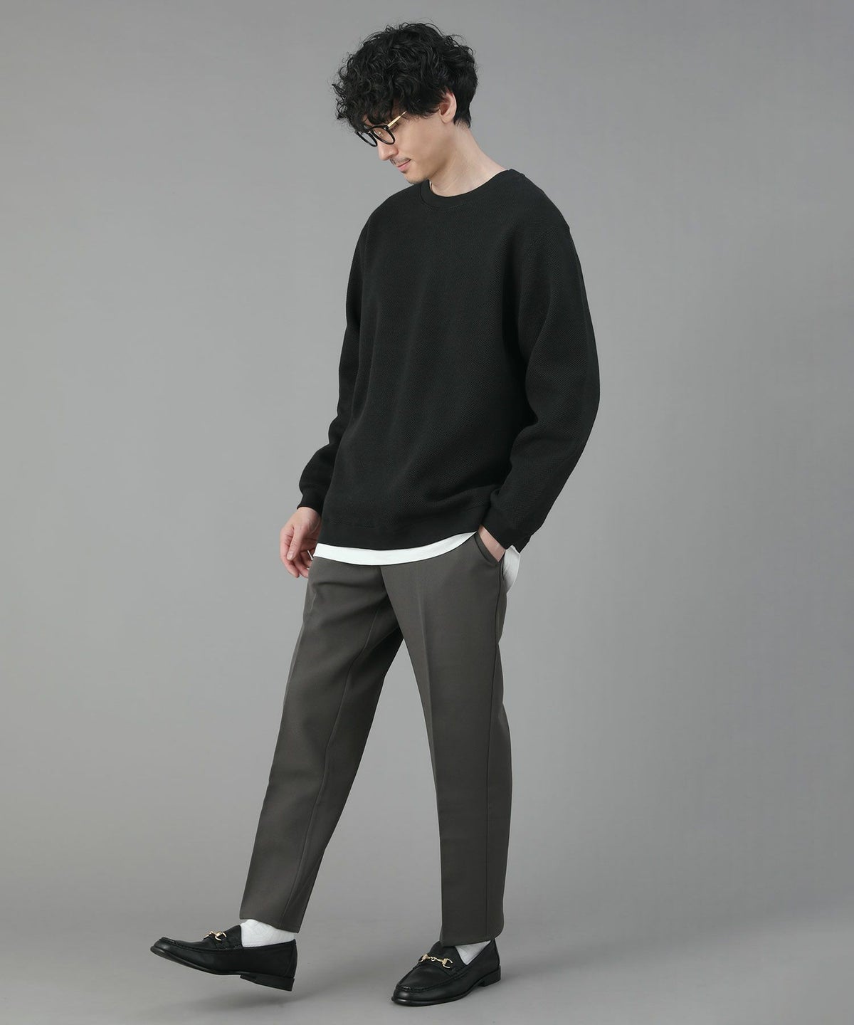 オーバーダイクルーネックニット