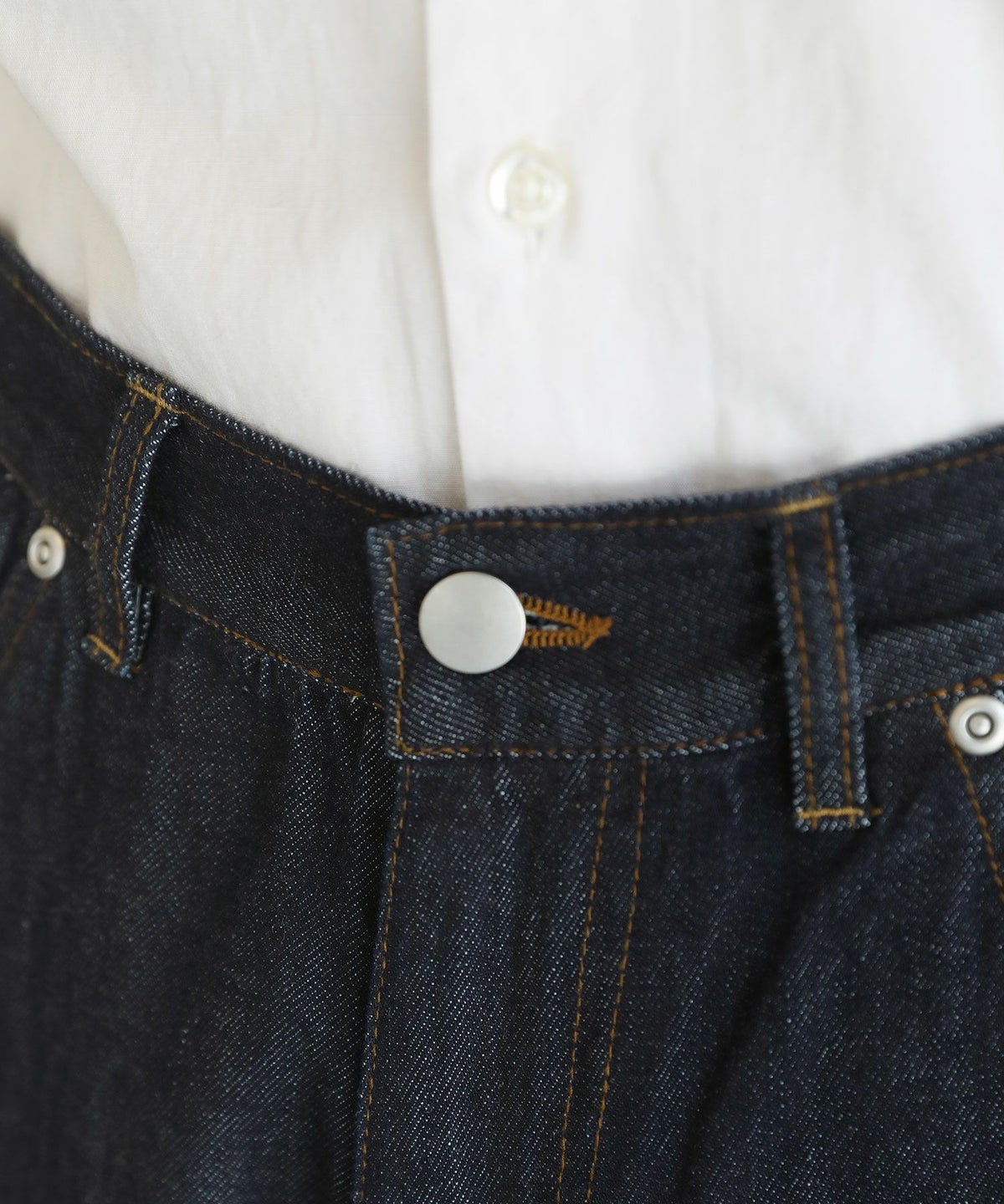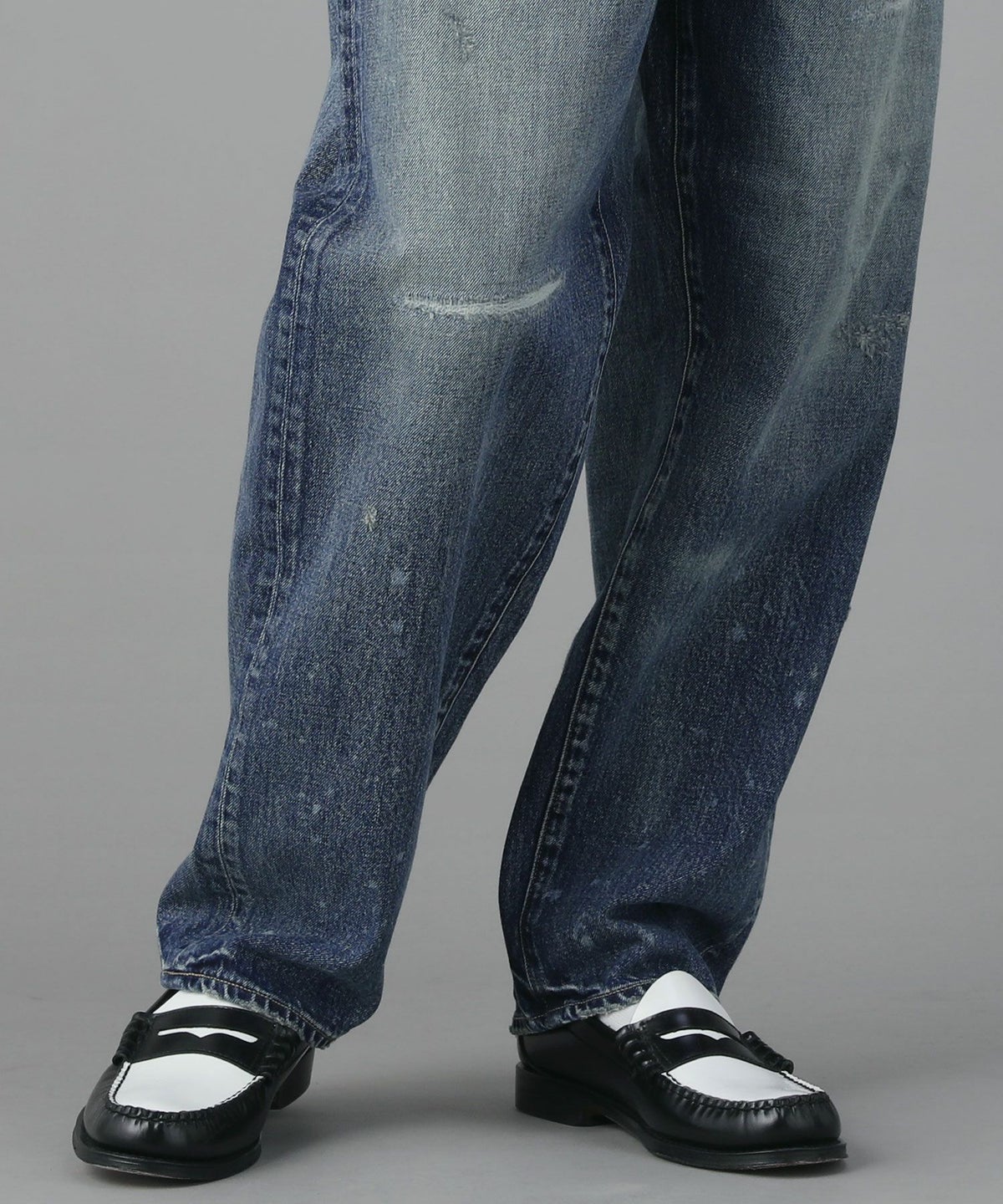 インディゴ/ホワイト 10.5ozテーパードデニムパンツ