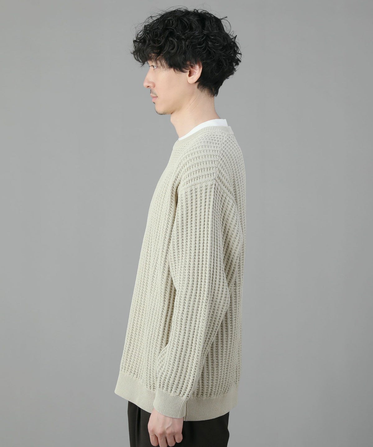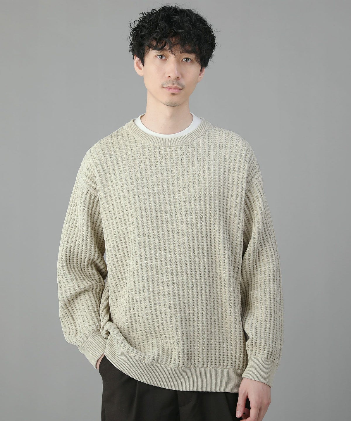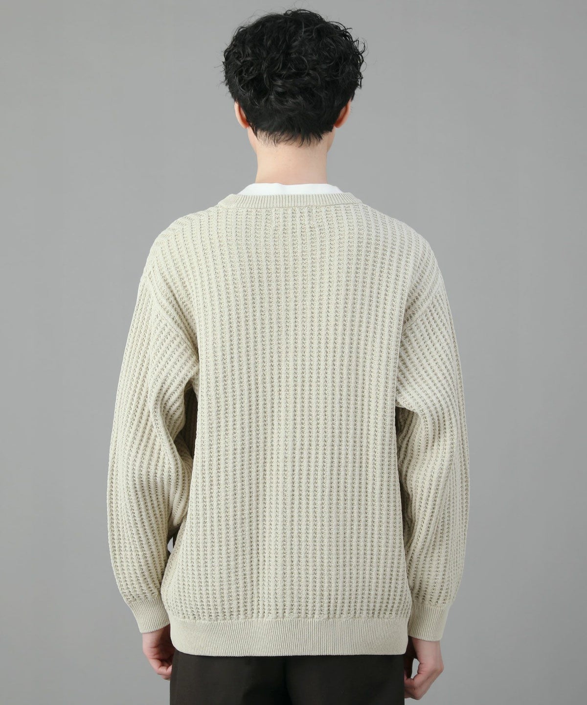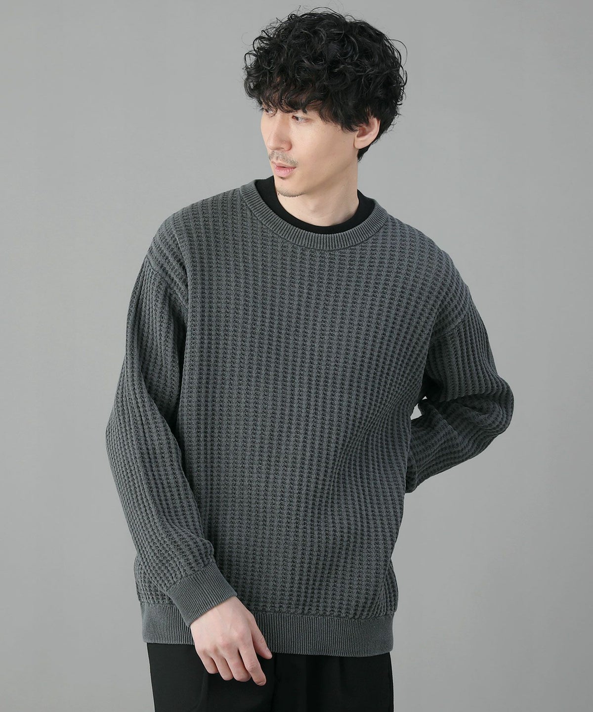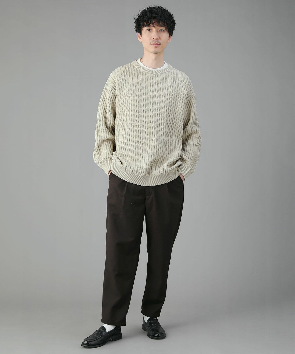 日本製ビッグワッフルサドルショルダーガゼットクルーネックXLニットソー