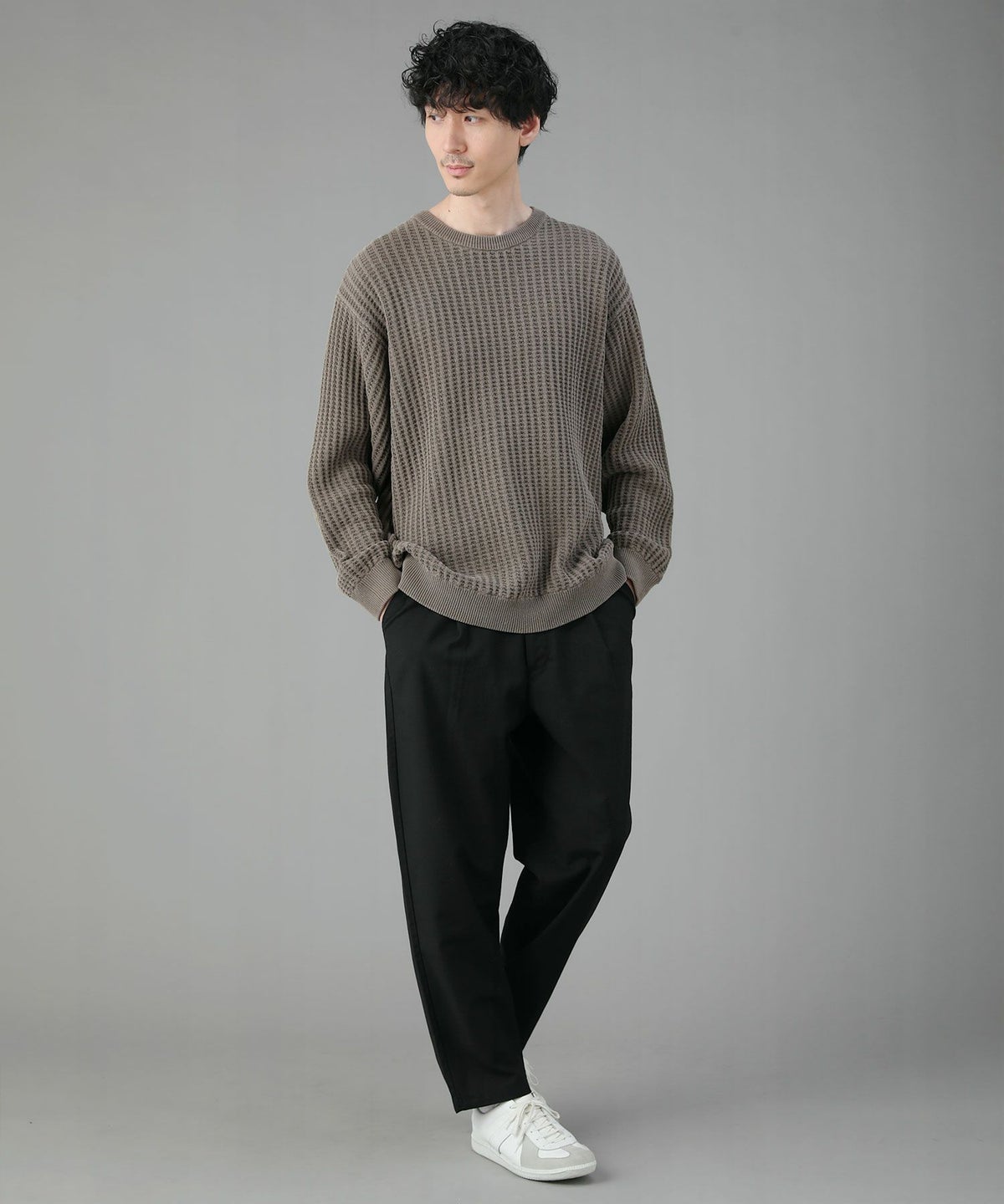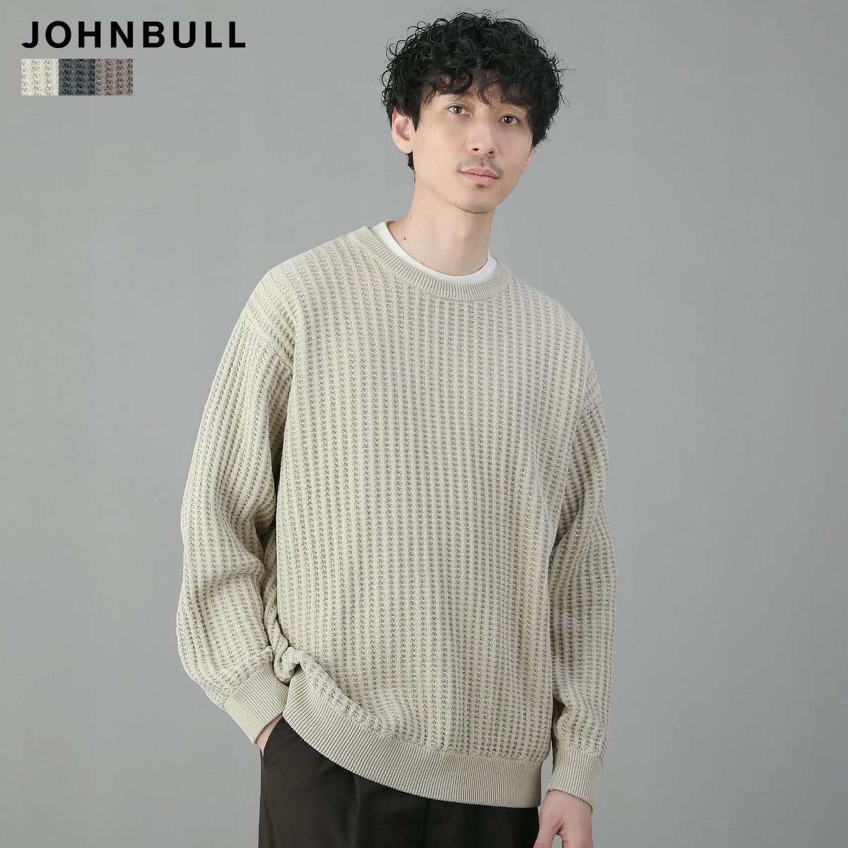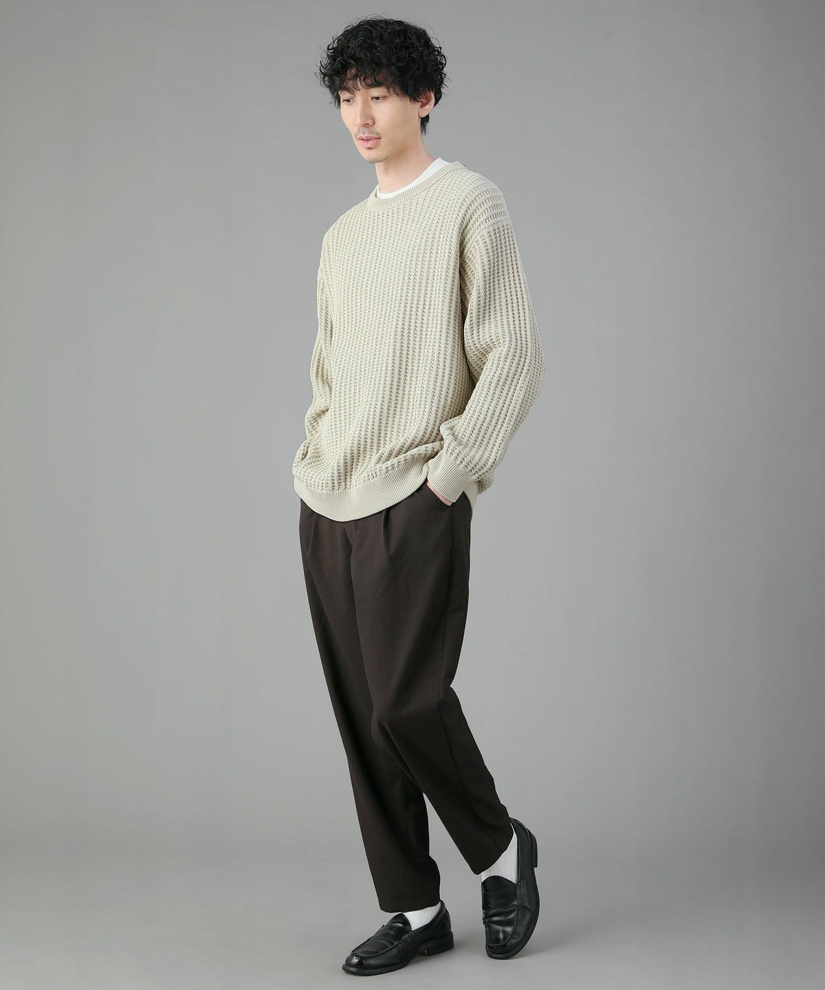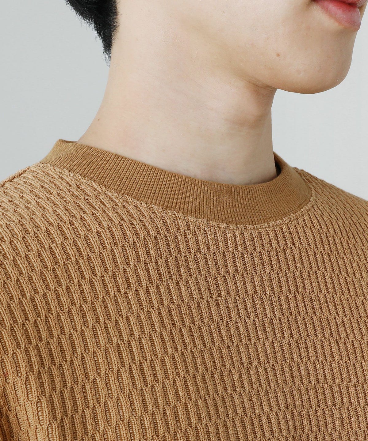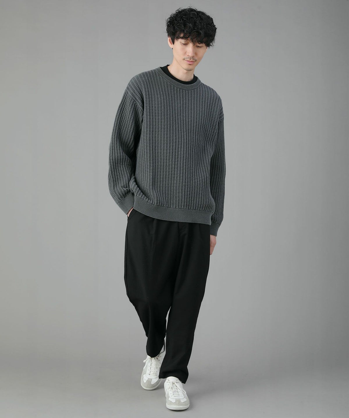 日本製ビッグワッフルサドルショルダーガゼットクルーネックXLニットソー