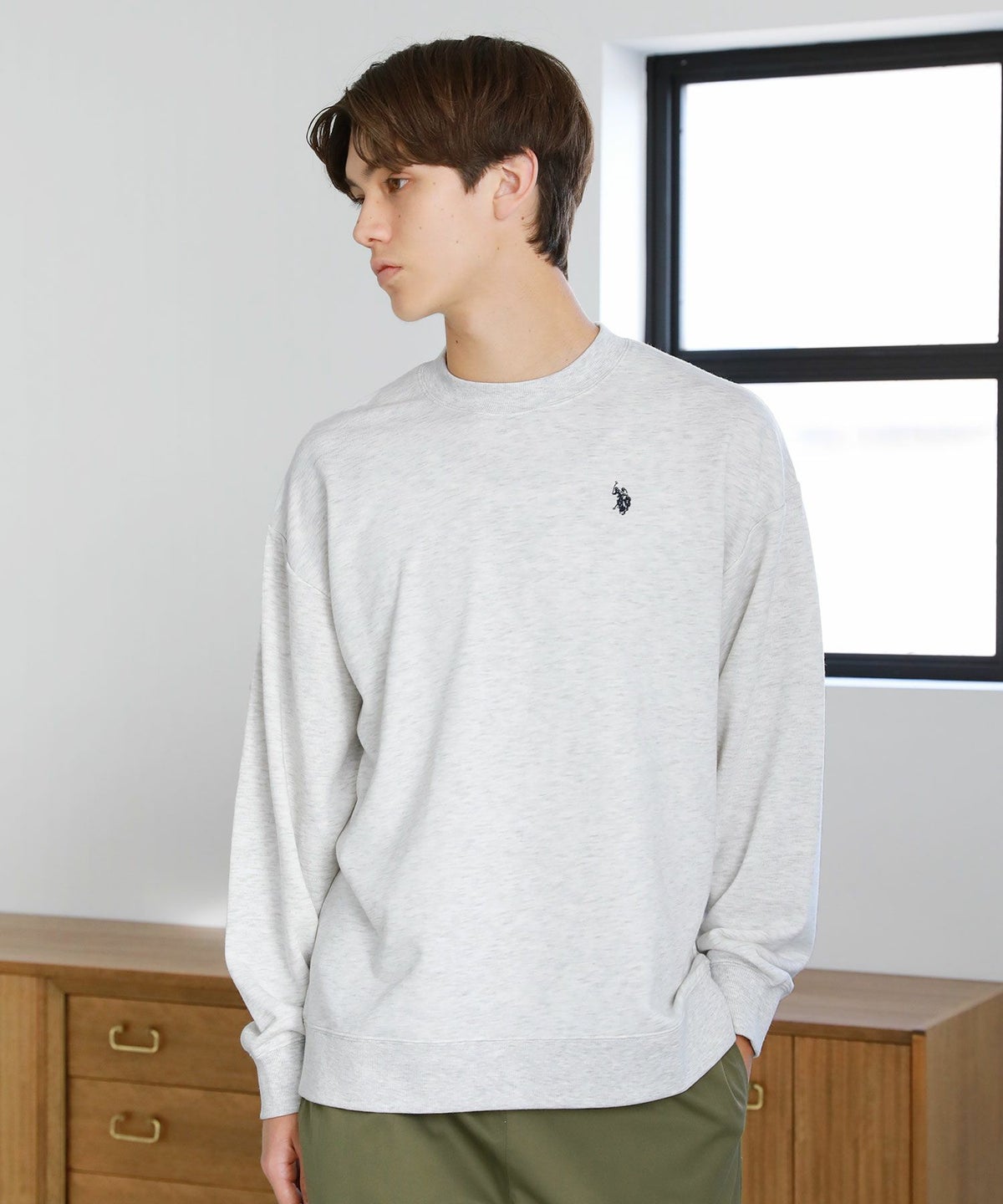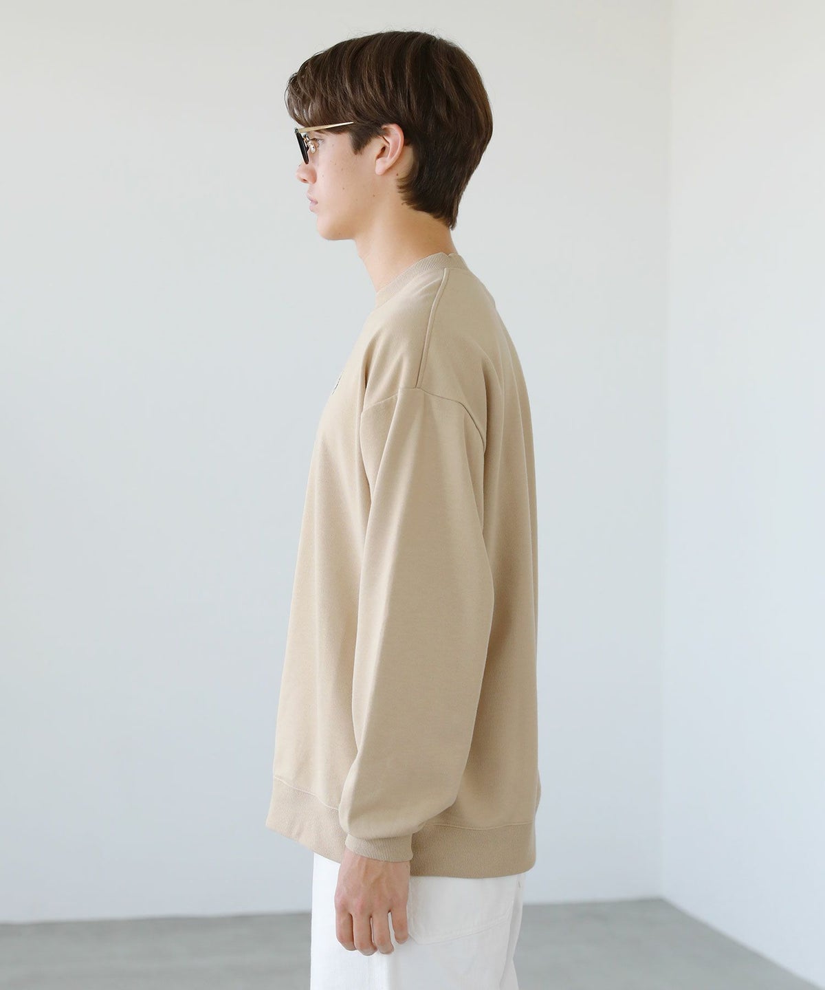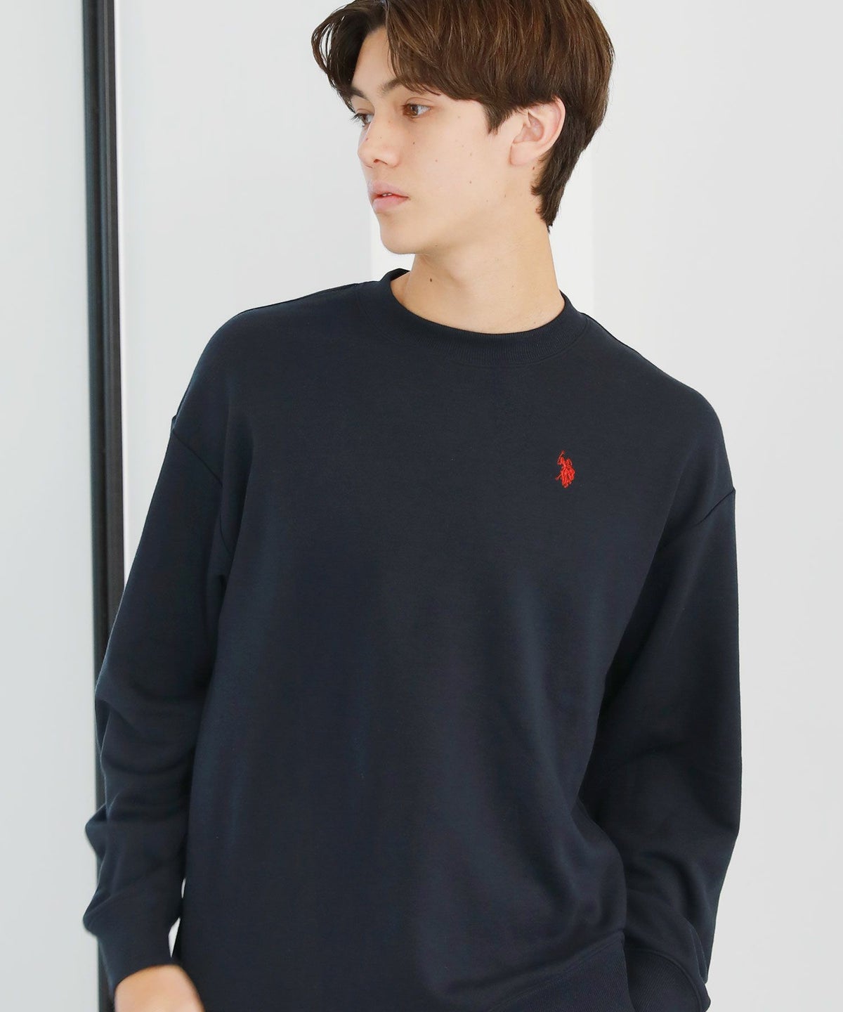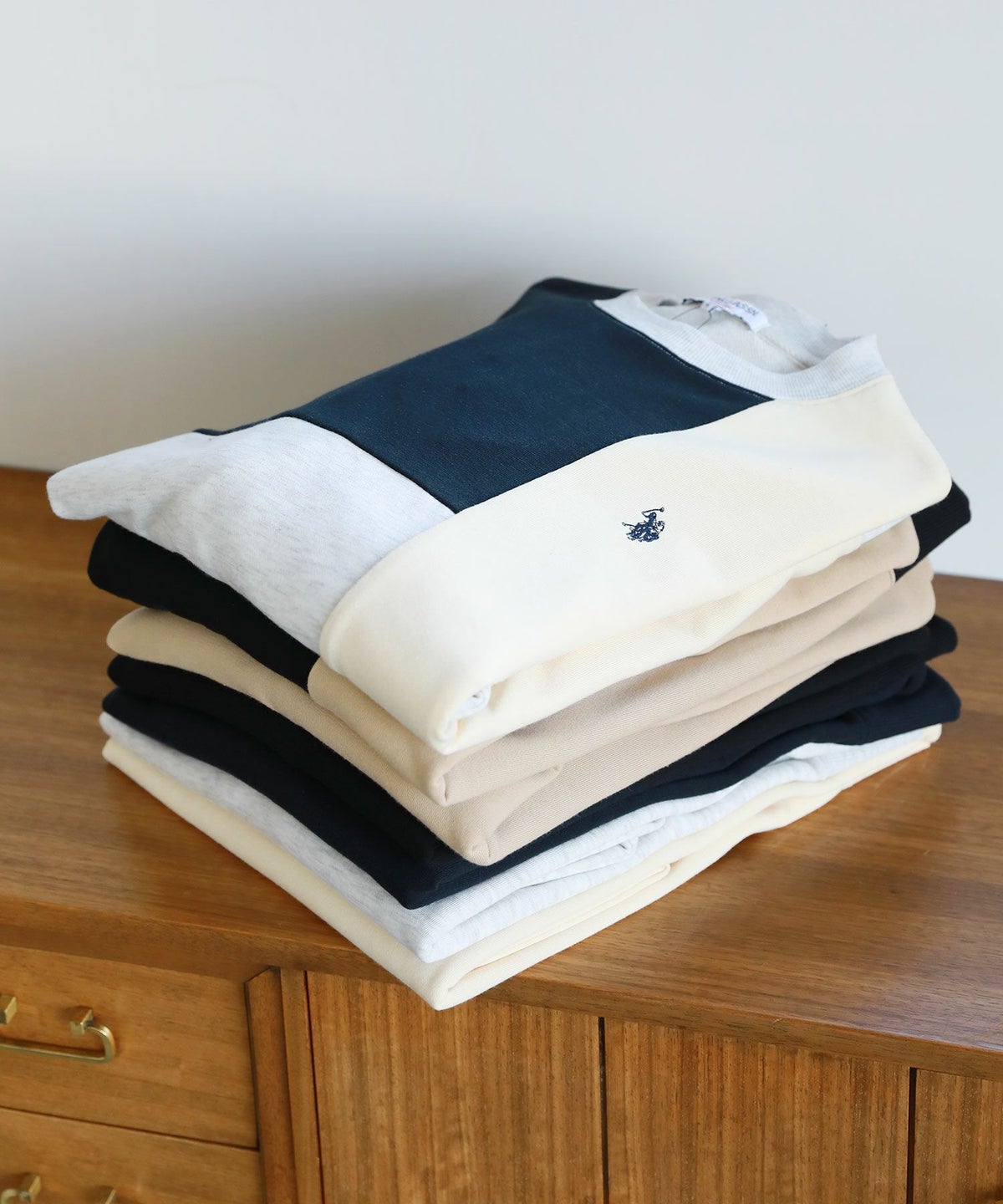 裏毛ワンポイントロゴクルーネックスウェット配色