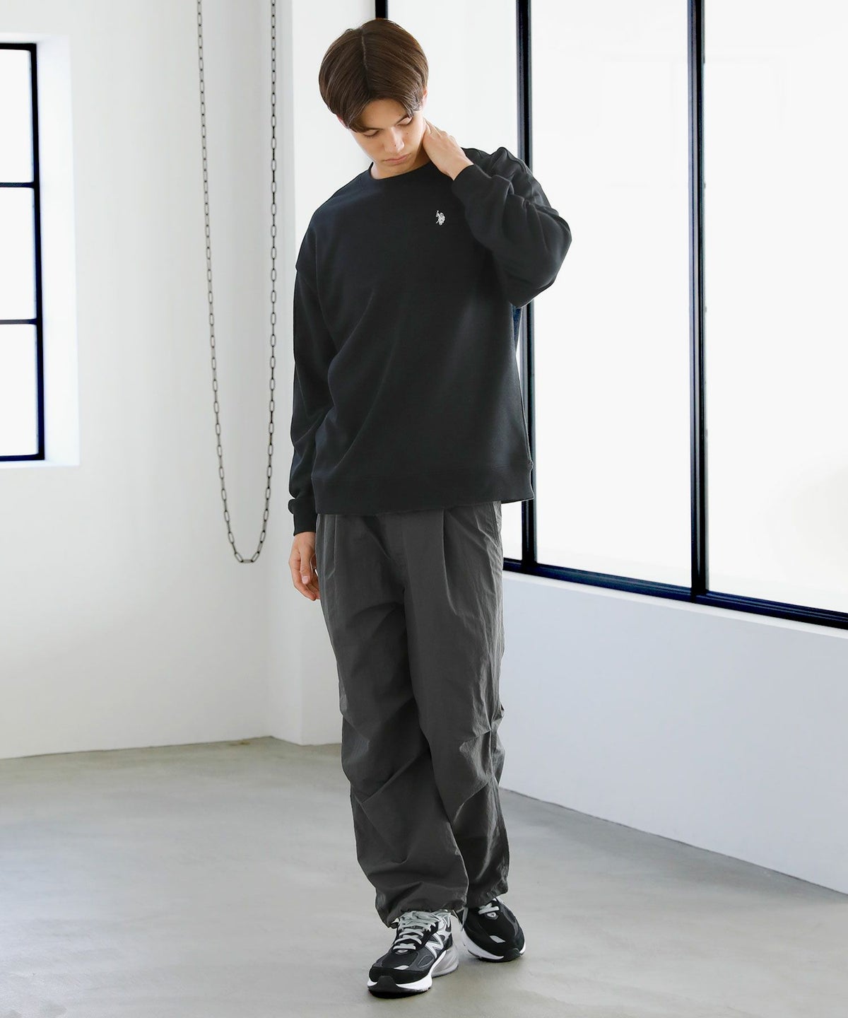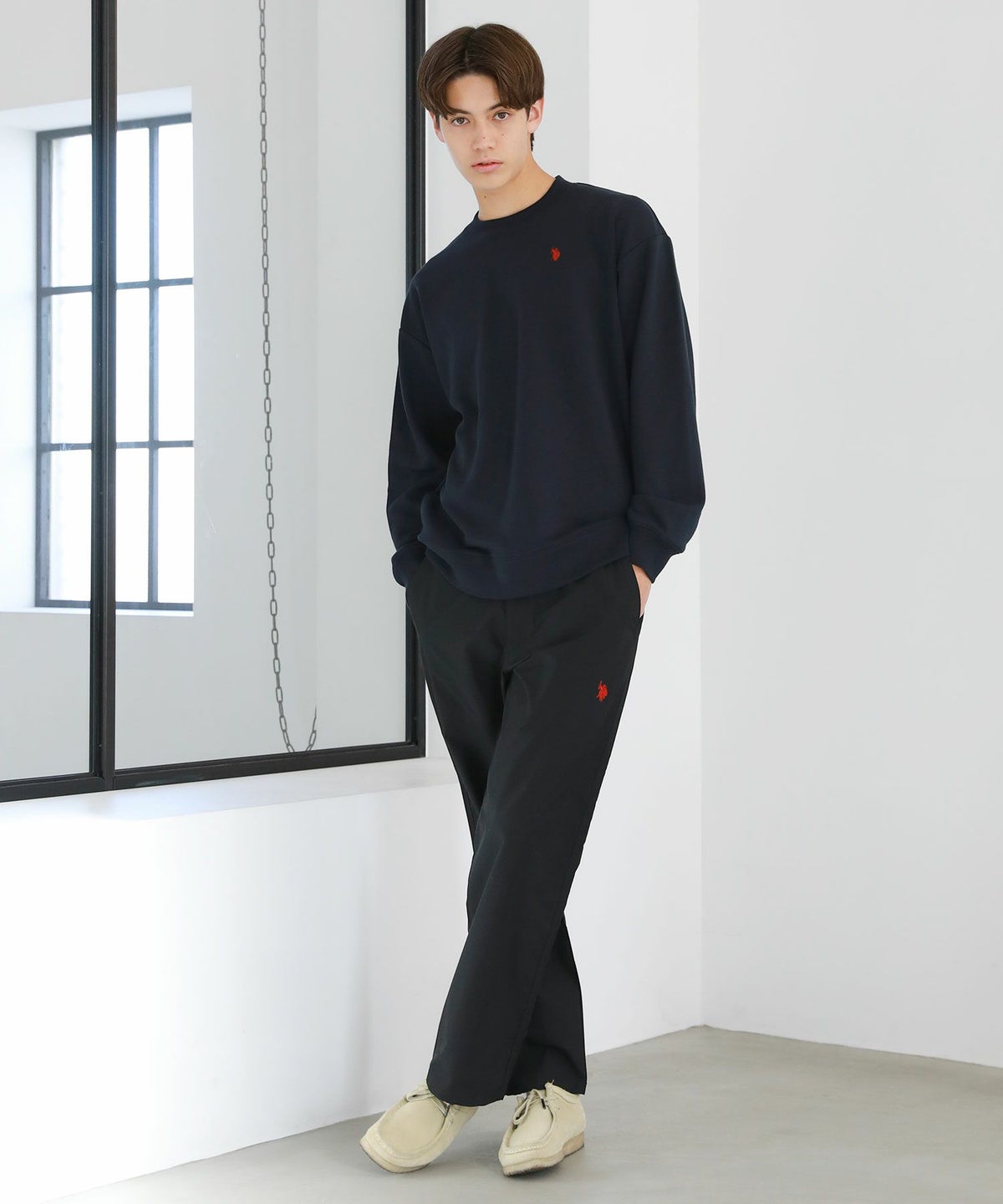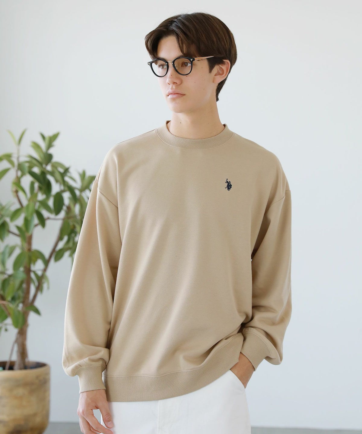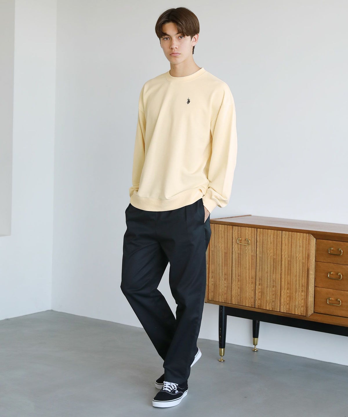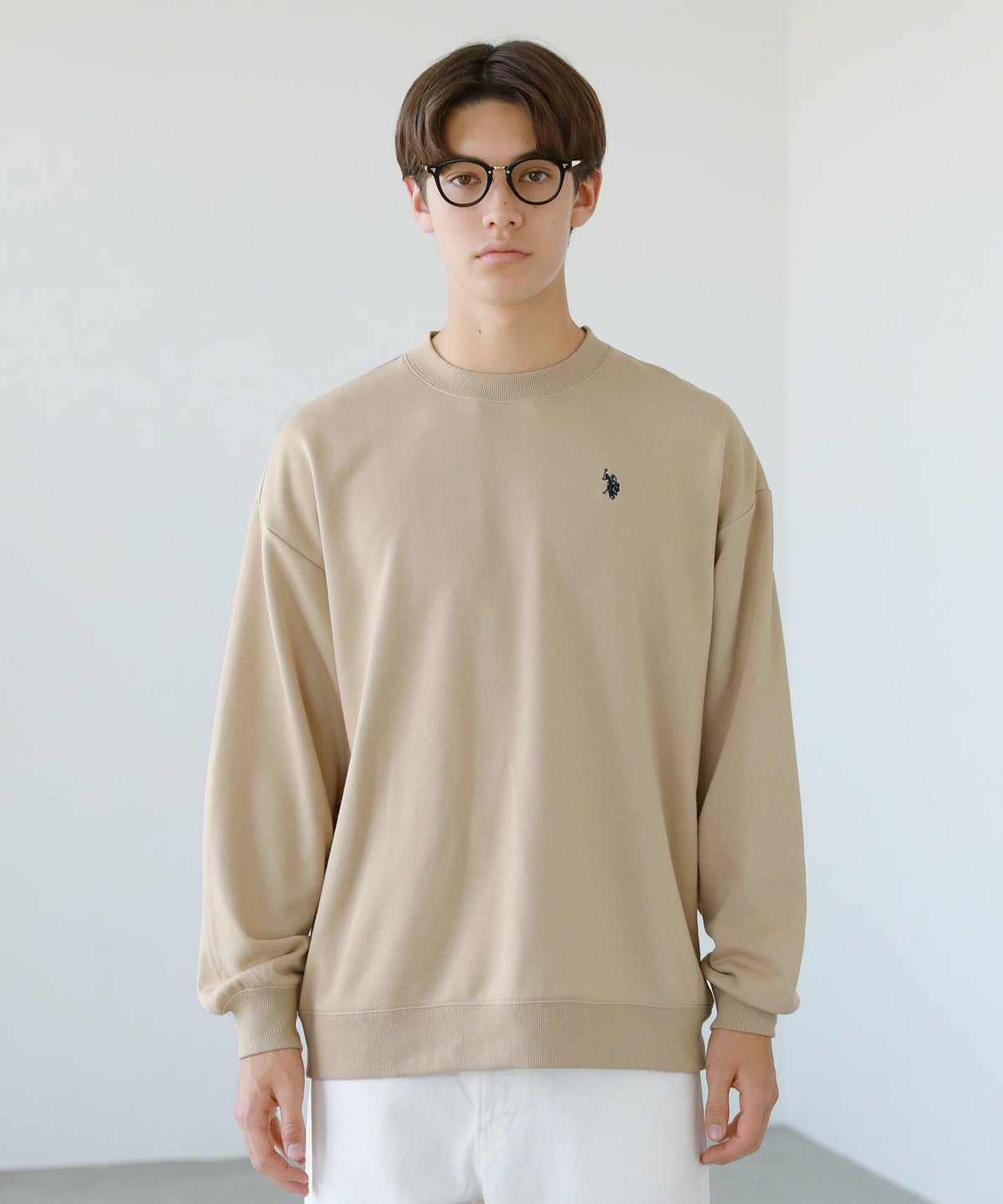 裏毛ワンポイントロゴクルーネックスウェット配色