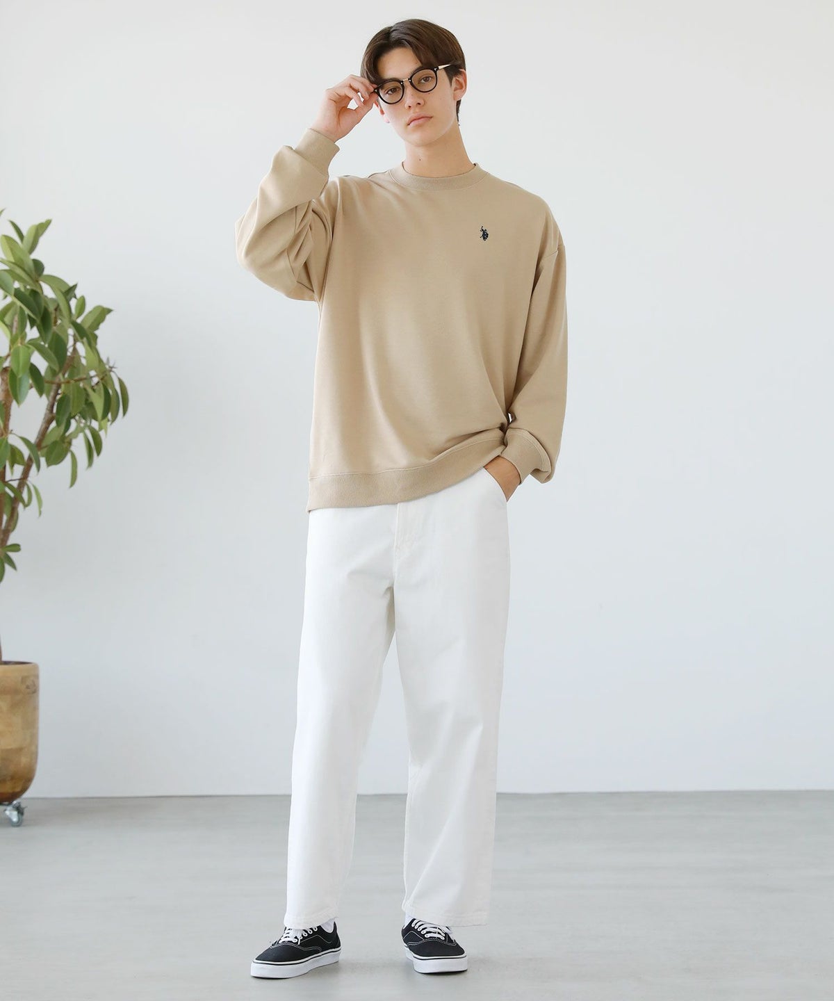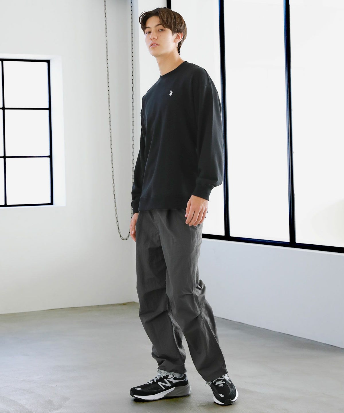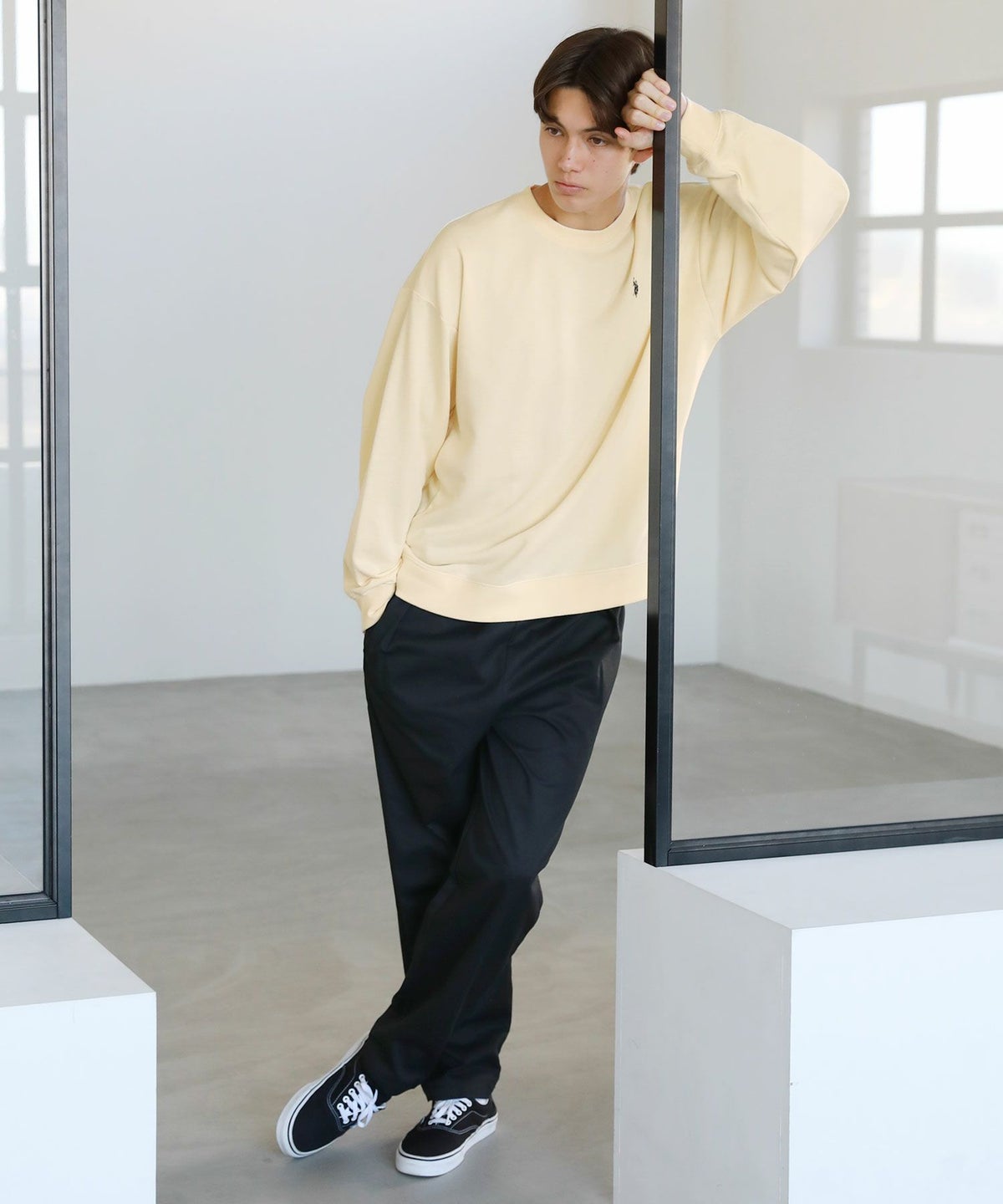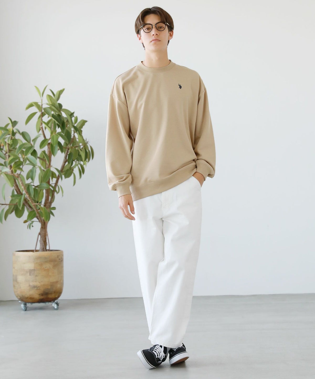 裏毛ワンポイントロゴクルーネックスウェット配色