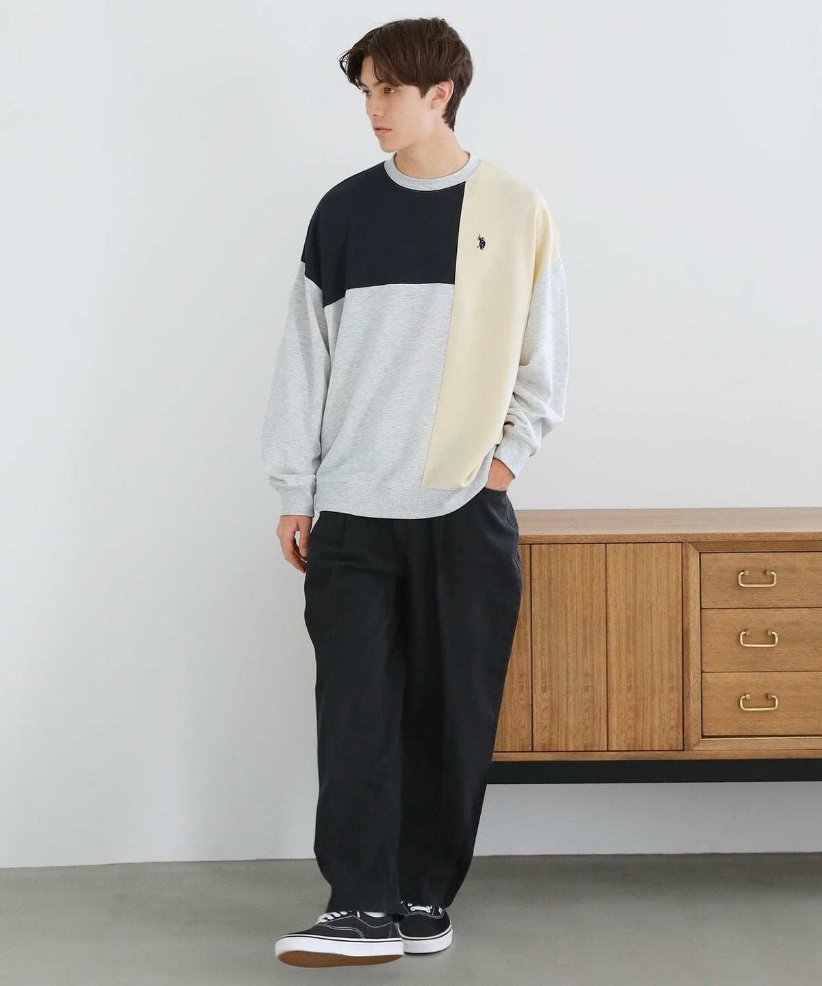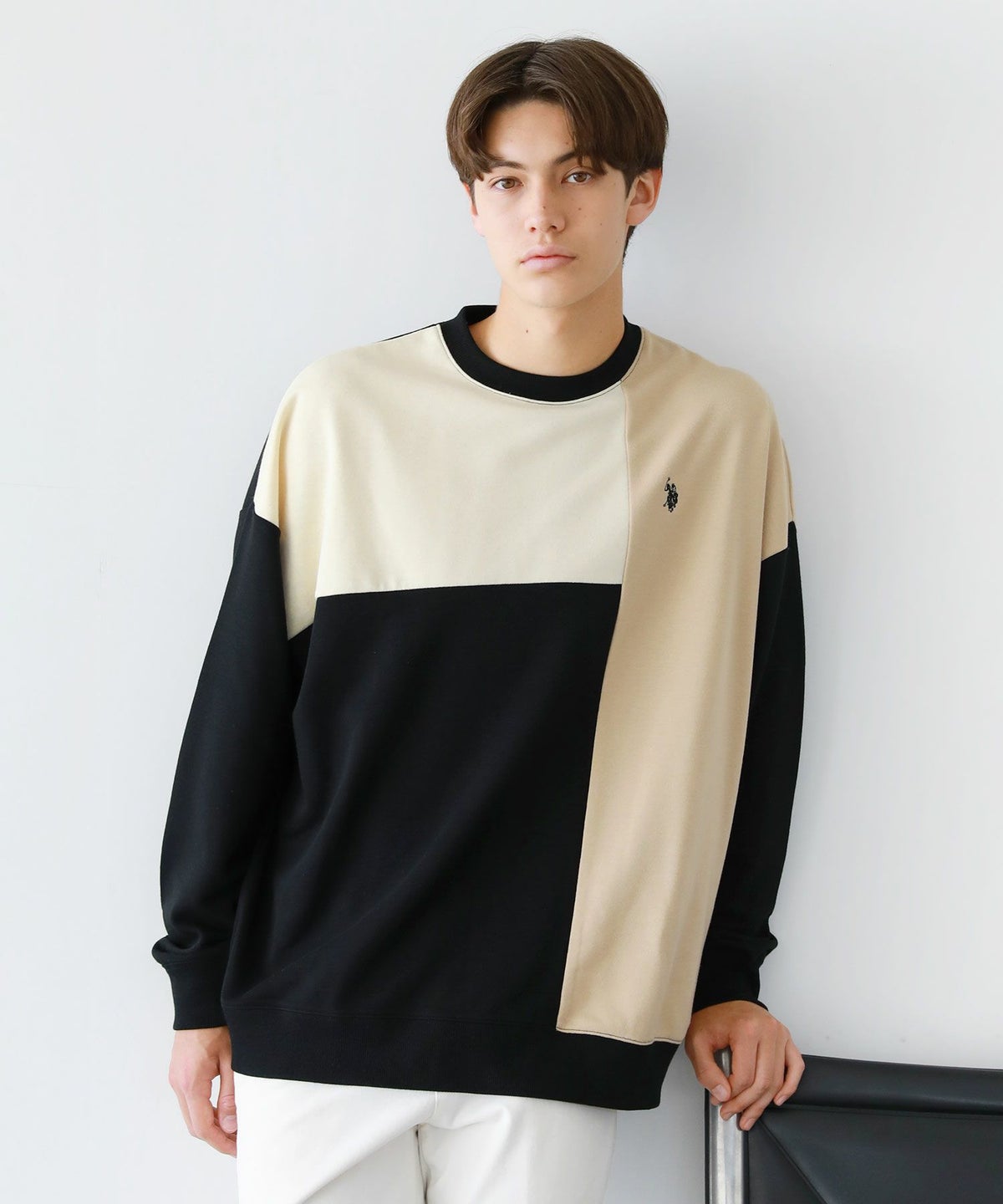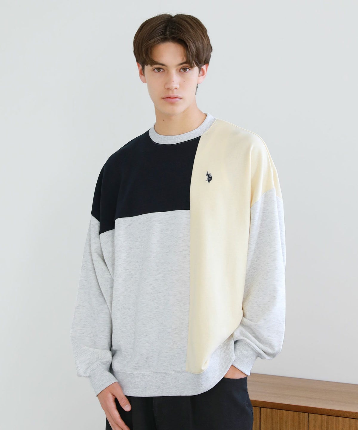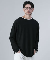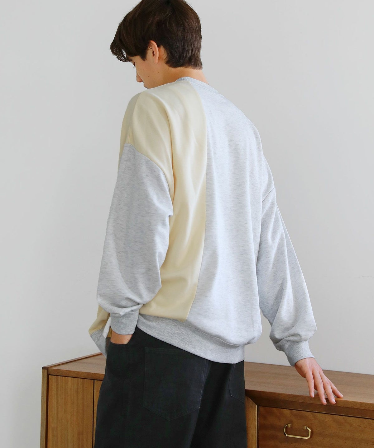 オーバーサイズ配色切替え長袖クルーネックプルオーバー