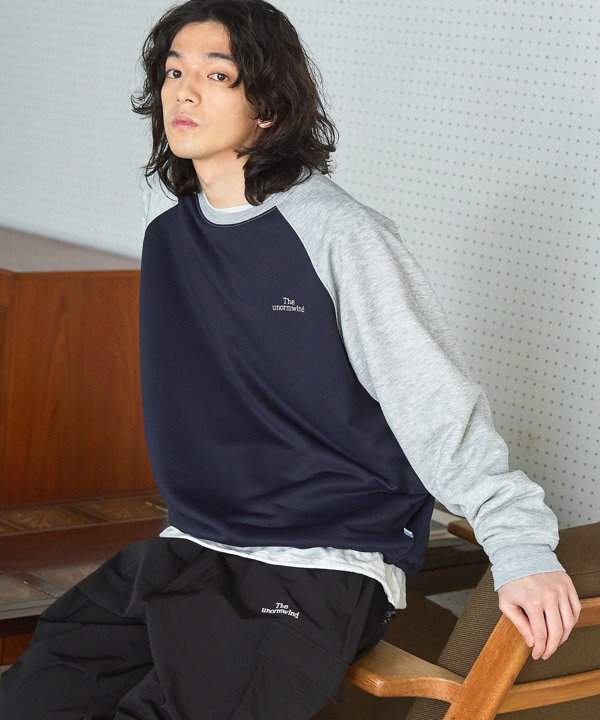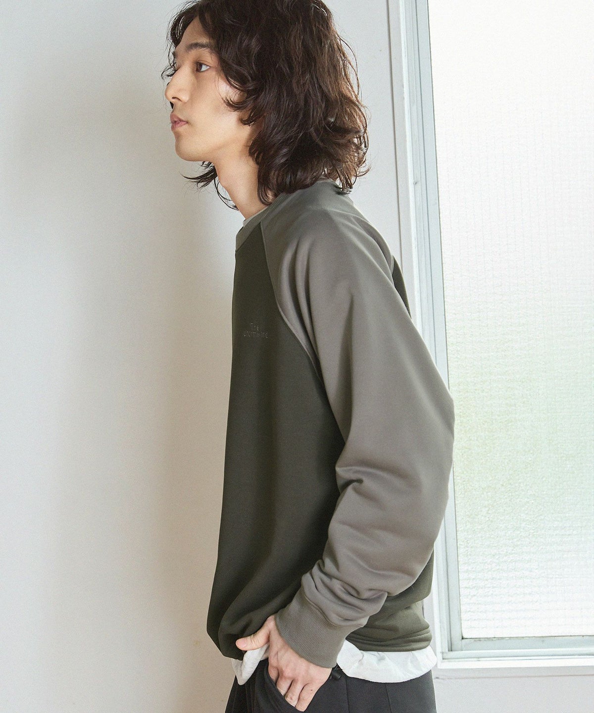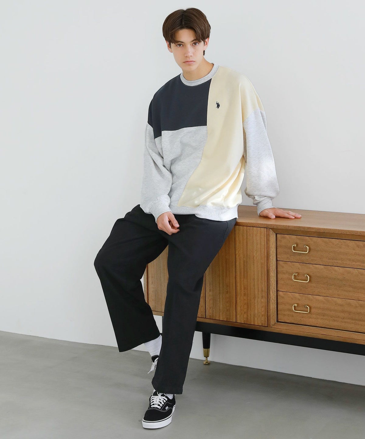 オーバーサイズ配色切替え長袖クルーネックプルオーバー