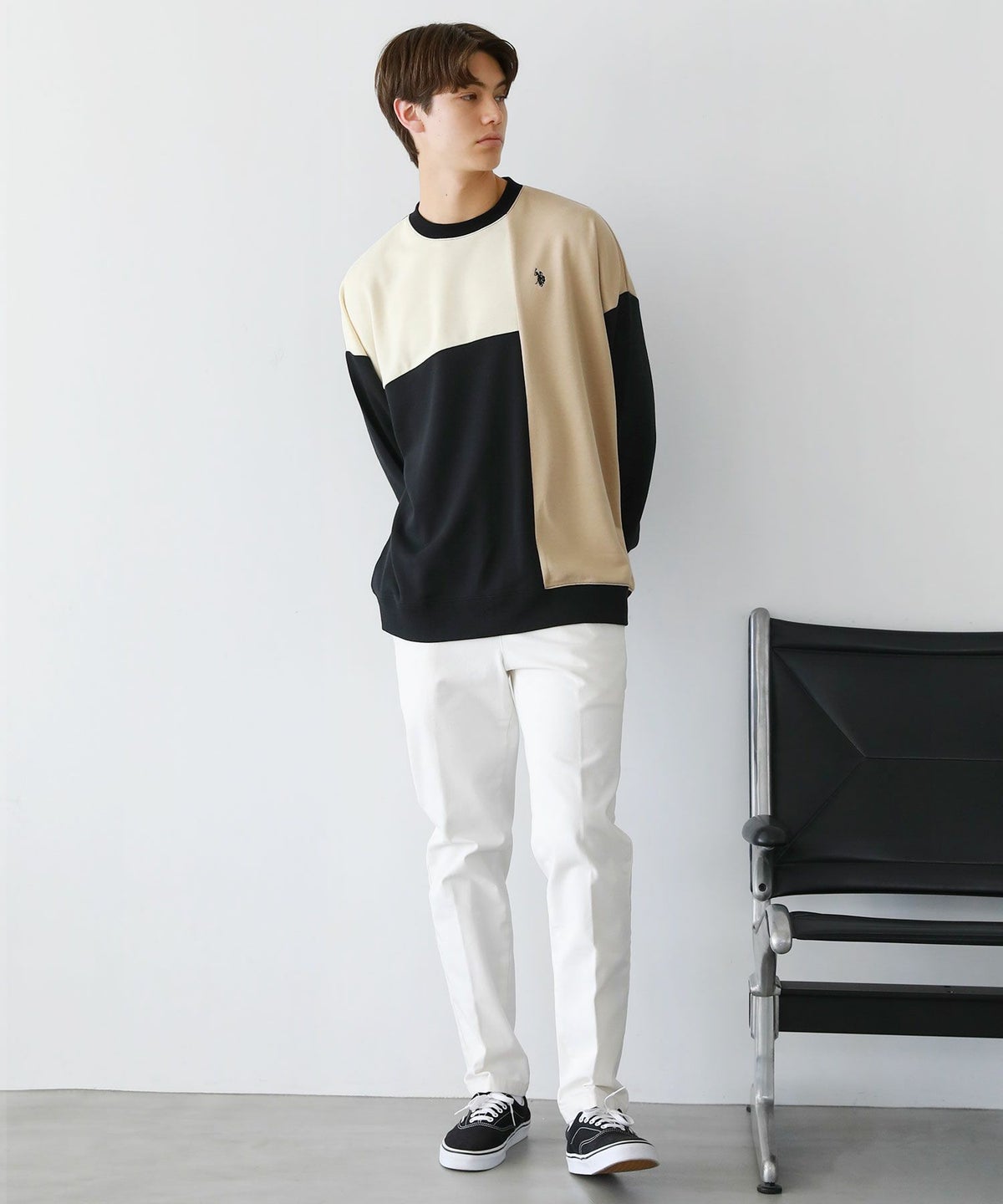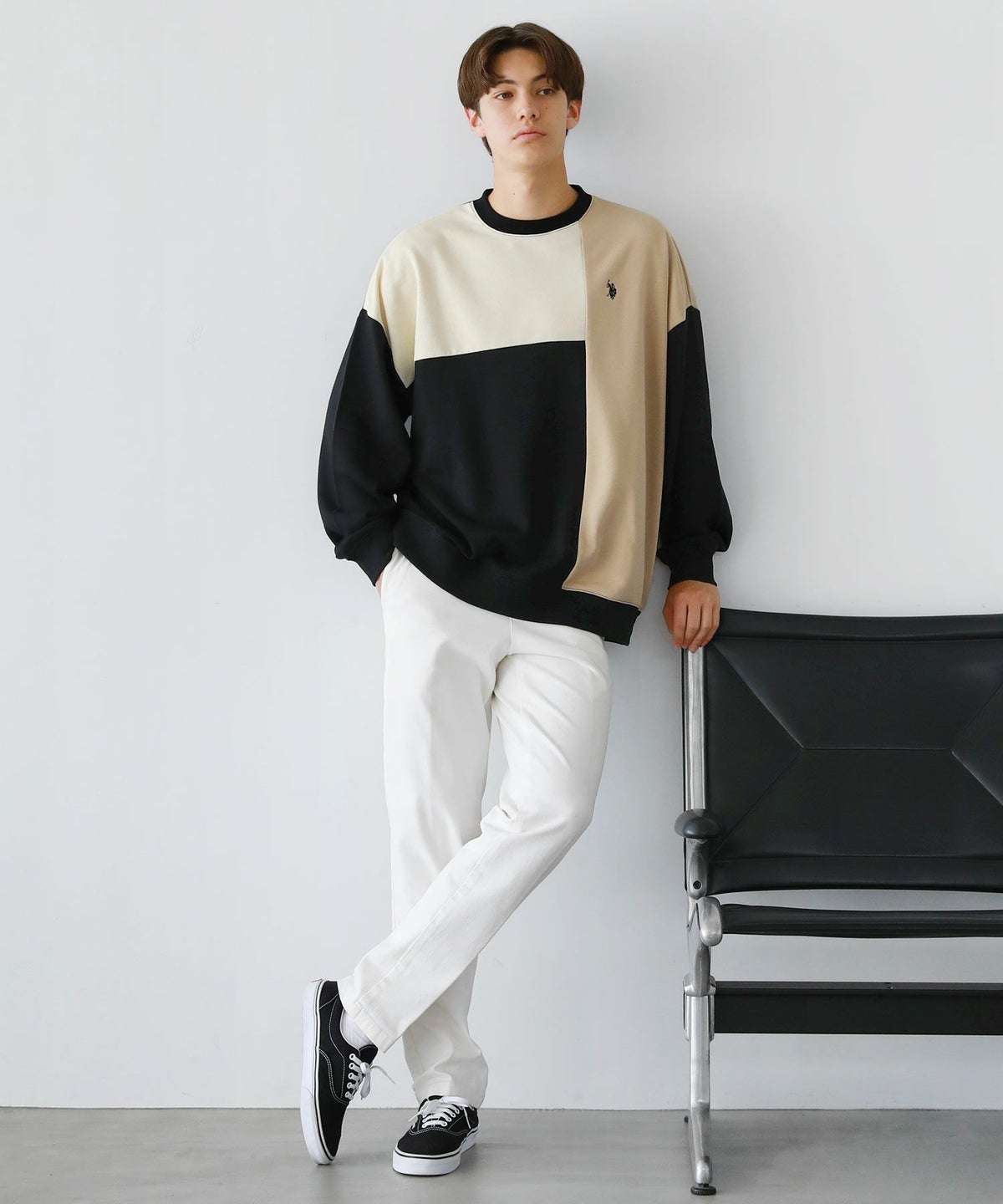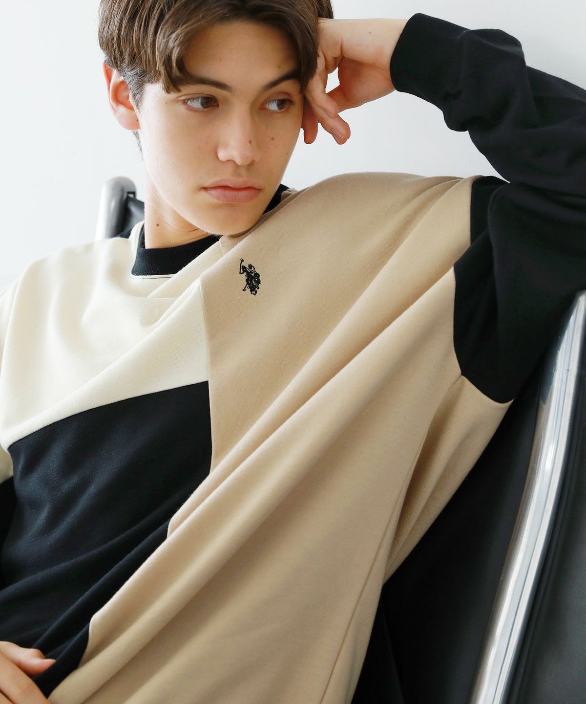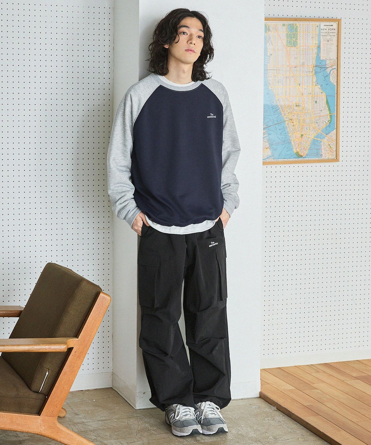 オーバーサイズ配色切替え長袖クルーネックプルオーバー