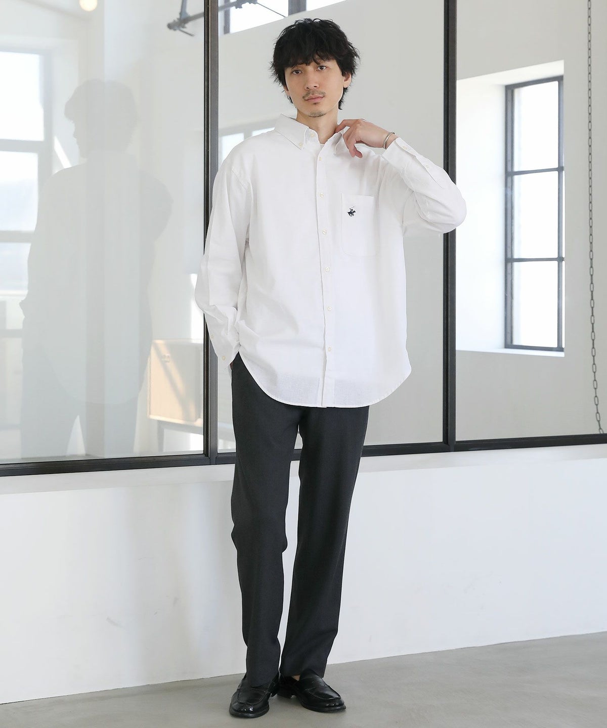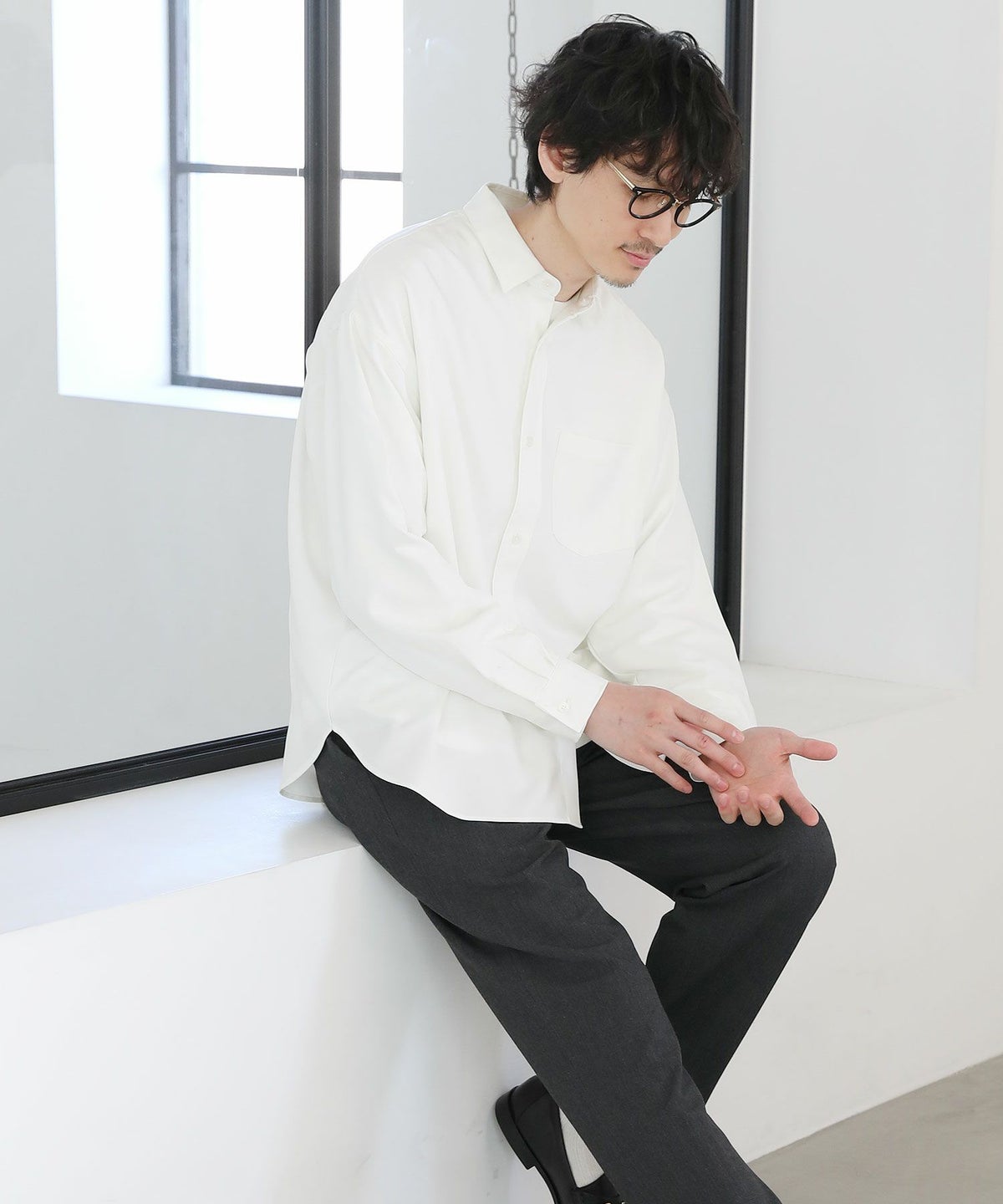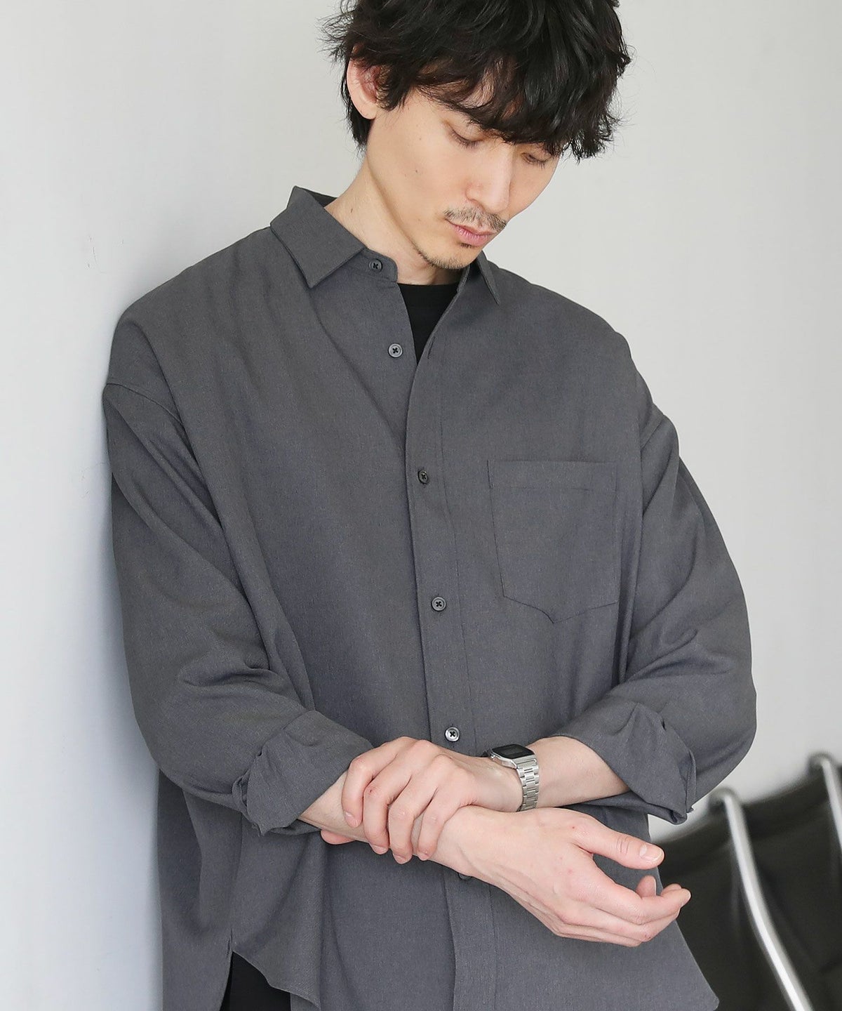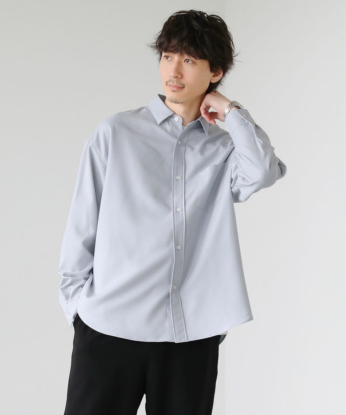 オーバーサイズレギュラーカラー長袖シャツ