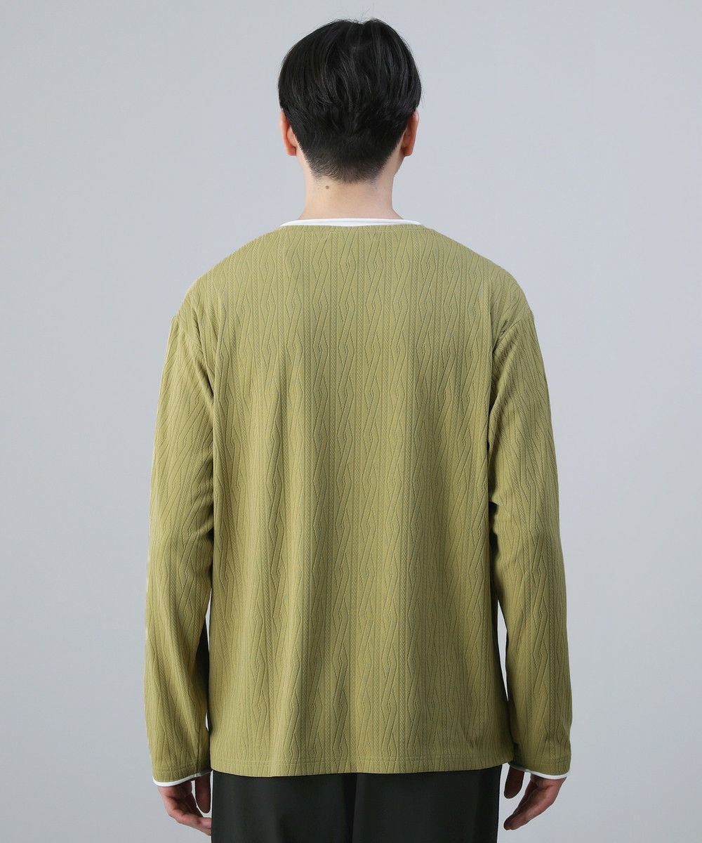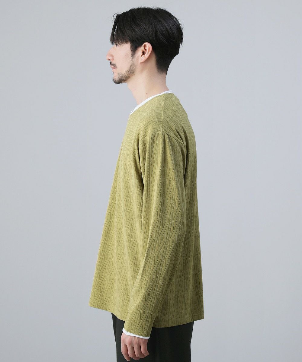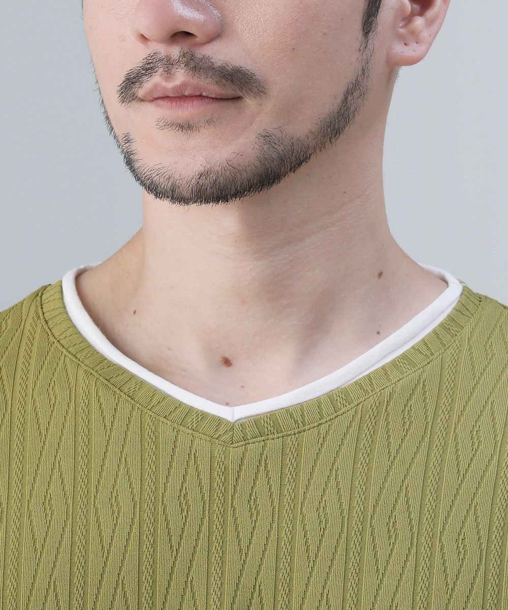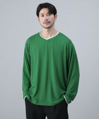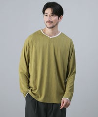 接触冷感/スラブ天竺ヘンリーネックフェイクレイヤード半袖カットソー