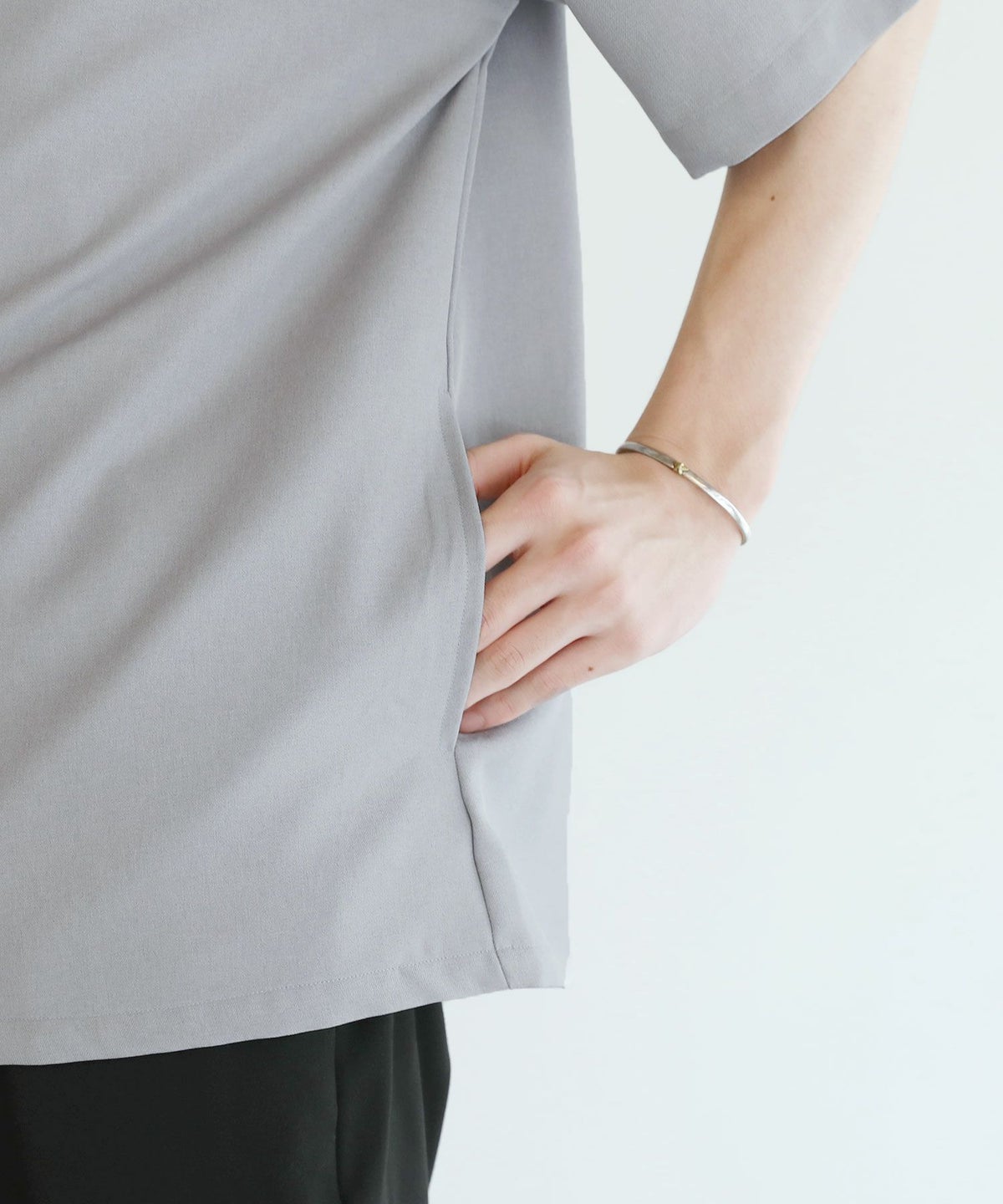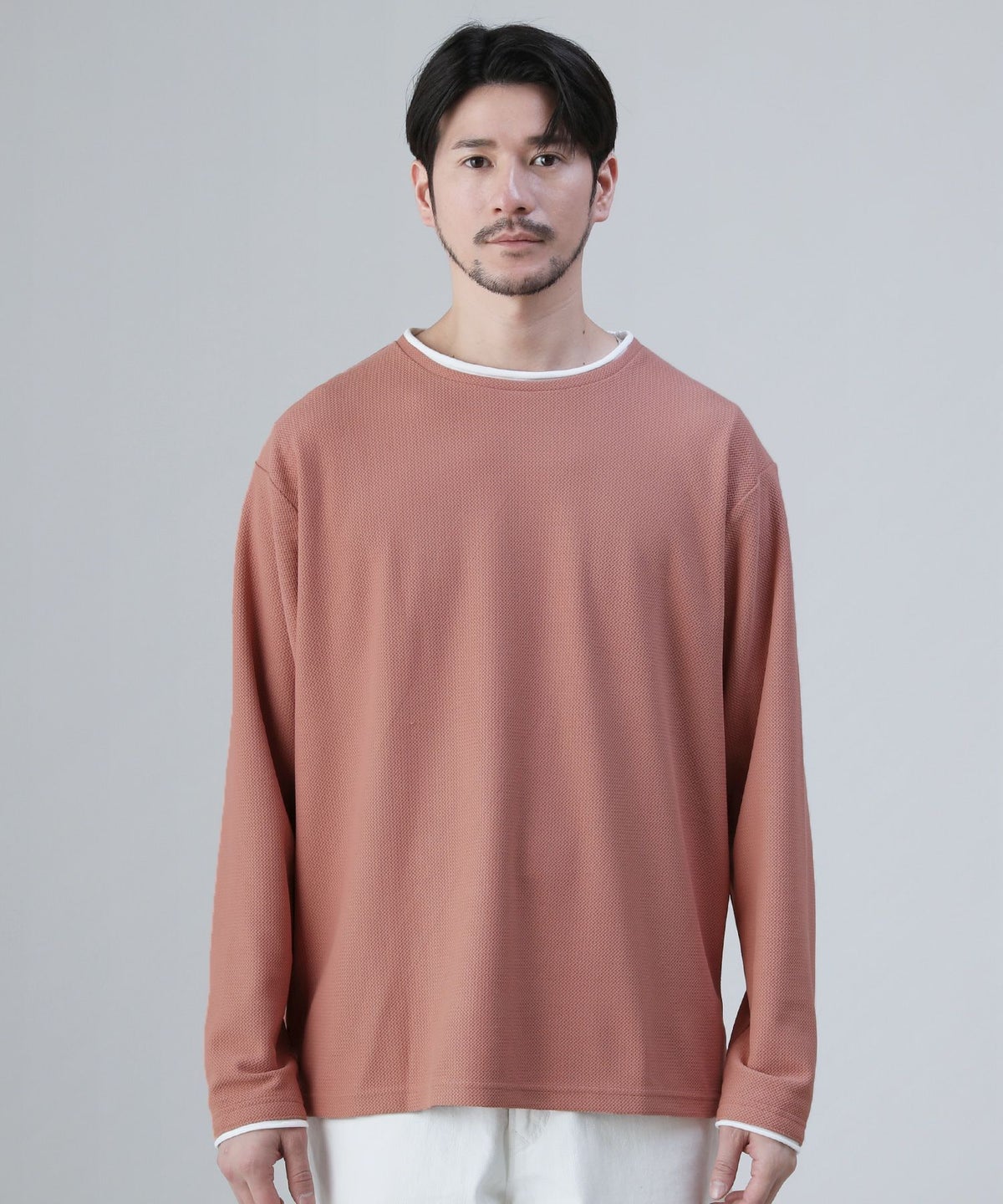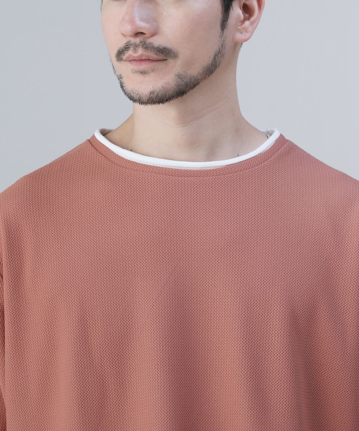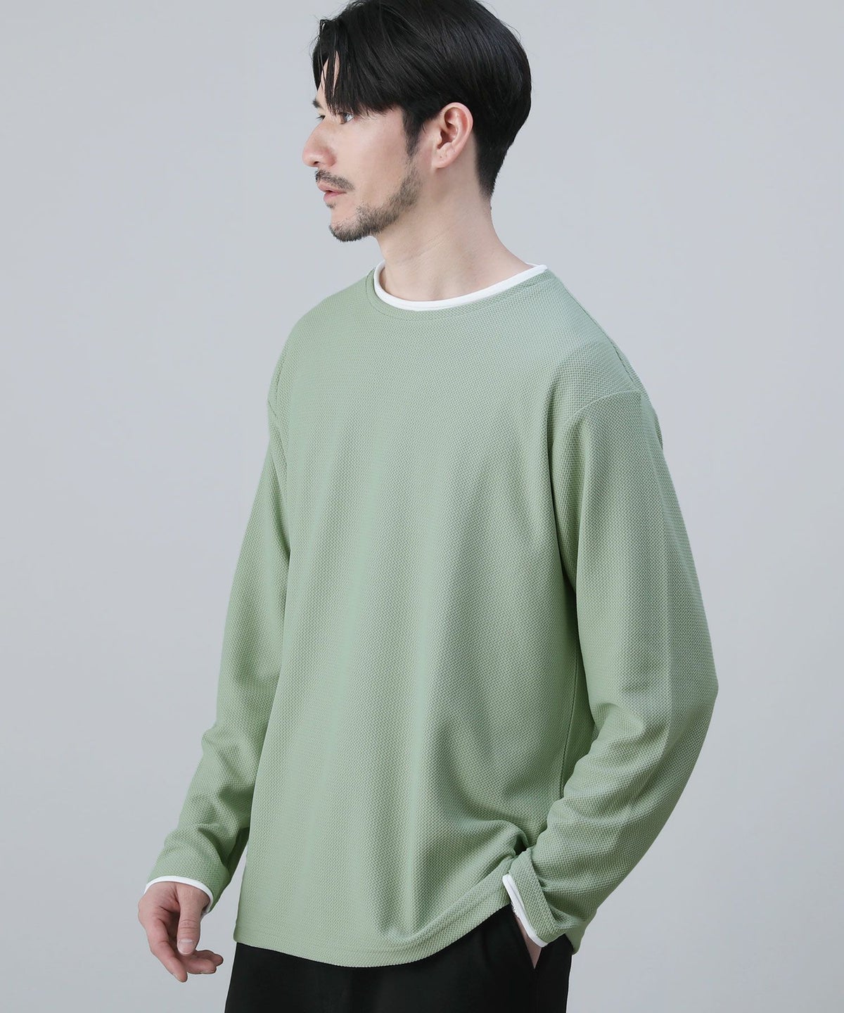 接触冷感/スラブ天竺ヘンリーネックフェイクレイヤード半袖カットソー