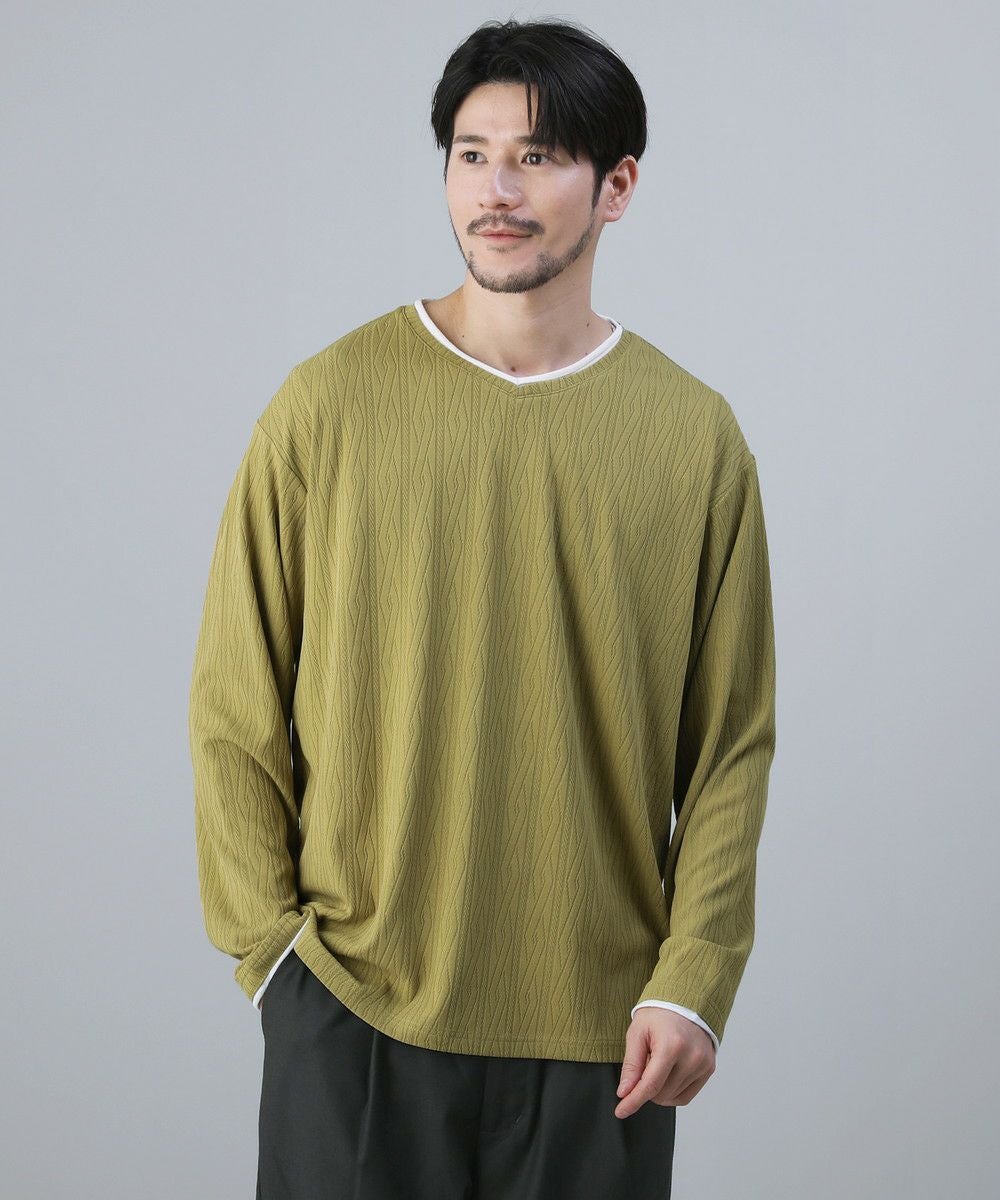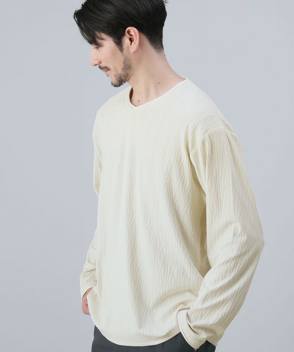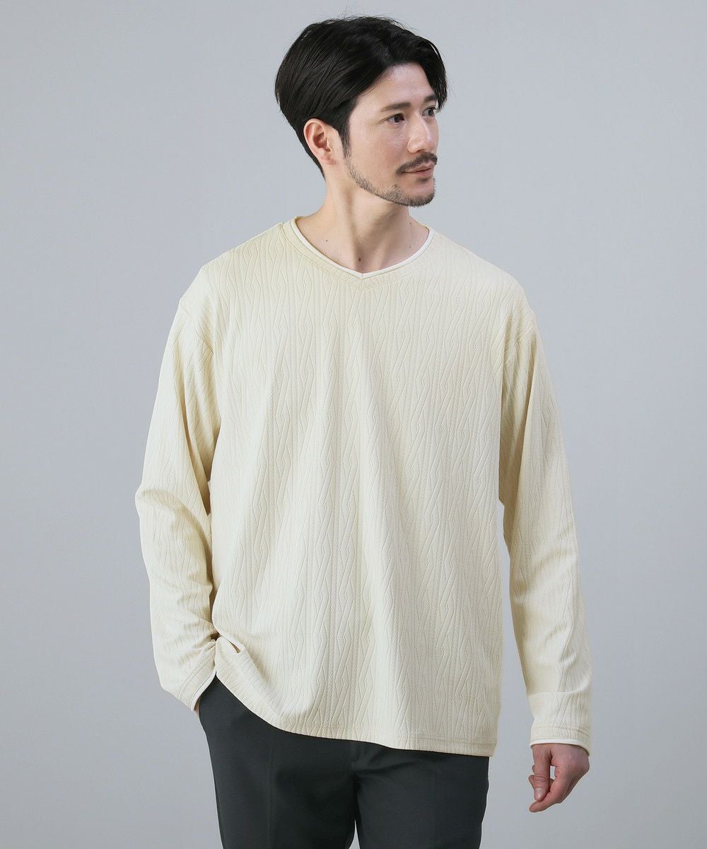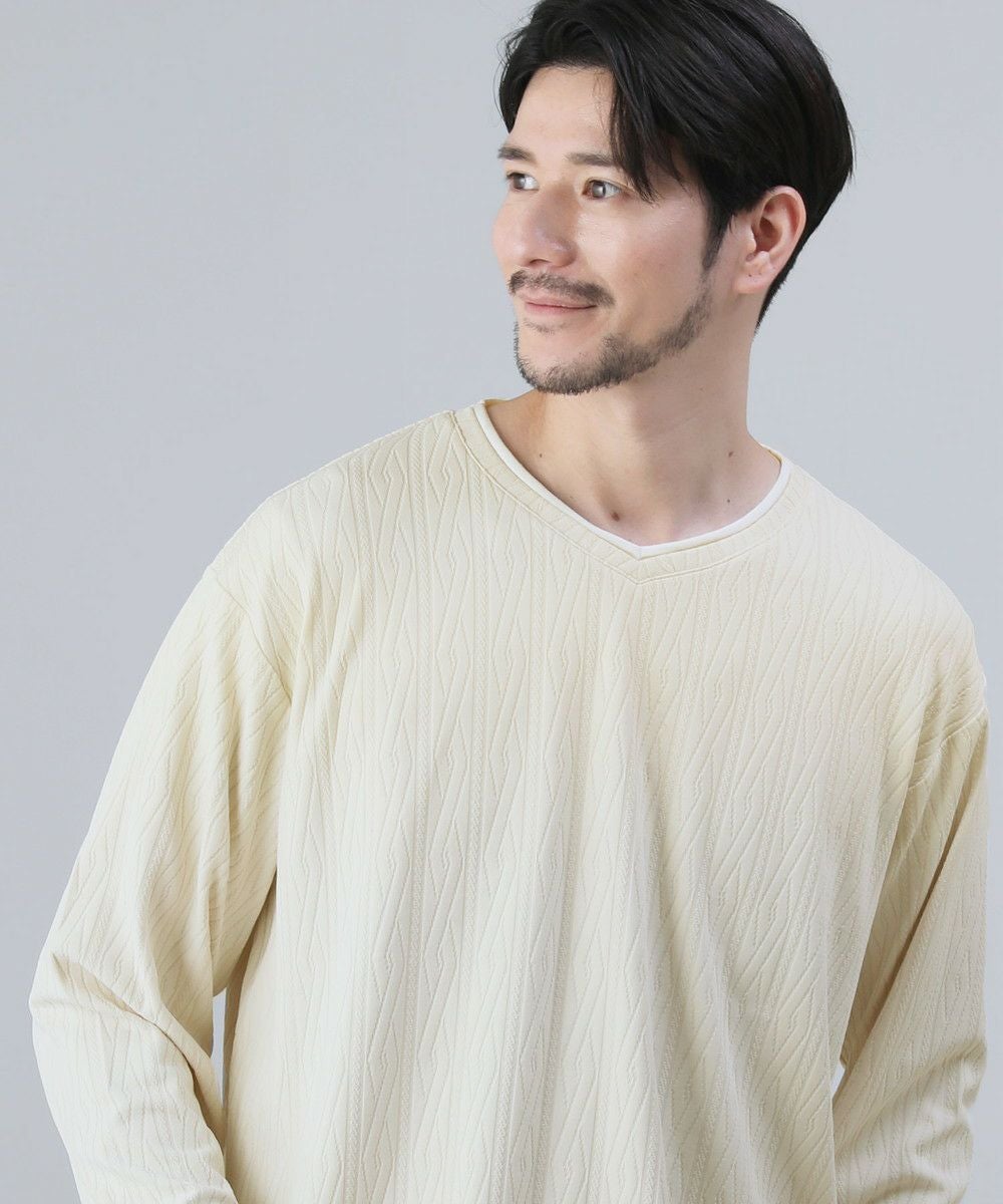ケーブルジャガードロールVネック長袖カットソー