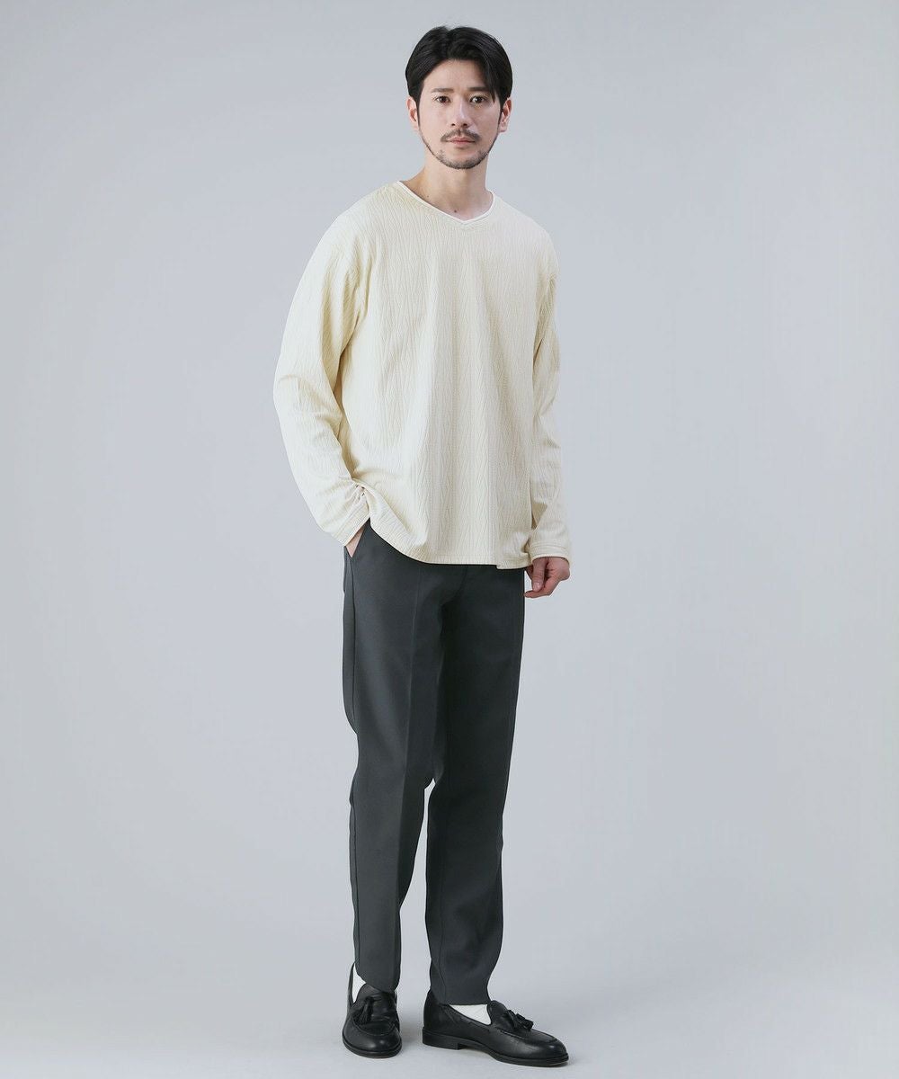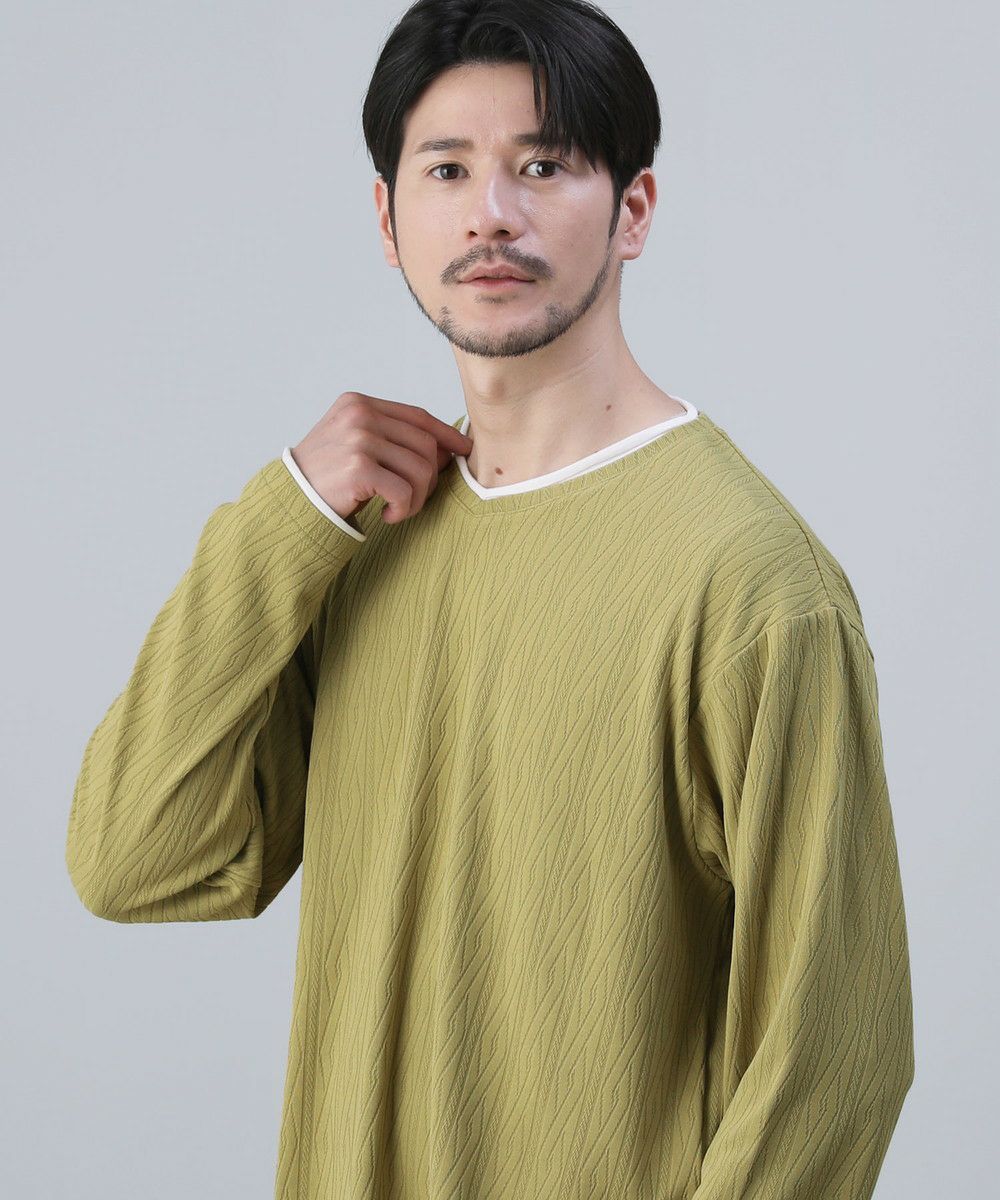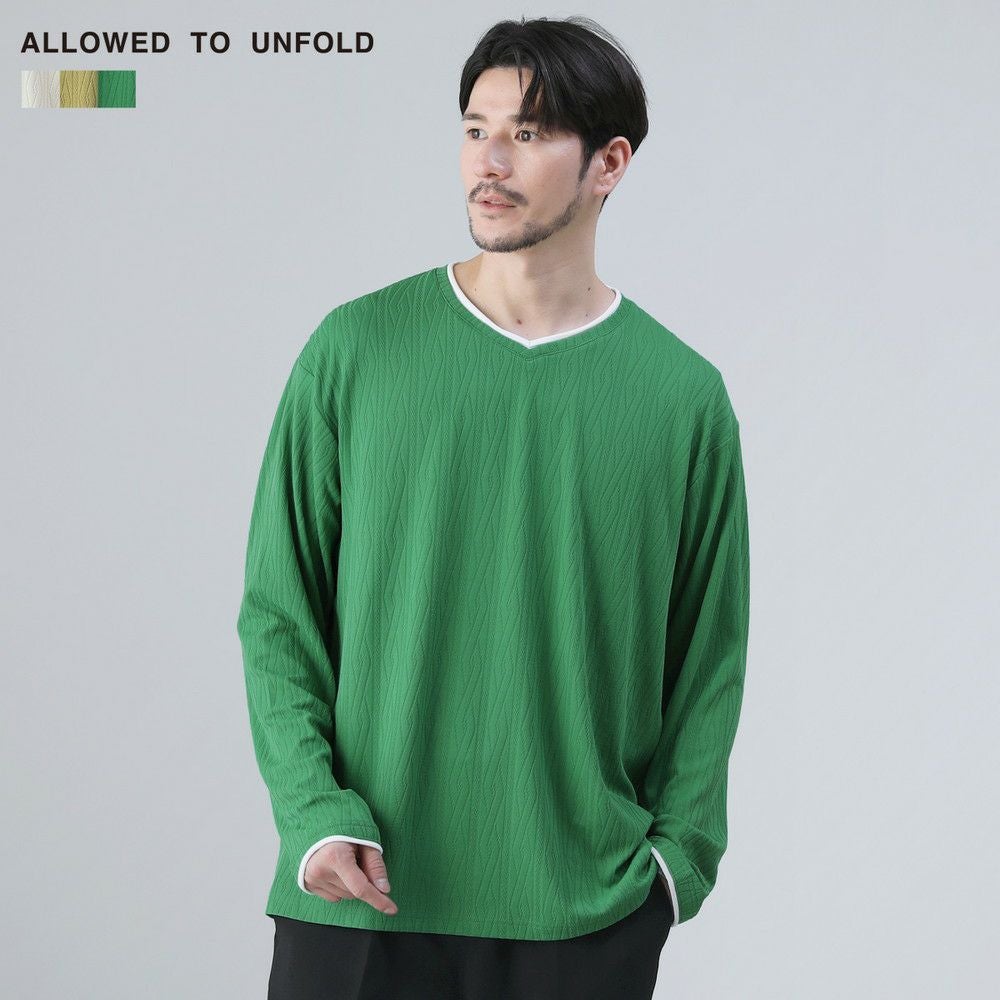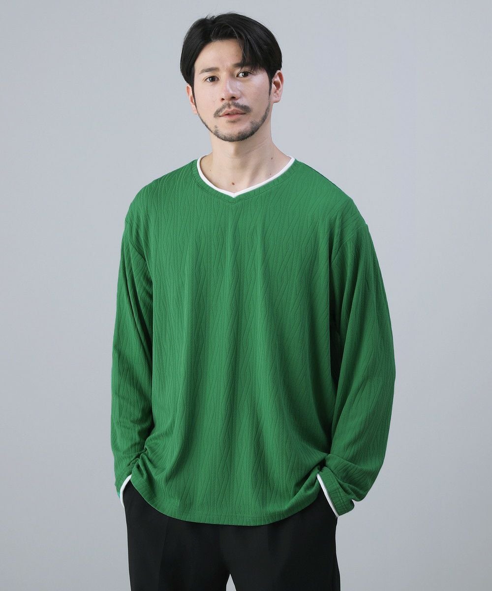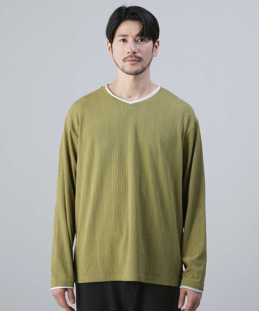 ケーブルジャガードロールVネック長袖カットソー