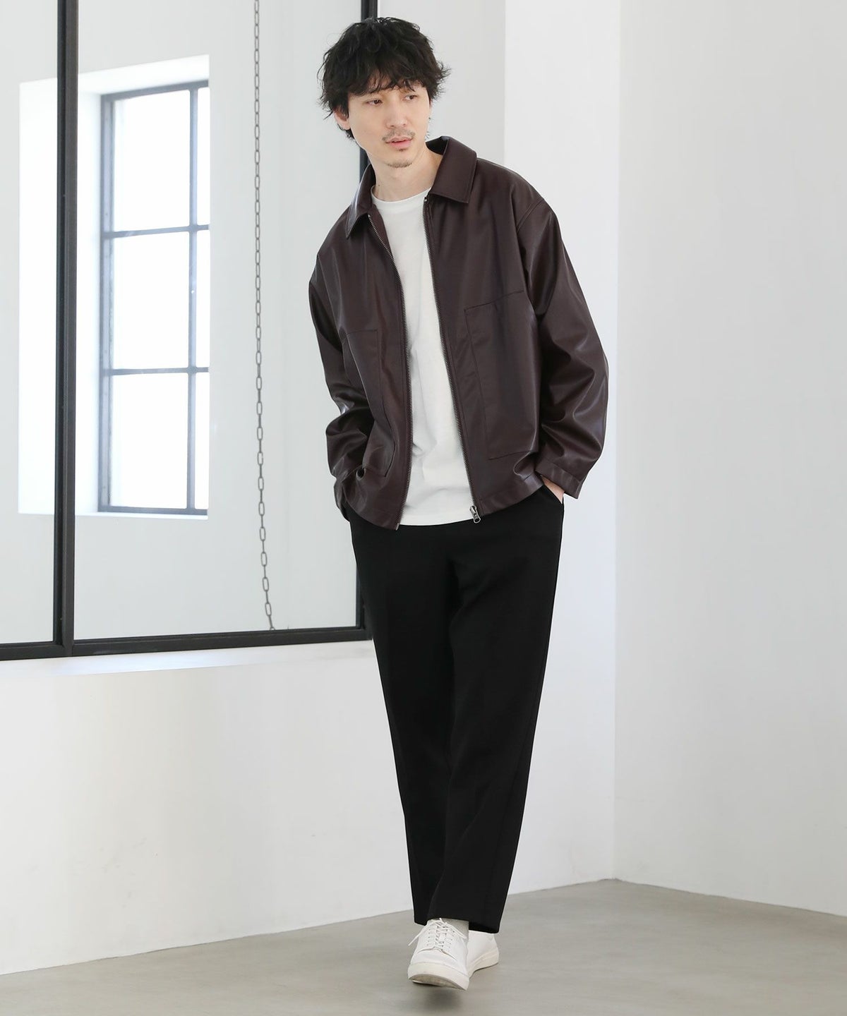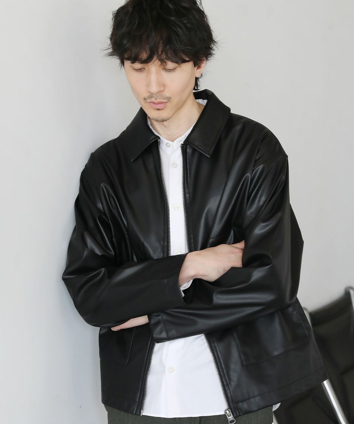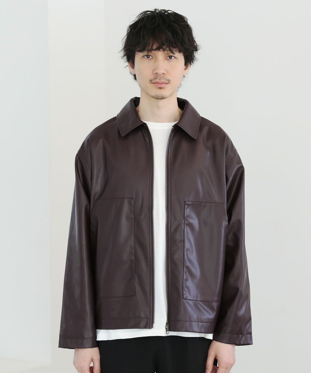 シンセティックレザージップアップブルゾン