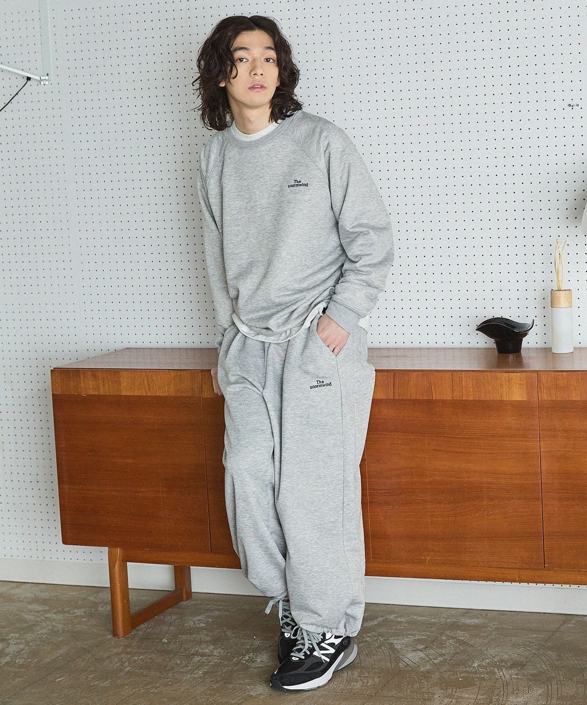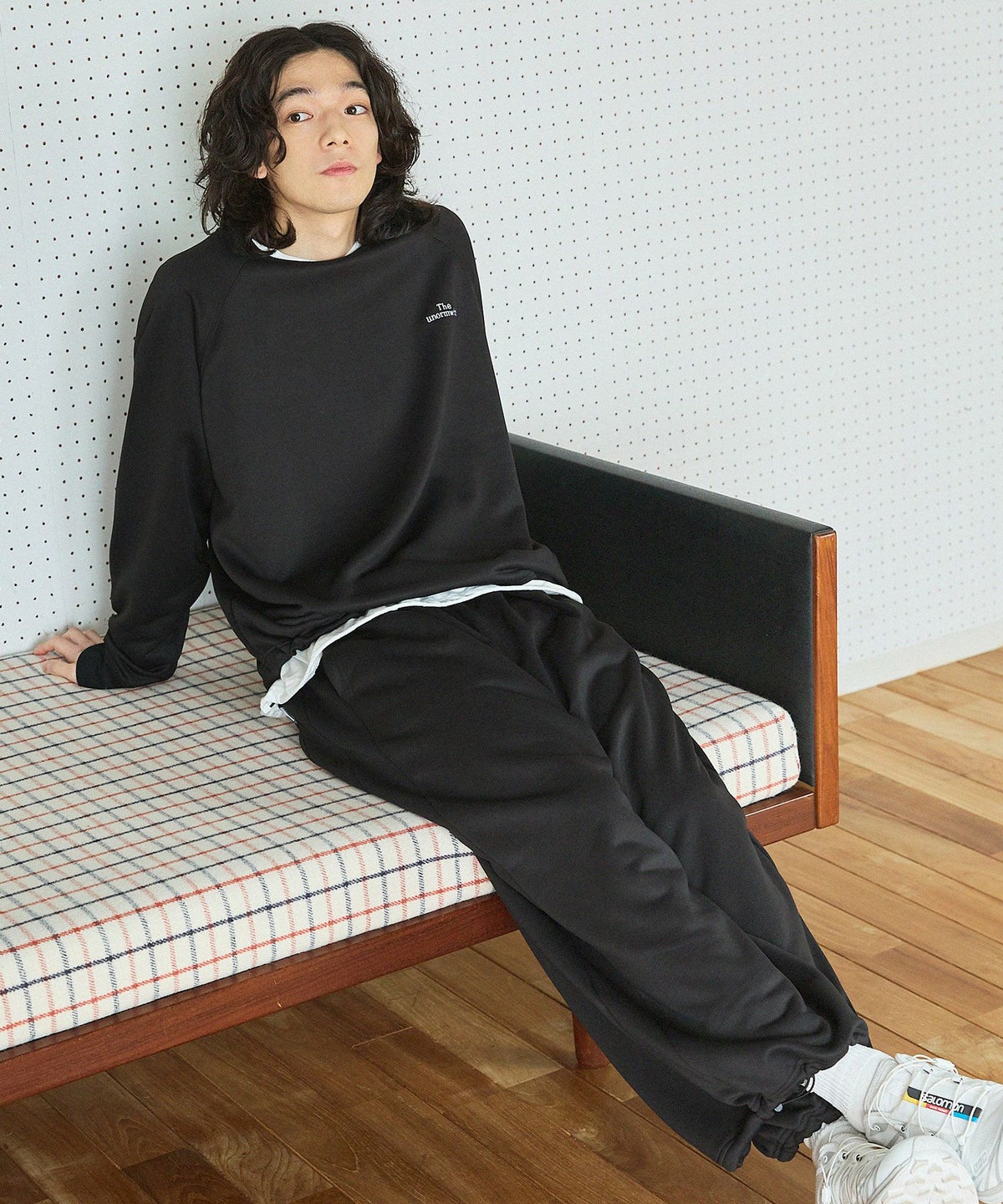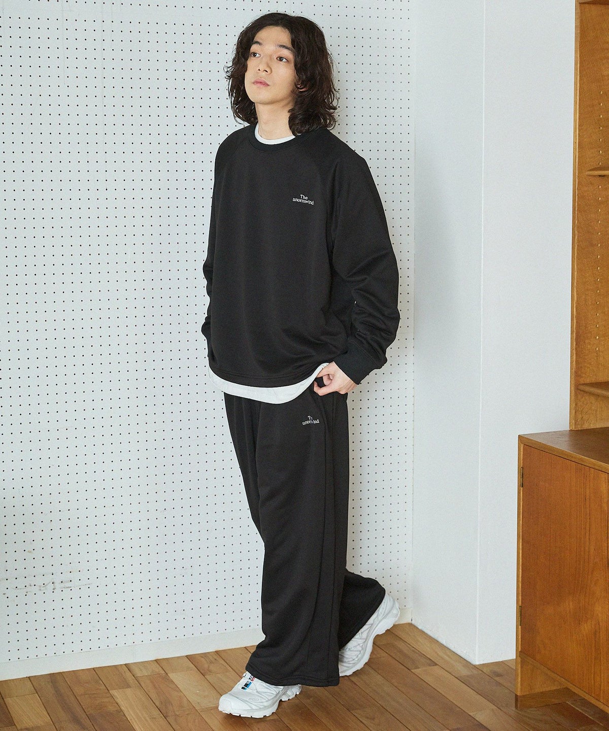 【セットアップ対応】ブランド刺繍ロゴ裾ドローコードラグラン配色長袖アーバンスウェット