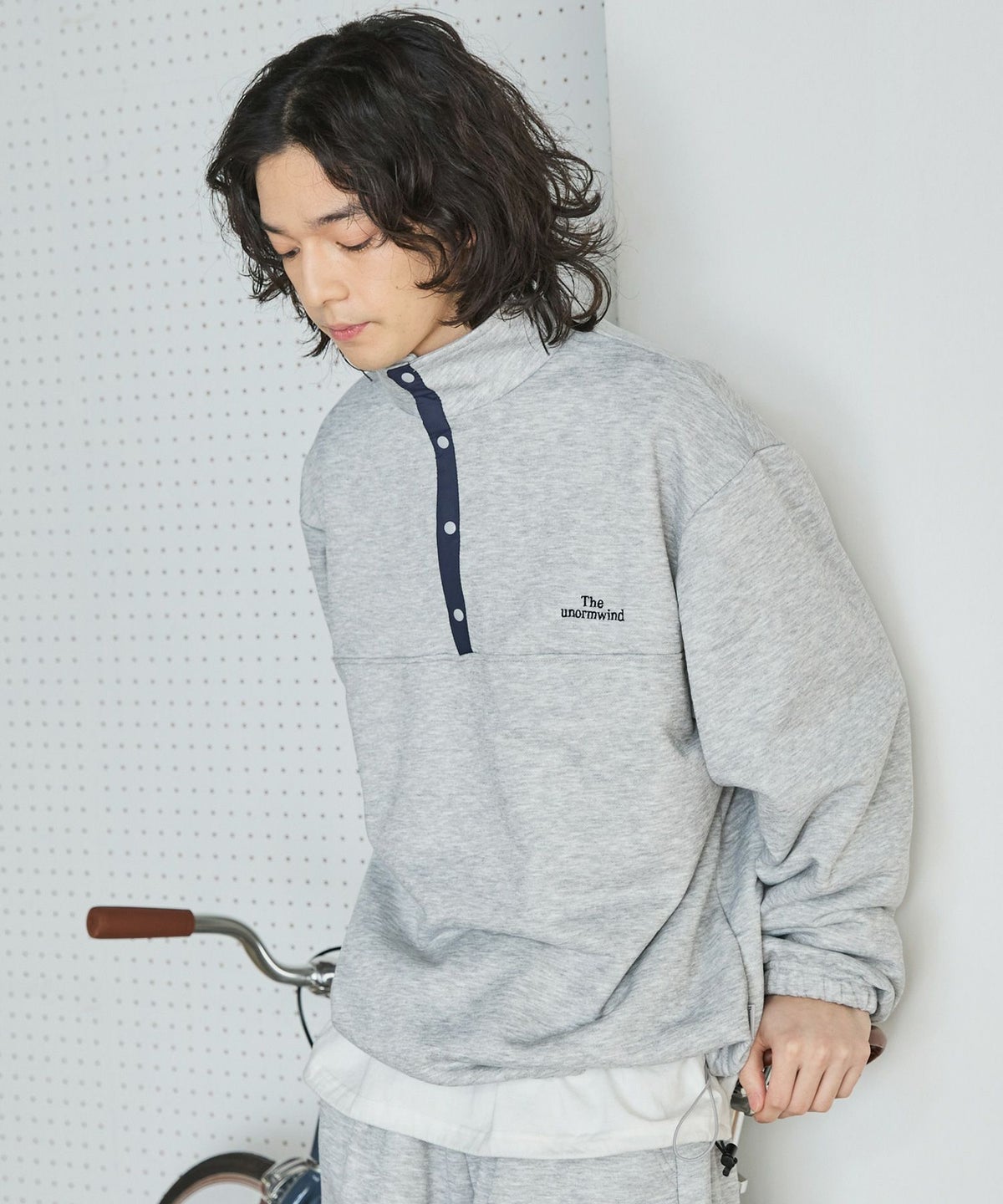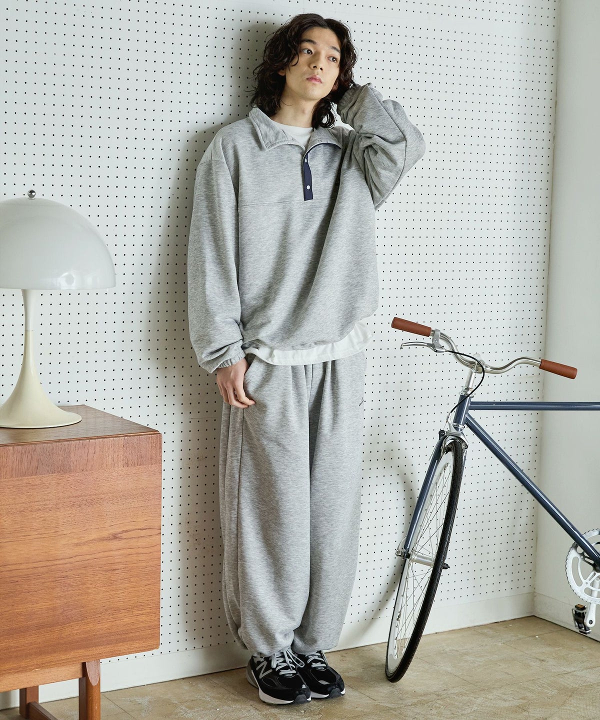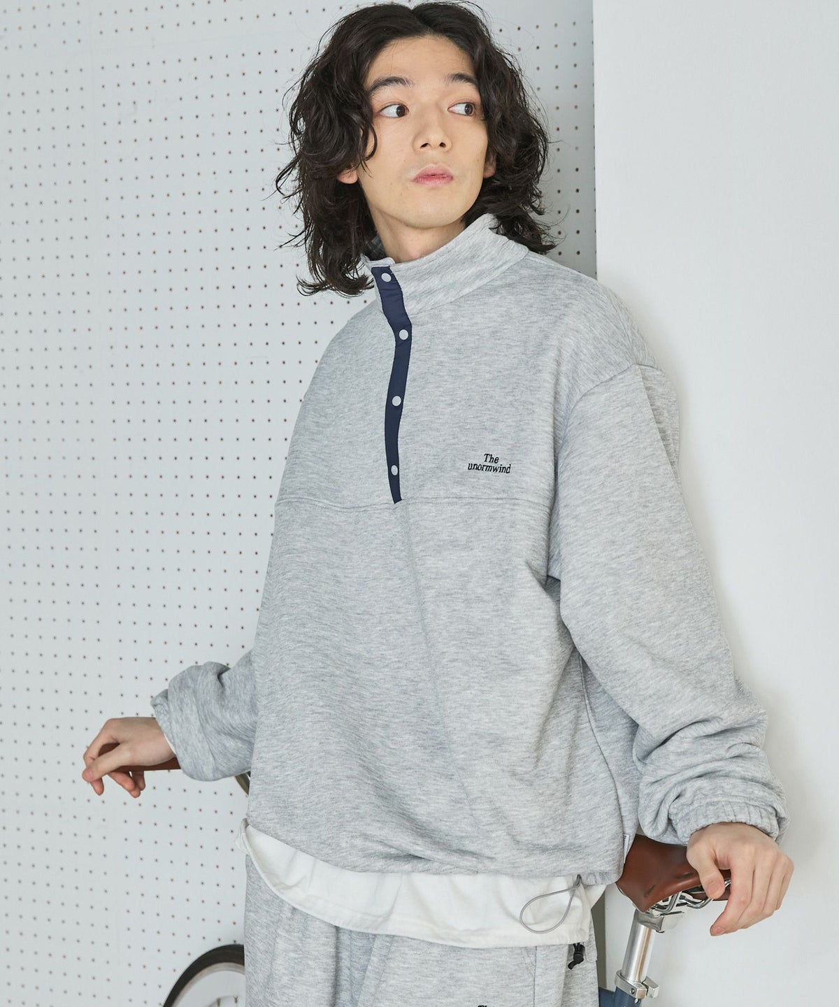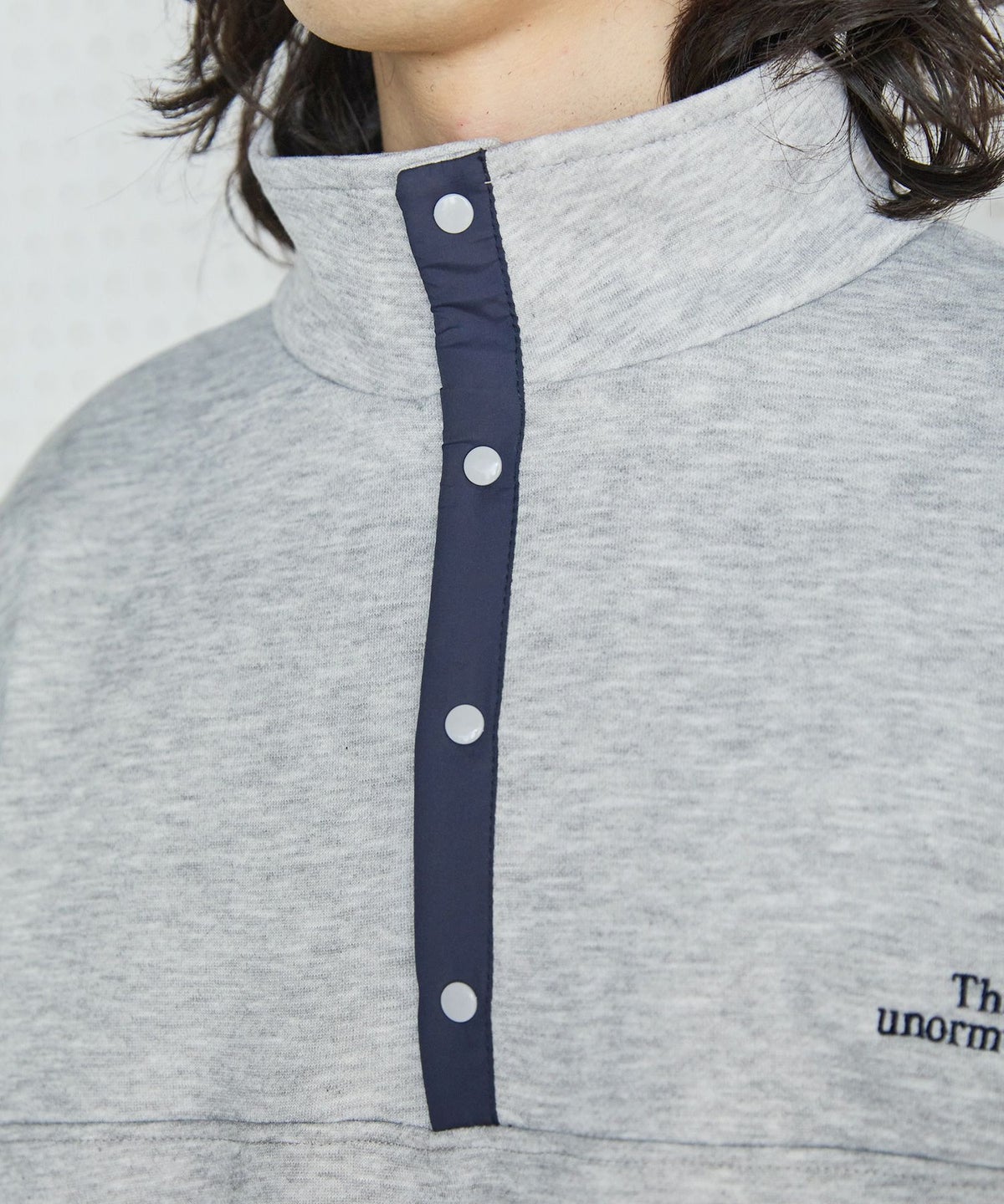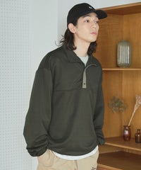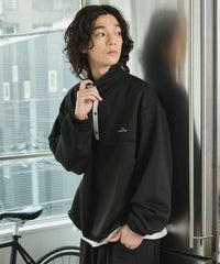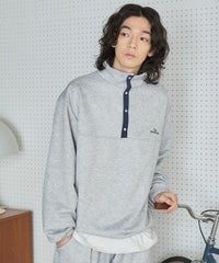 【セットアップ対応】ブランド刺繍ロゴ裾ドローコードラグラン配色長袖ハーフボタンアーバンスウェット