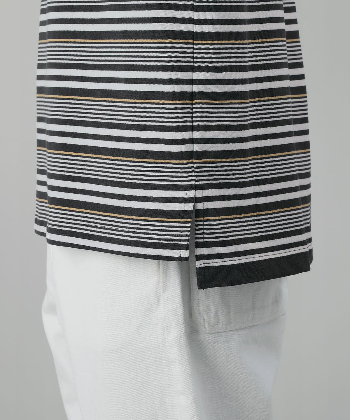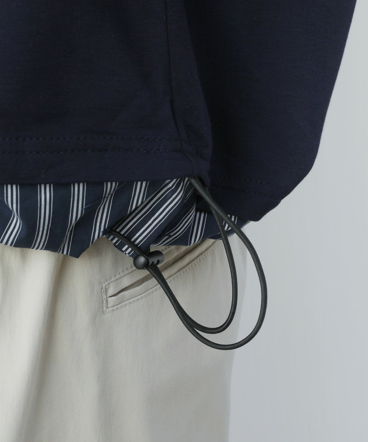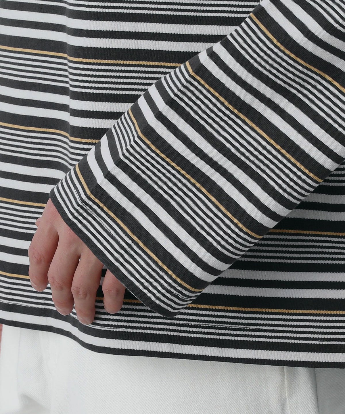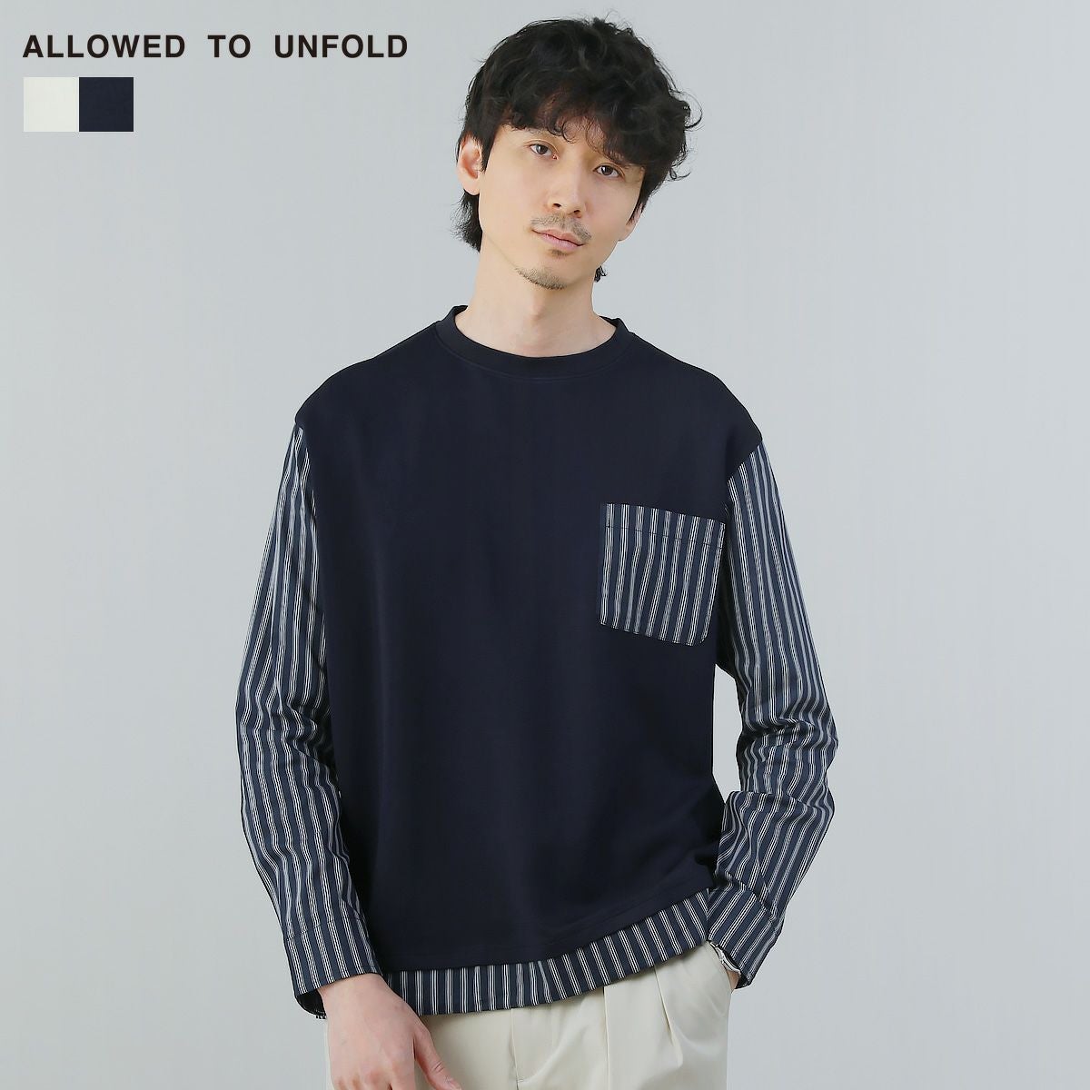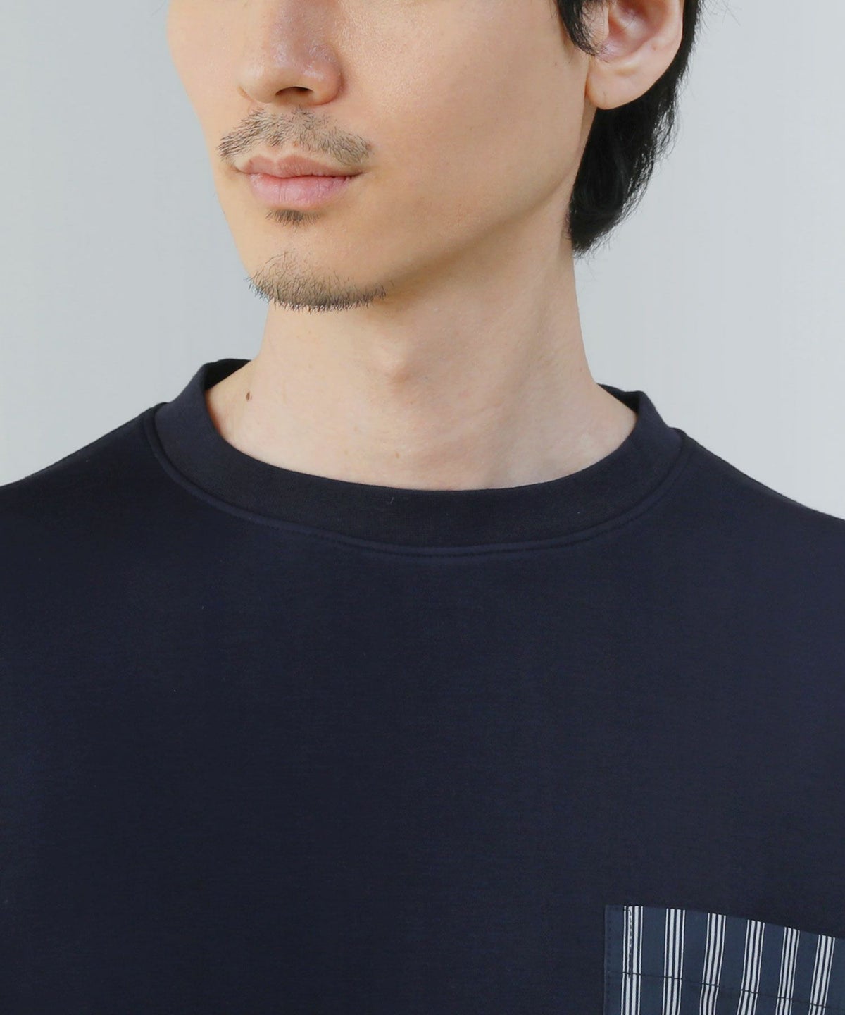 ポンチ×ストライプ布帛切り替え長袖Tシャツ