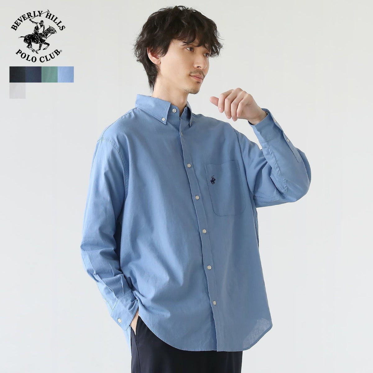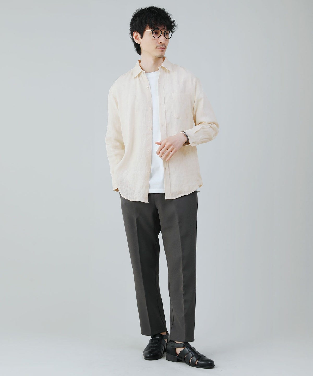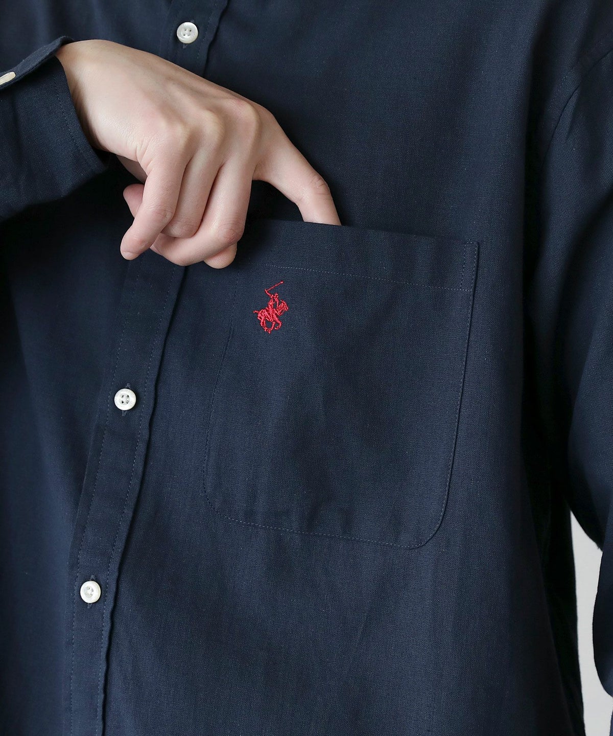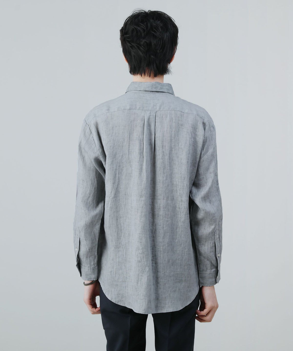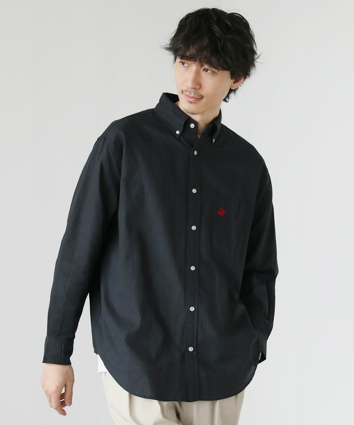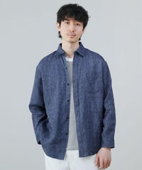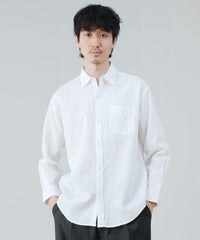 コットンリネンボタンダウン長袖シャツ