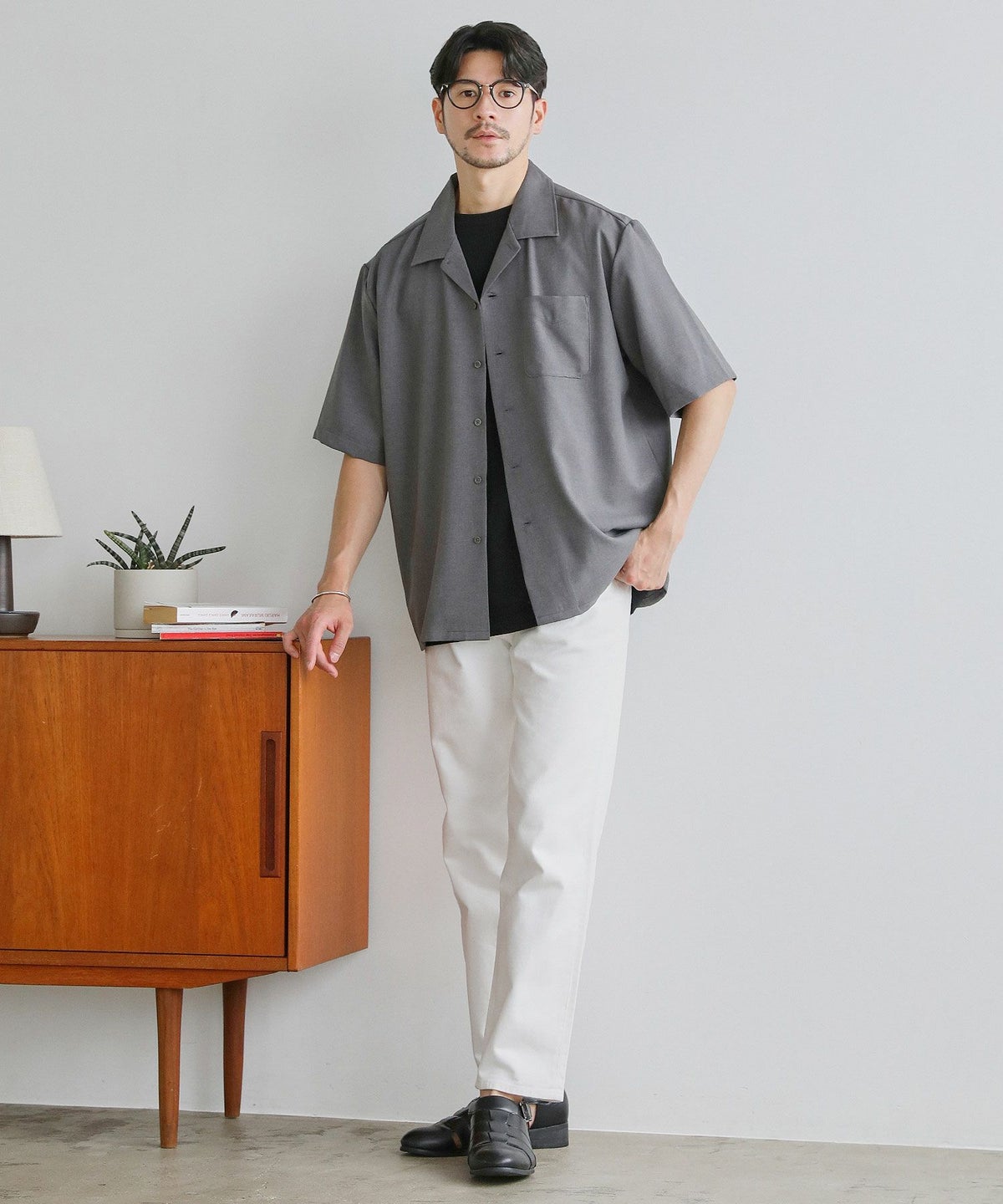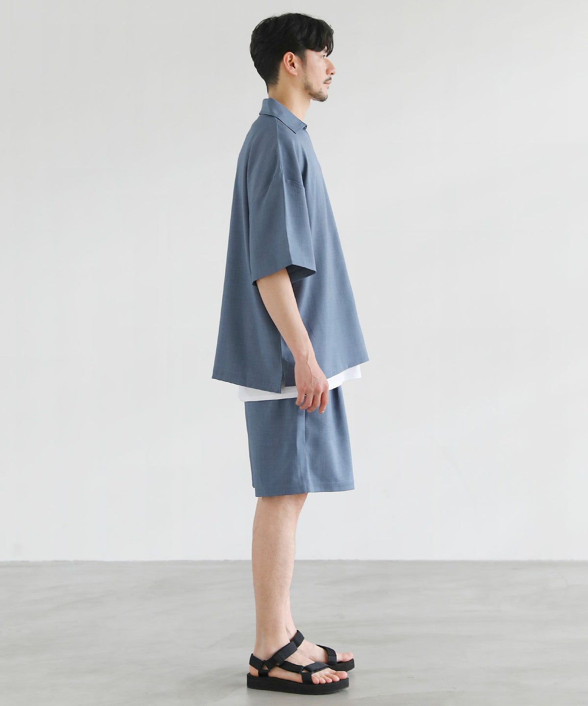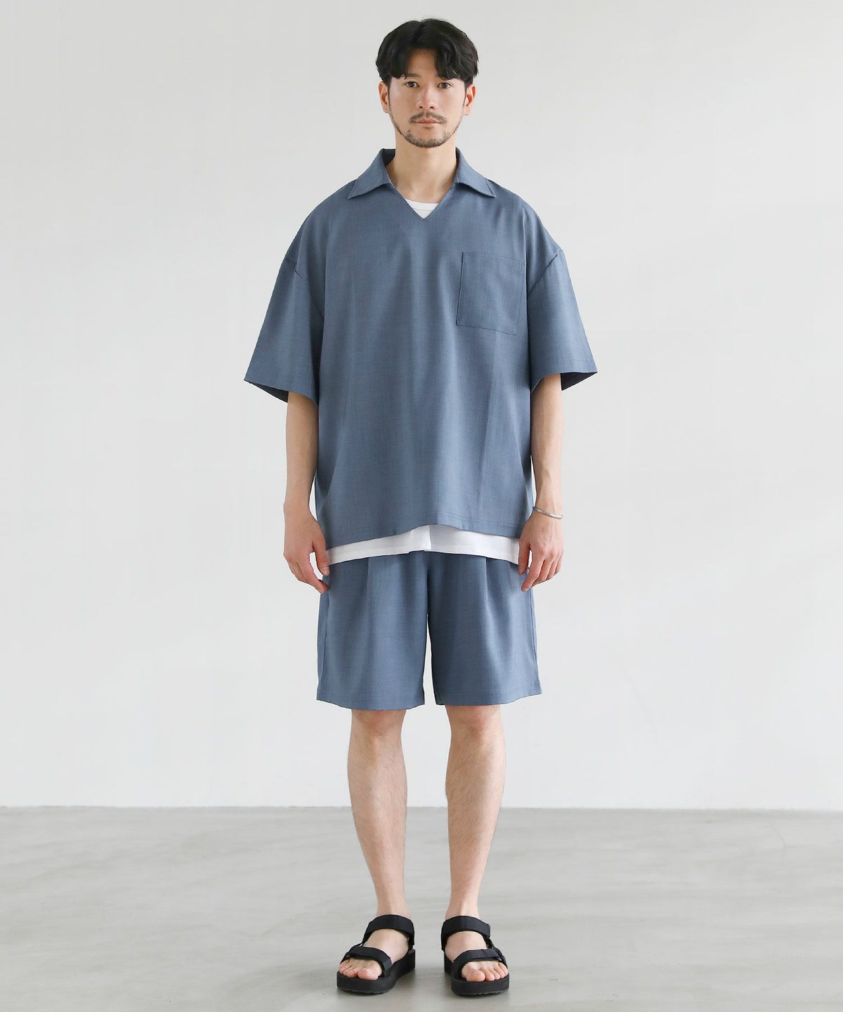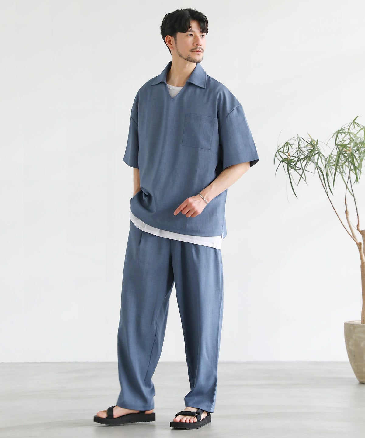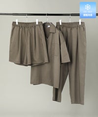 【3点セットアップ】接触冷感リネンライクスキッパーシャツ&ロングパンツ&ショーツ