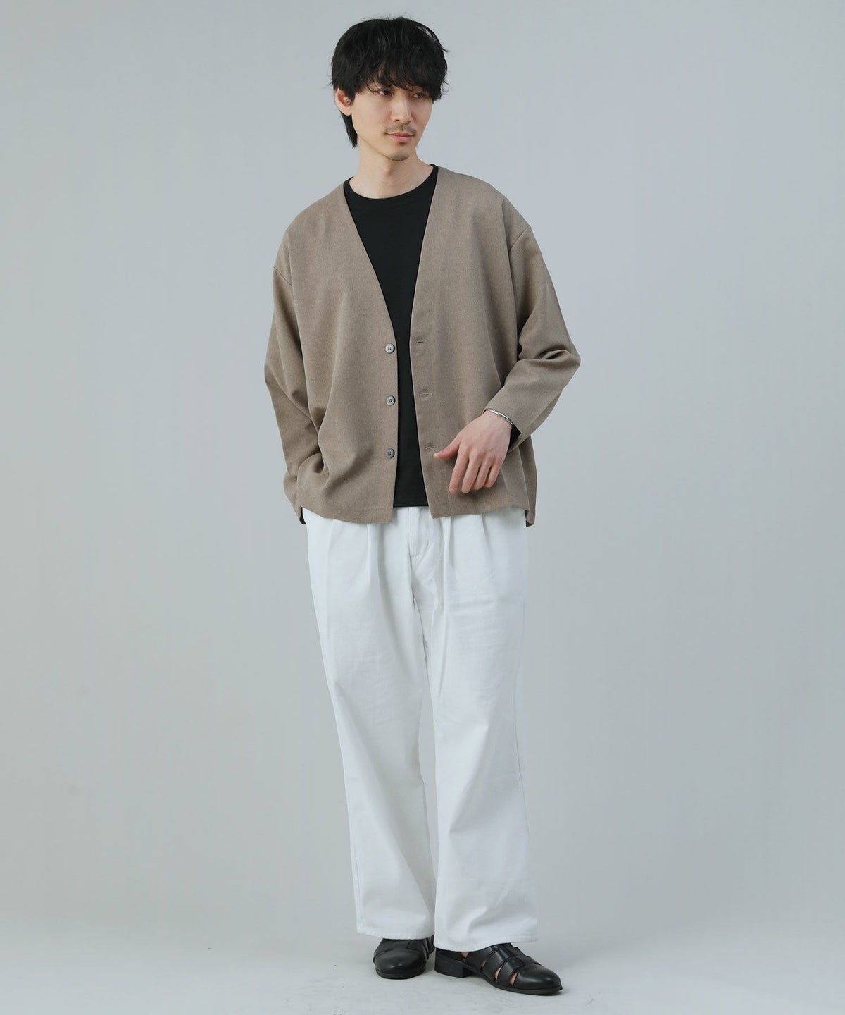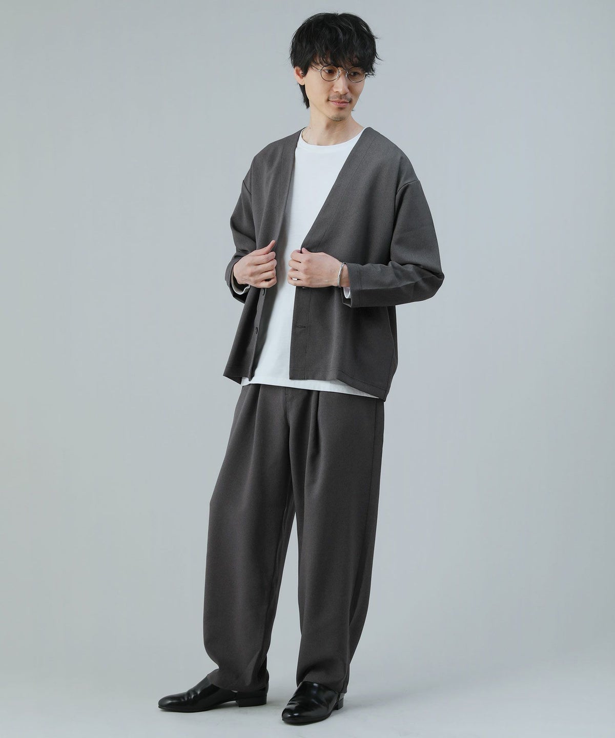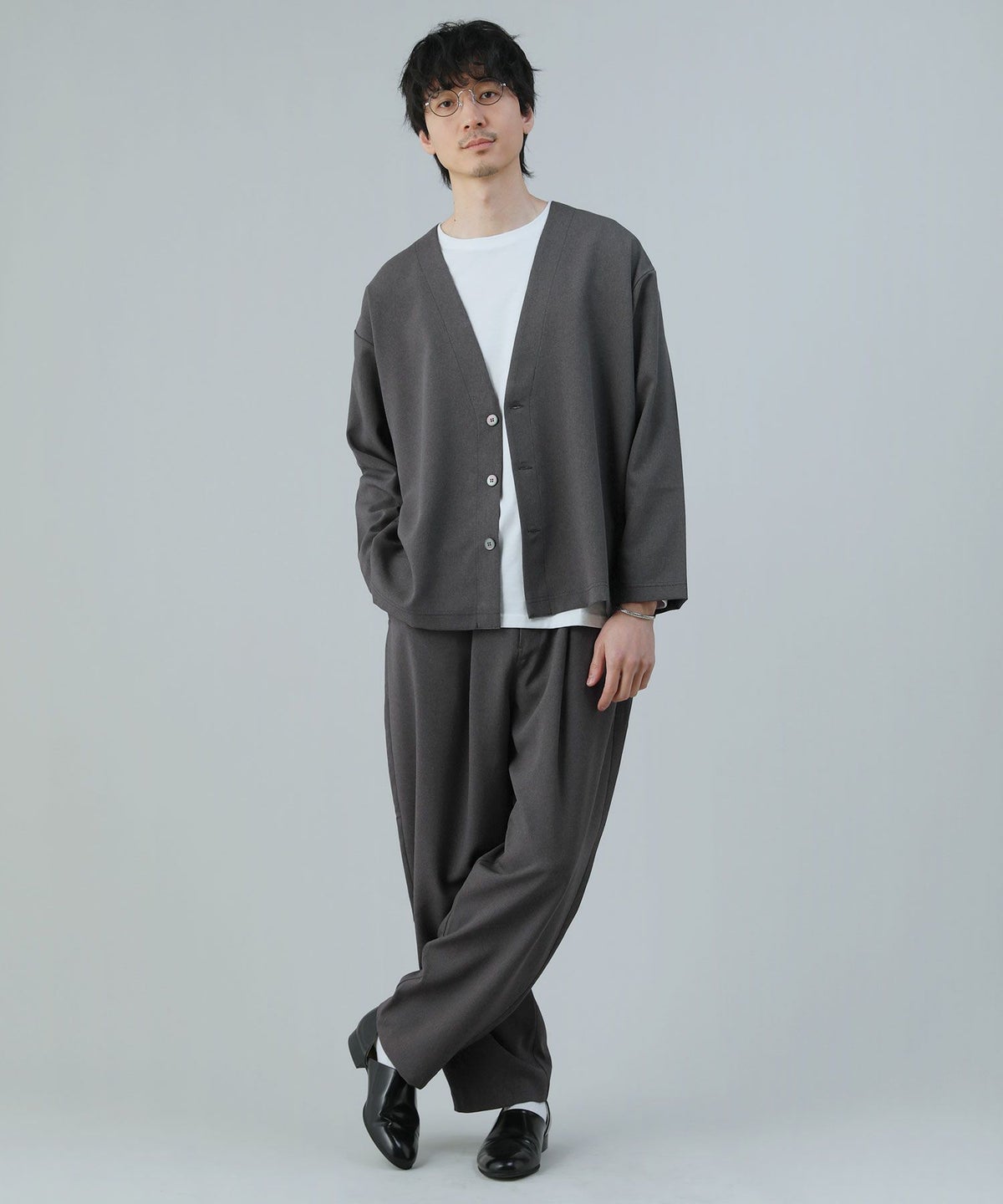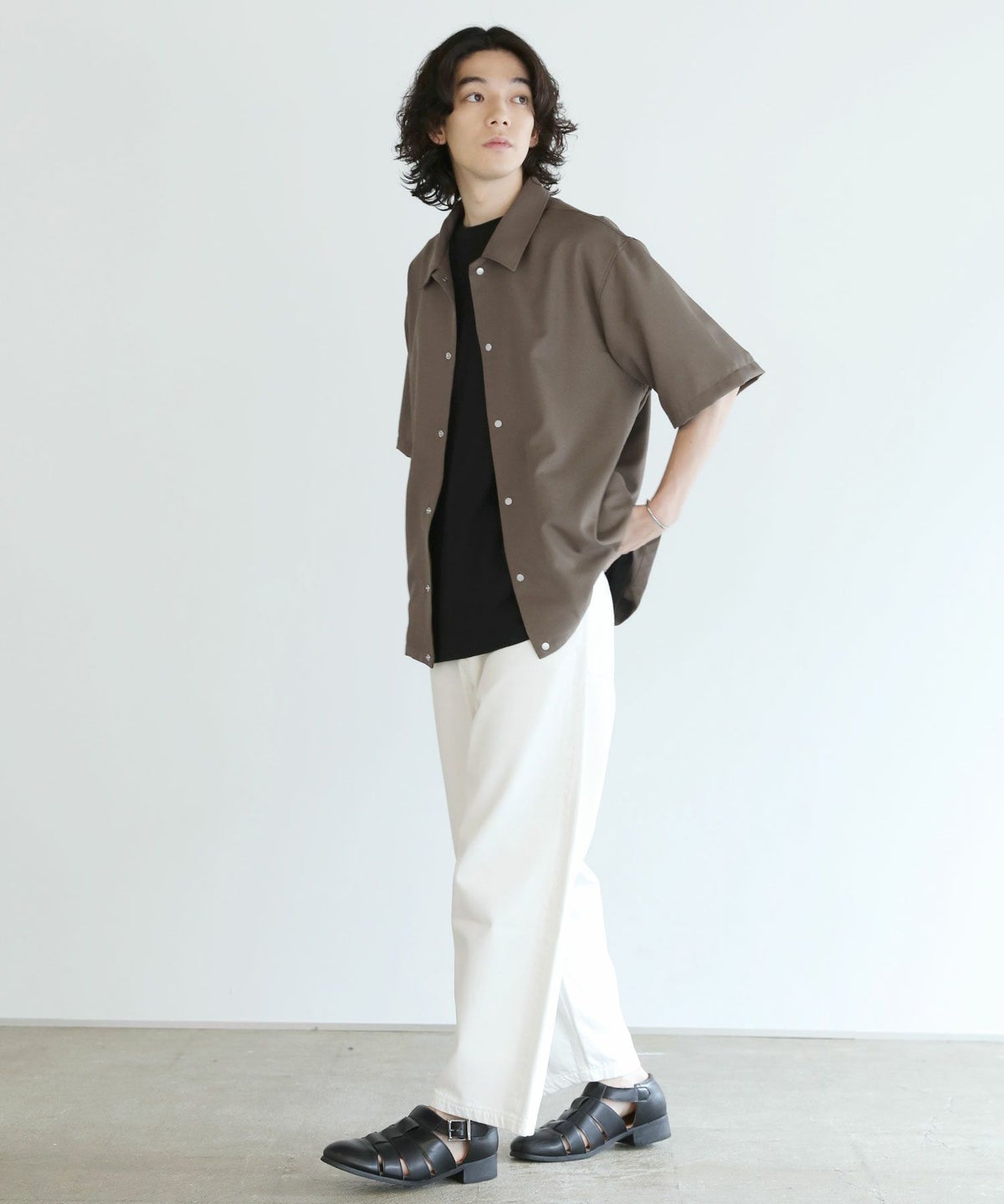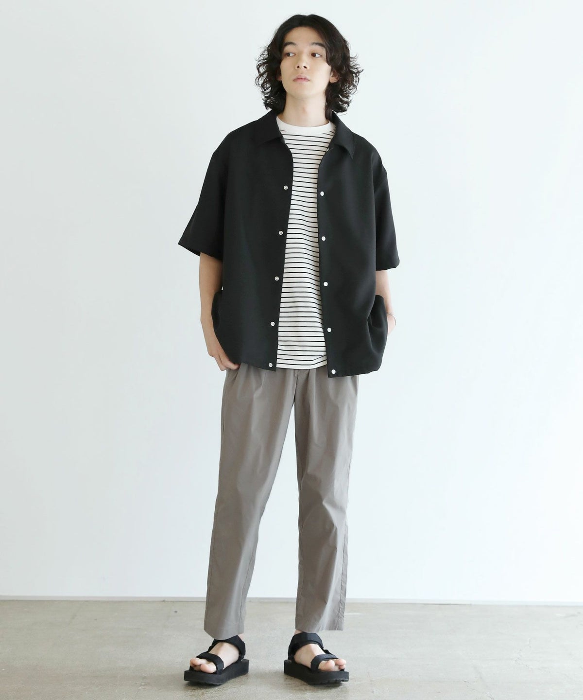 【3点セットアップ】接触冷感リネンライクスキッパーシャツ&ロングパンツ&ショーツ