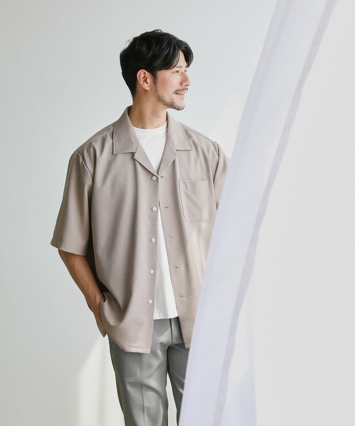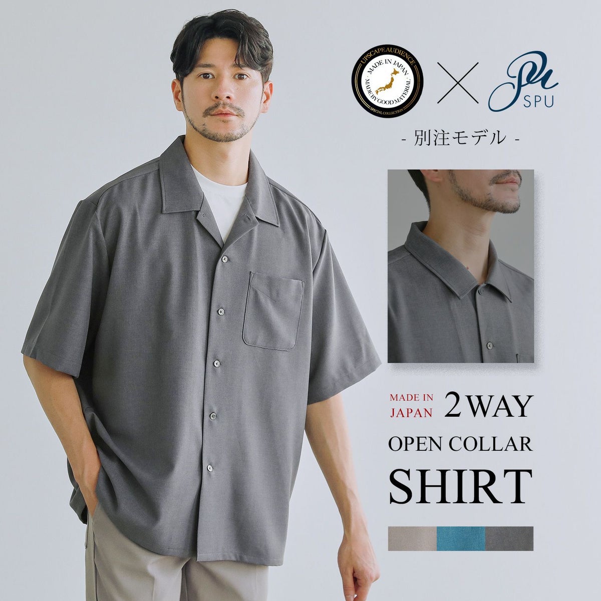SPU別注Naturemier(TM)日本製テックリネン2WAYオープンカラー半袖シャツ