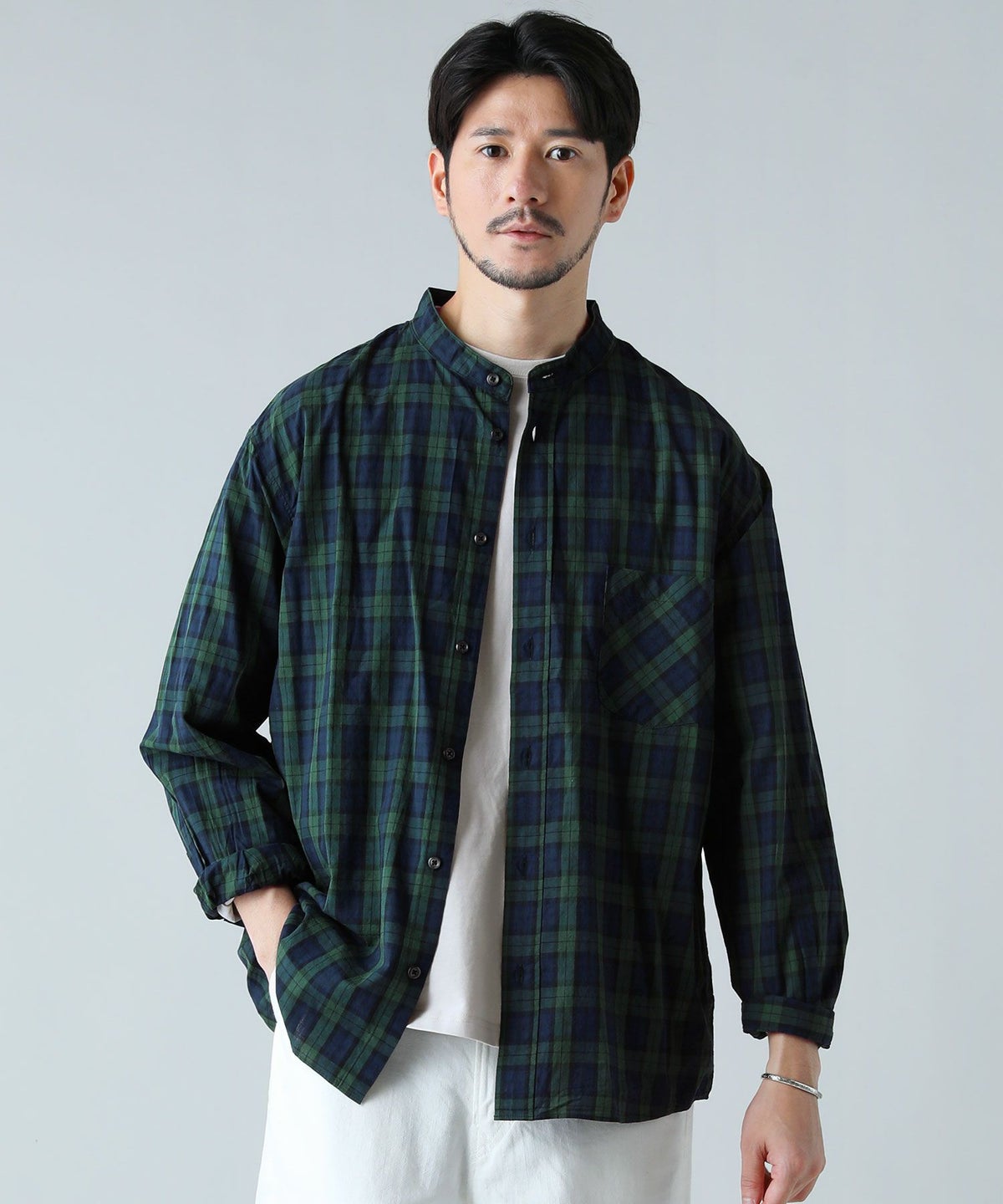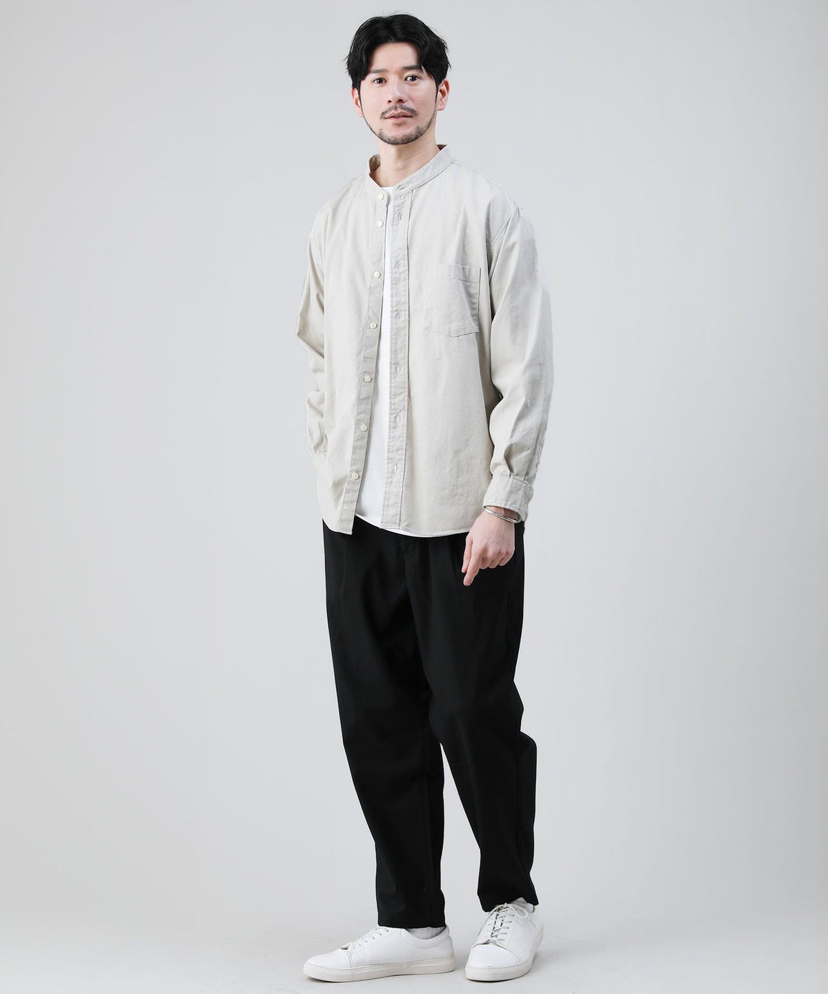 他の画像を見る Upscape Audience 日本製ワンウォッシュバンドカラー長袖テーパードシャツ 通常販売価格 ¥ 7,700 のところ ¥ 4,620 税込 カートに入れる お気に入りに登録する